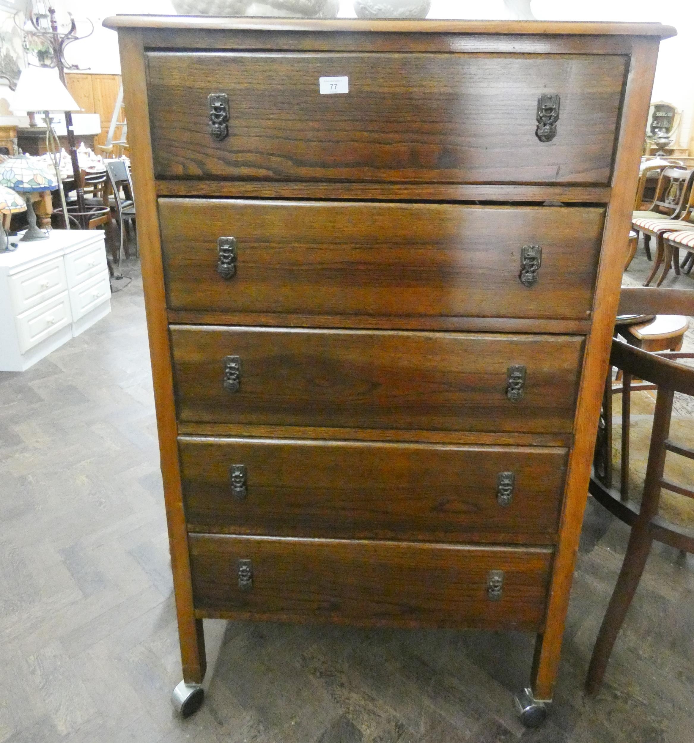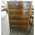 A tall oak chest of five long drawers 2'6" wide