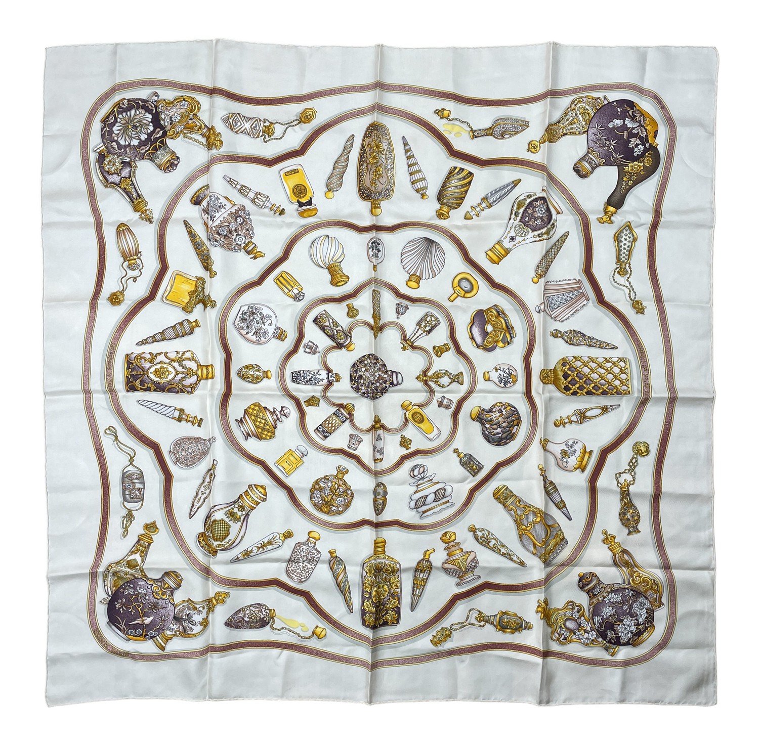 Hermès, A Qu'Importe le Flacon silk carré scarf in cream and pastels