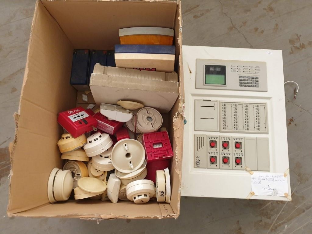 Electrical Distribution Cabinet / Fire Alarm Control Panel together with Qty of Smoke Alarms, Fire Alarms etc