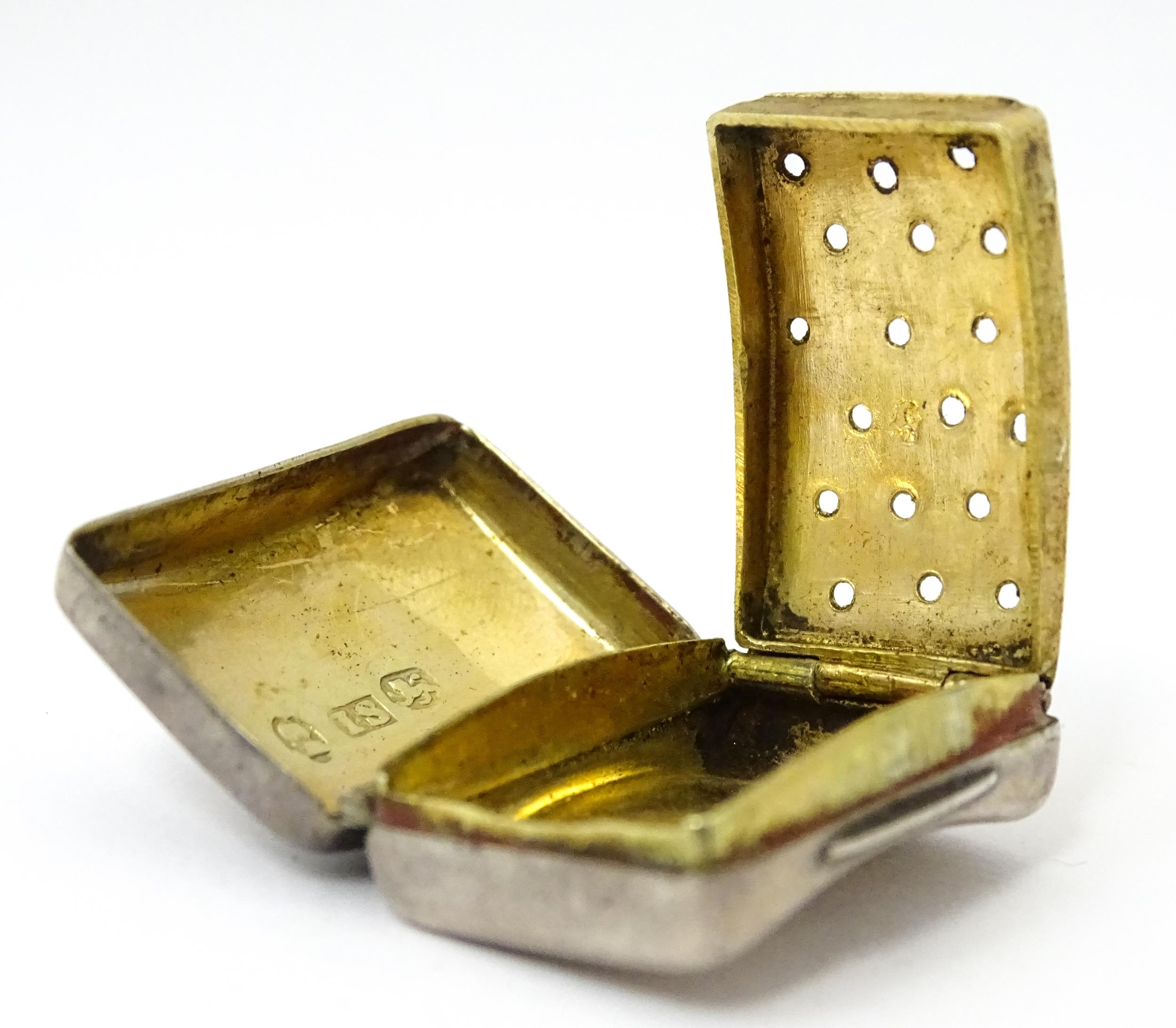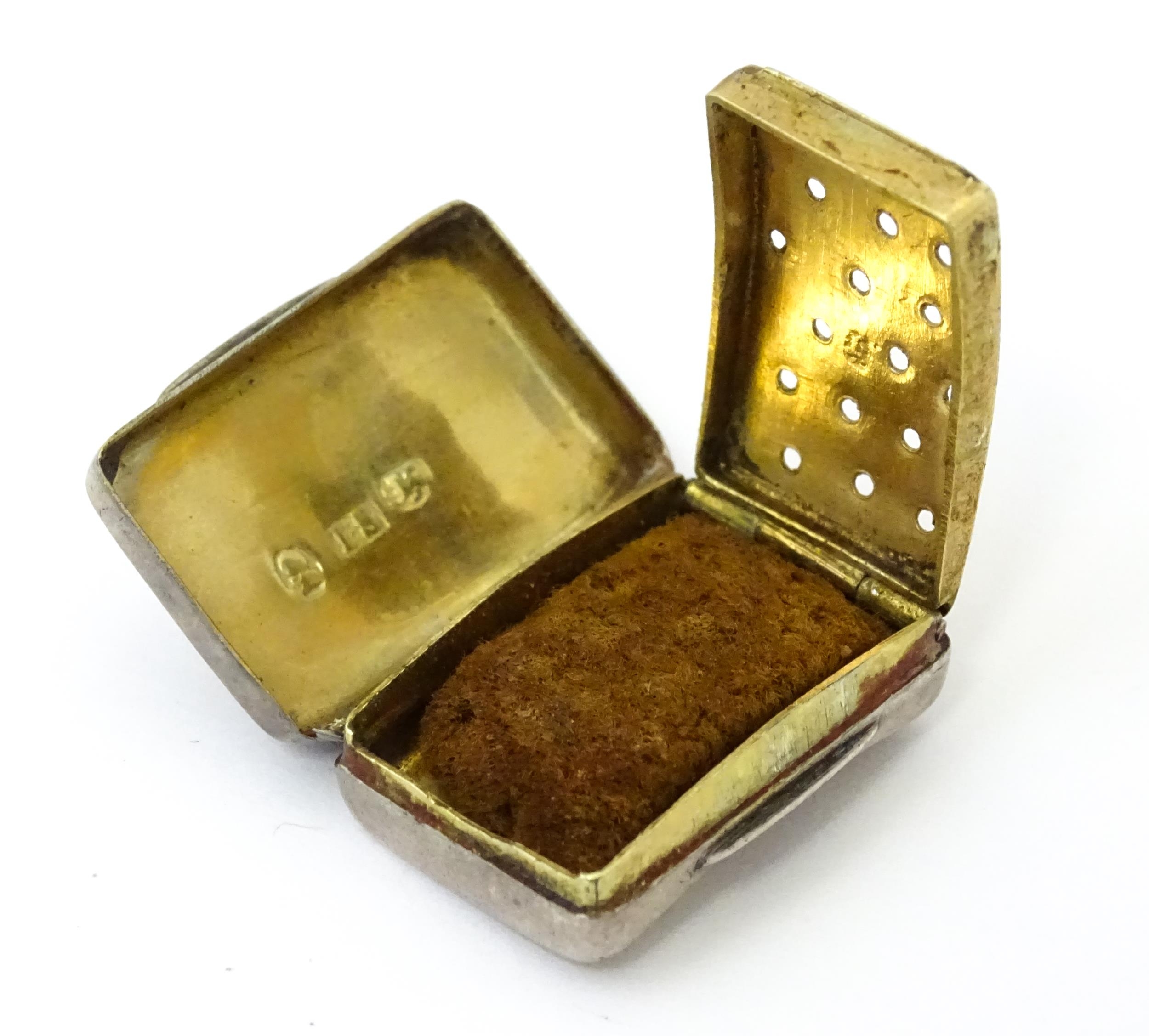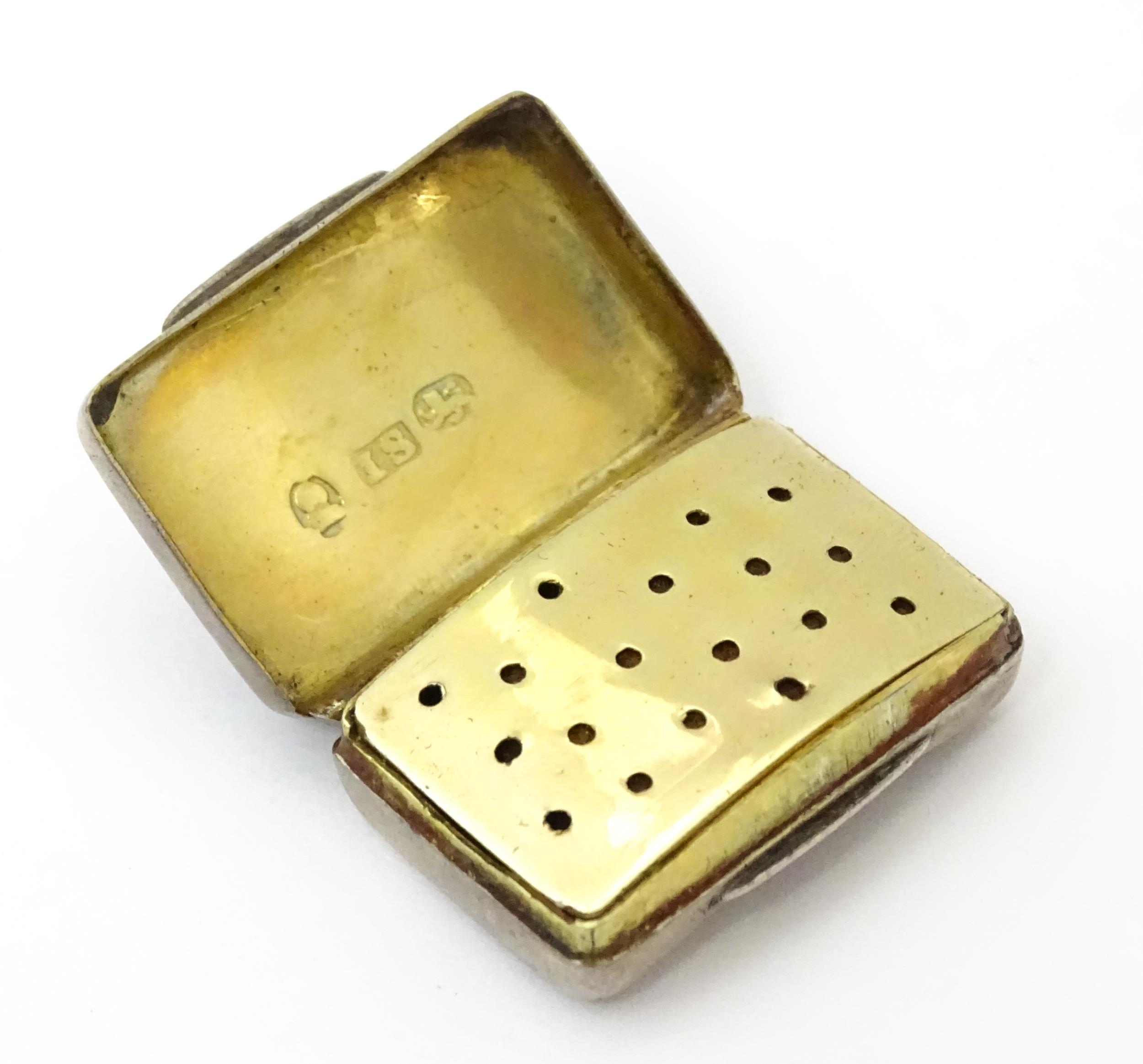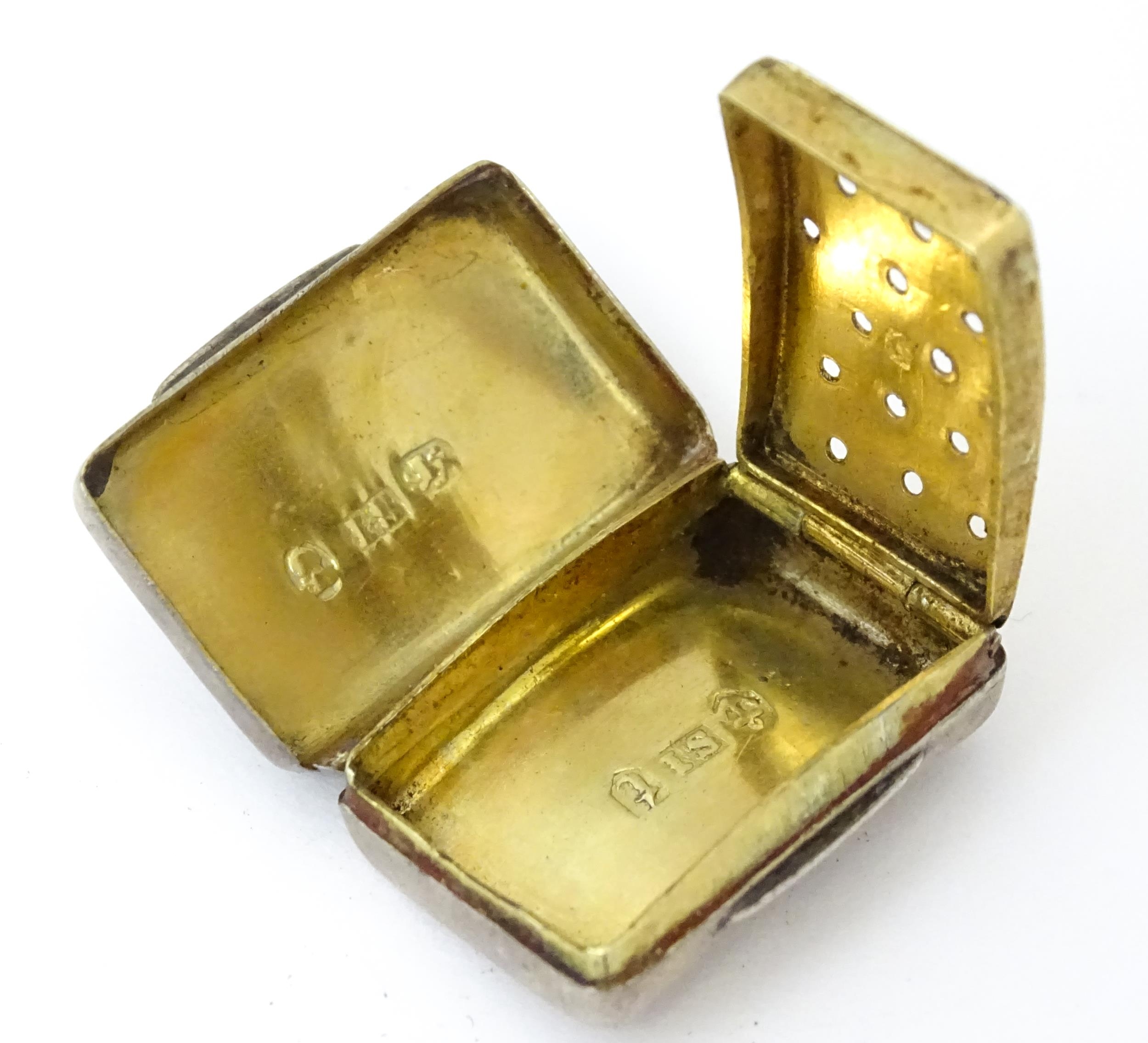 A small George III silver vinaigrette, with gilded interior and pierced grille, hallmarked Birmingham 1817, maker John Shaw. Approx. 1" wide