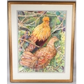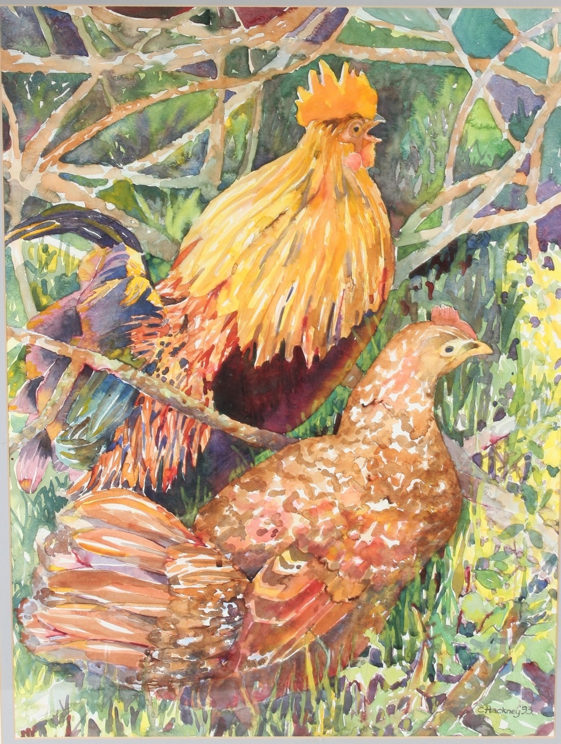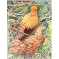 CLARE HACKNEY Cockerel and chicken watercolour signed and dated '93 72.5 x 54cm