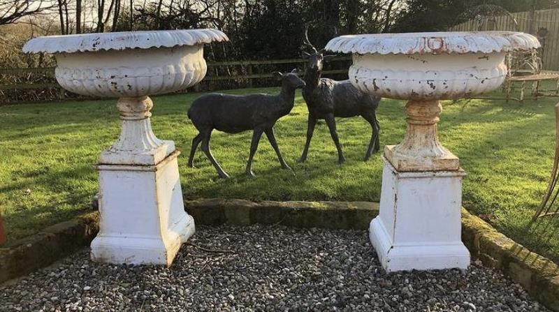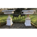 Pair of cast iron urns on pedestals in the Georgian style {153 cm H x 92 cm Dia.}.