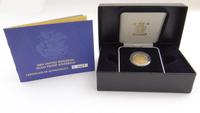 Boxed United Kingdom gold proof sovereign 2003 with certificate numbered 00200