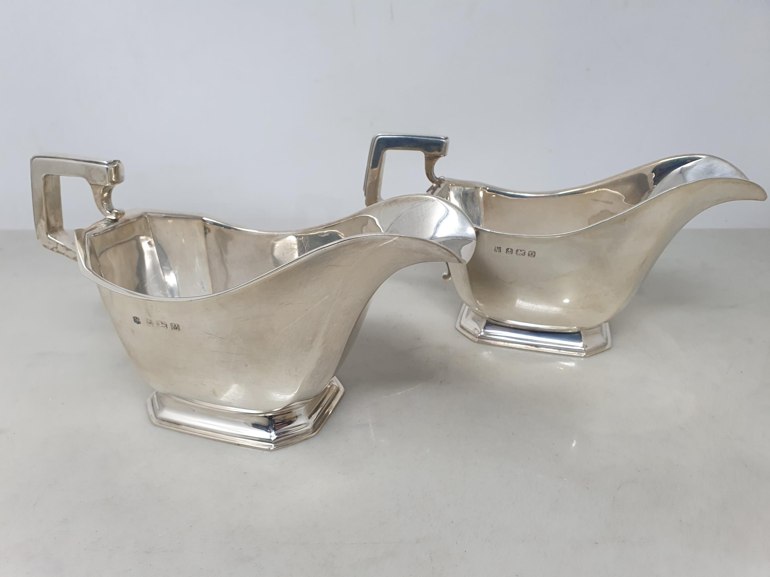 A pair of George VI silver Sauce Boats on octagonal bases, Birmingham 1938, 367gms