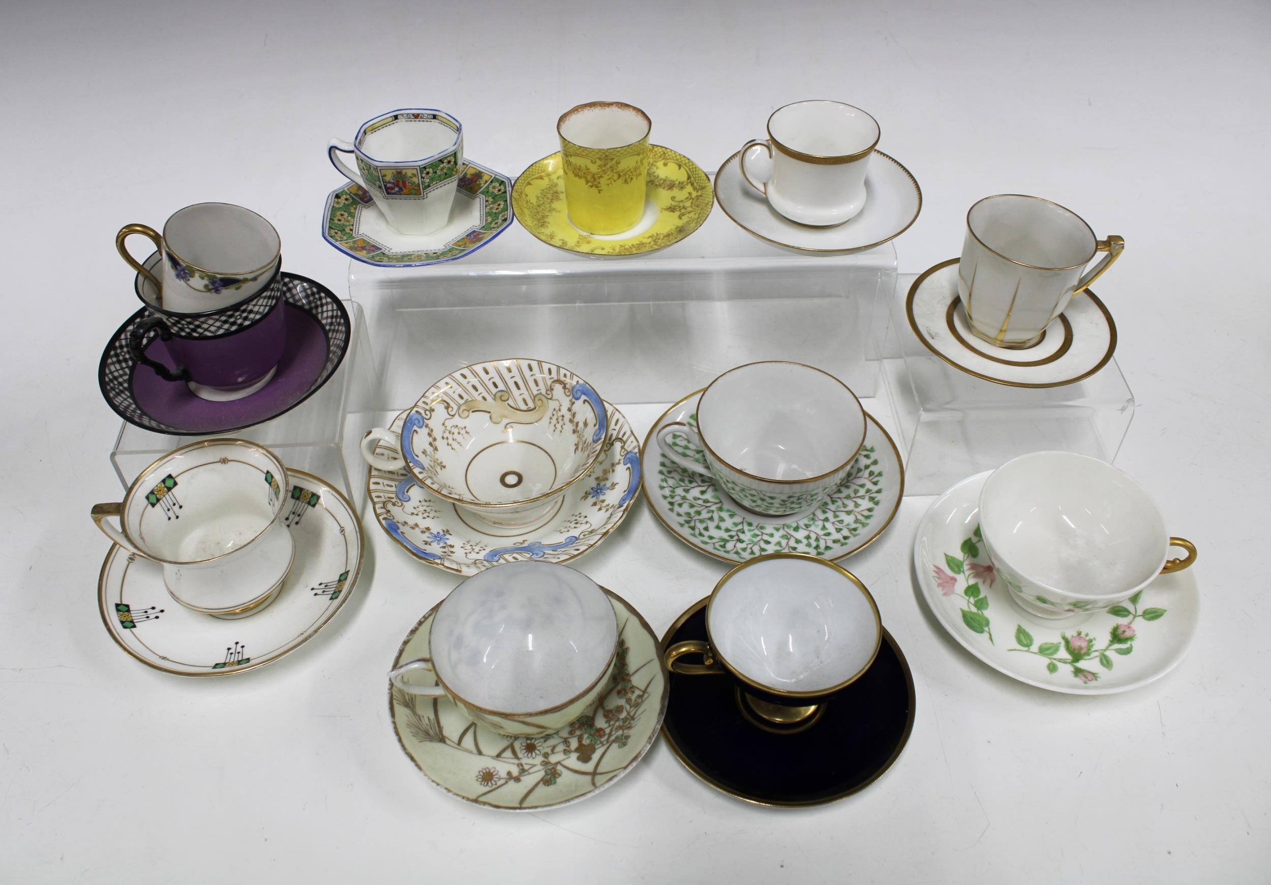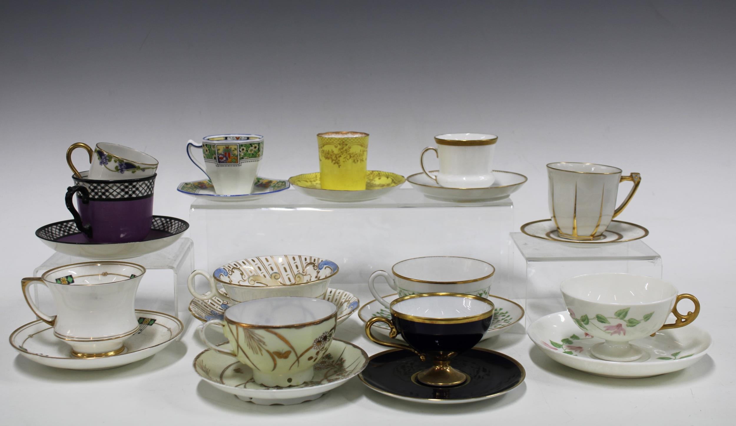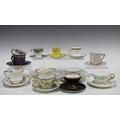 A collection of porcelain and bone china cups and saucers