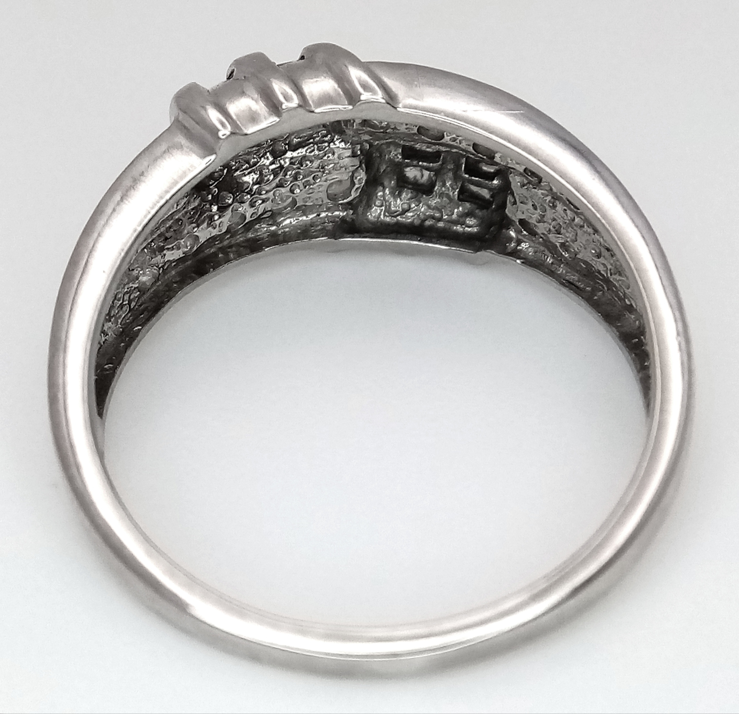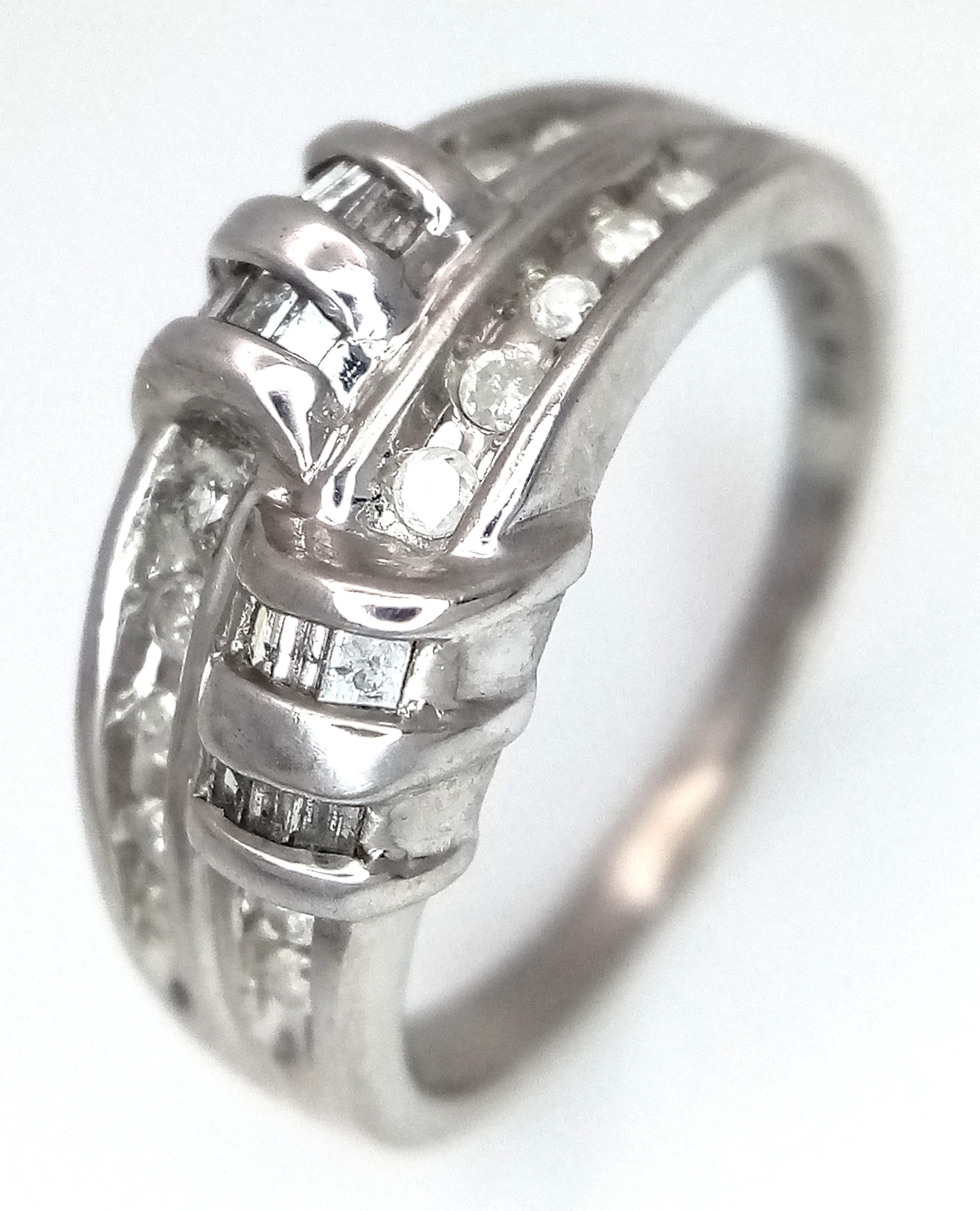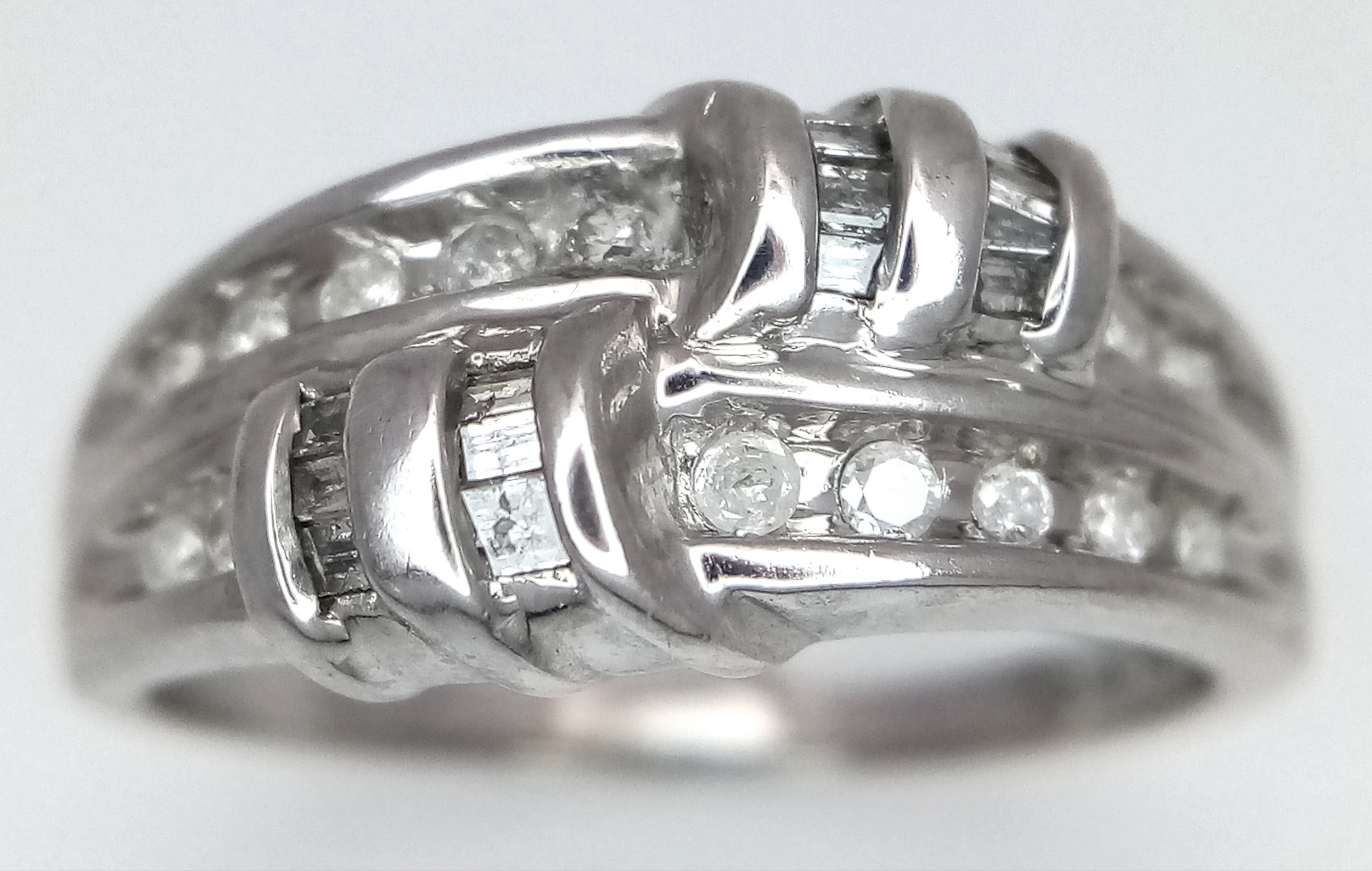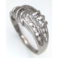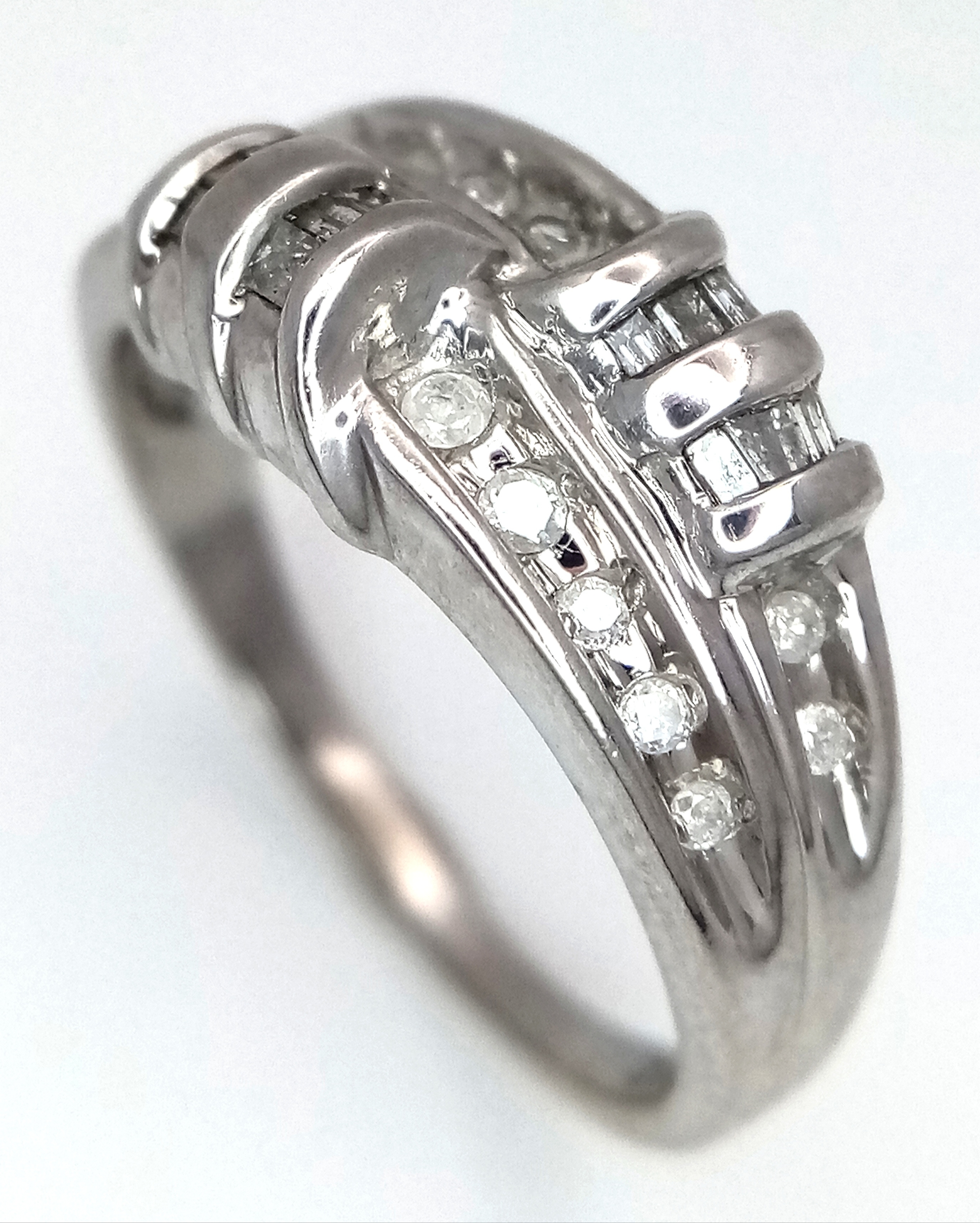 A 14K WHITE GOLD DIAMOND SET RING. 3.5G. SIZE P. REF - 4057.