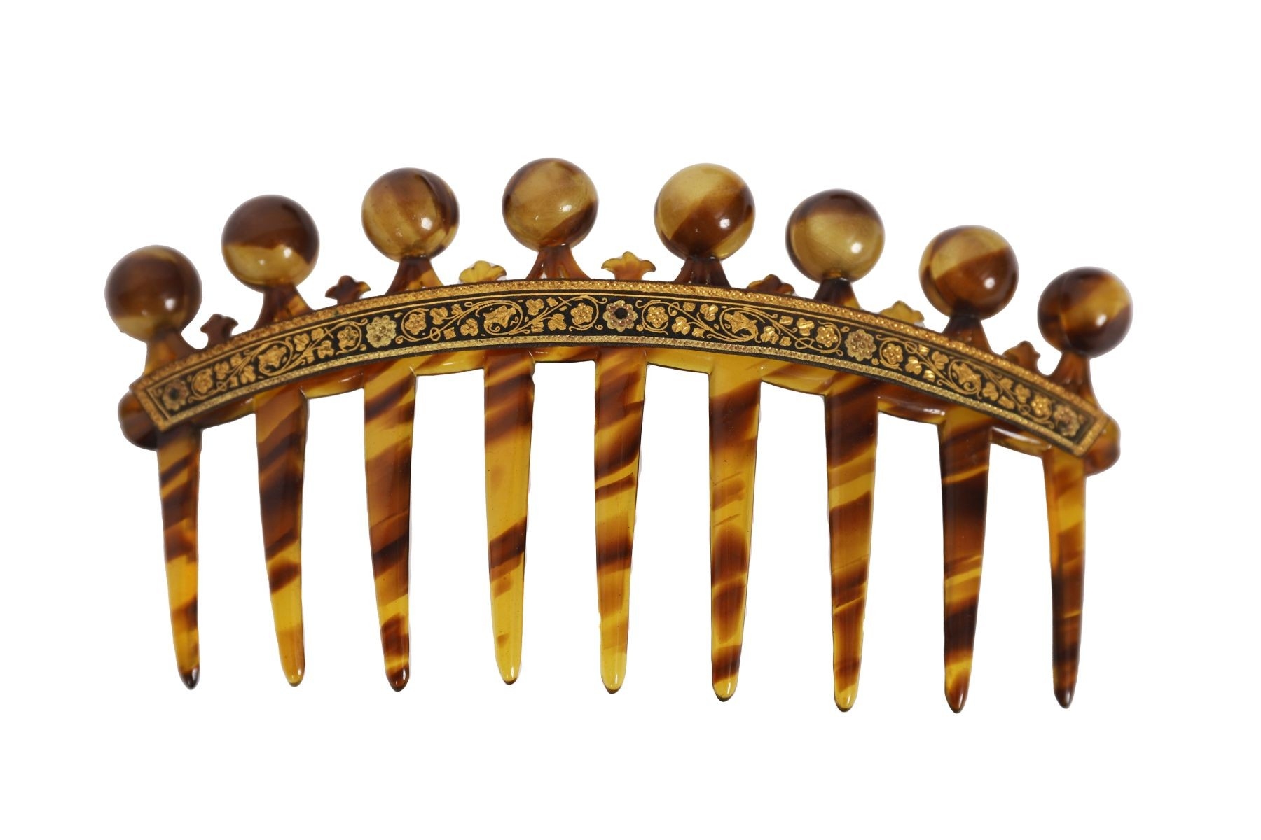 TORTOISESHELL HAIR COMB WITH GILT METAL DECORATION, 19TH CENTURY