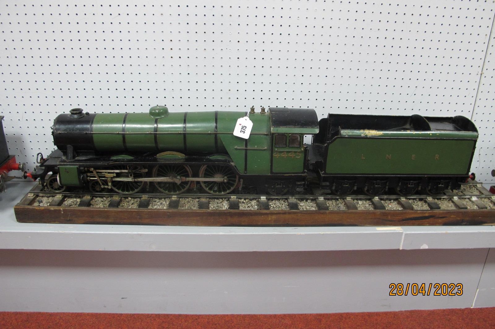 A 2½" Gauge Live Steam 4-6-2 Steam Locomotive with Eight Wheel Tender, finished in L.N.E.R green, named Princess Christine R/No 4445, built to a good standard, with o/s cylinders, Walschaerts valve gear, usual cab controls and backhead instrumentation, green paintwork black lining is a little tired but presents well, overall length 39", supplied with 43" display track plinth, there is no build plans of boiler certification