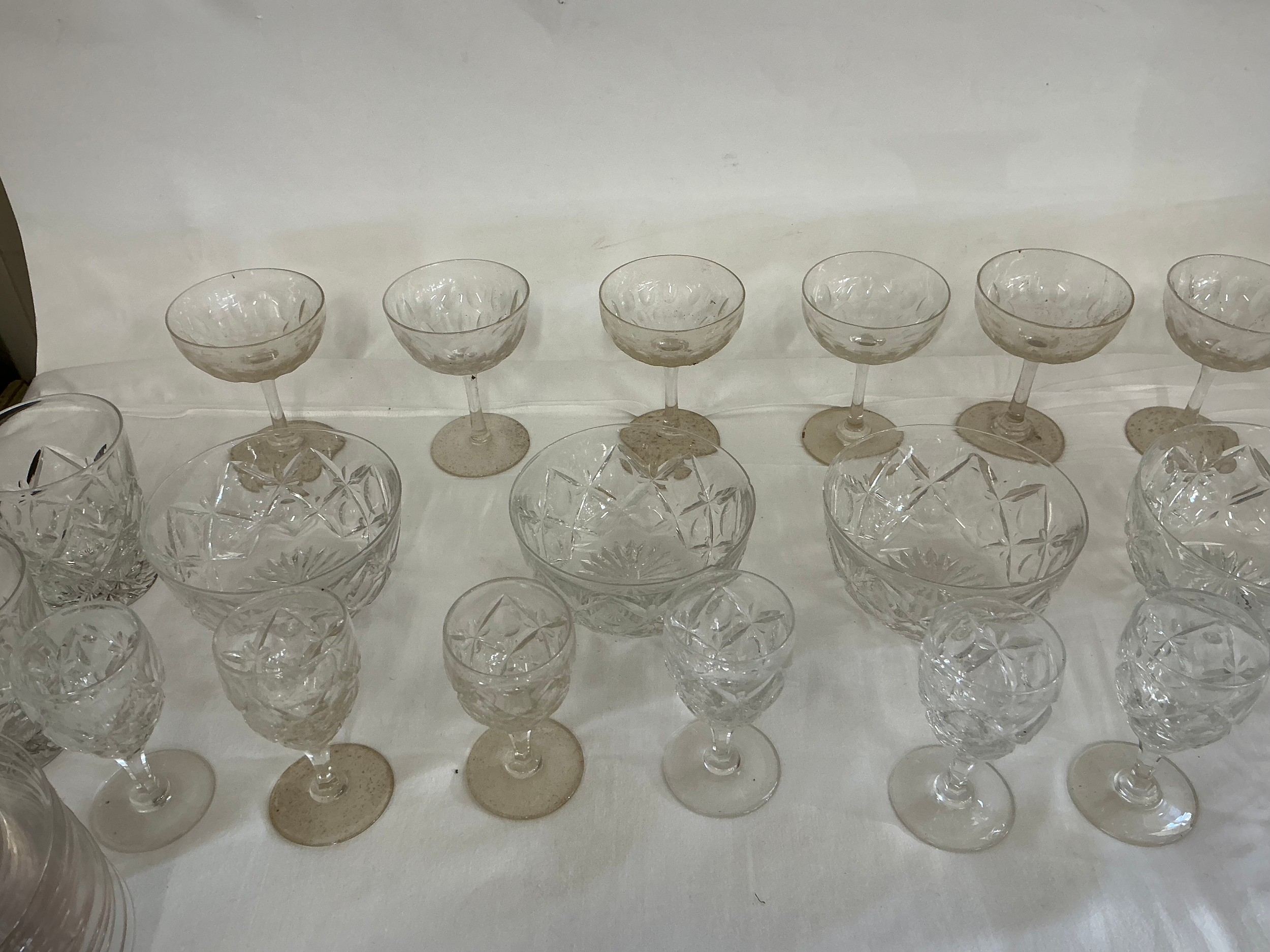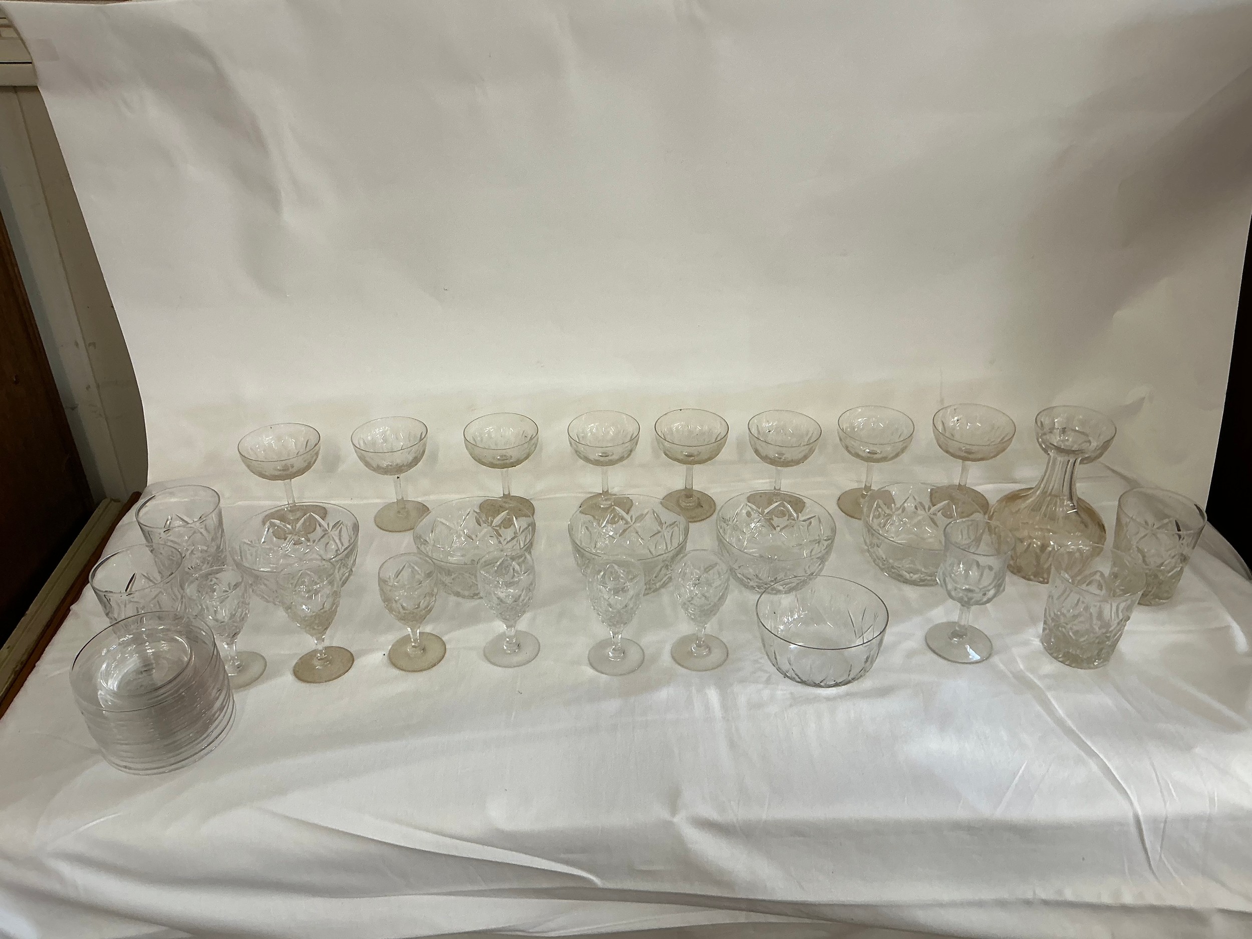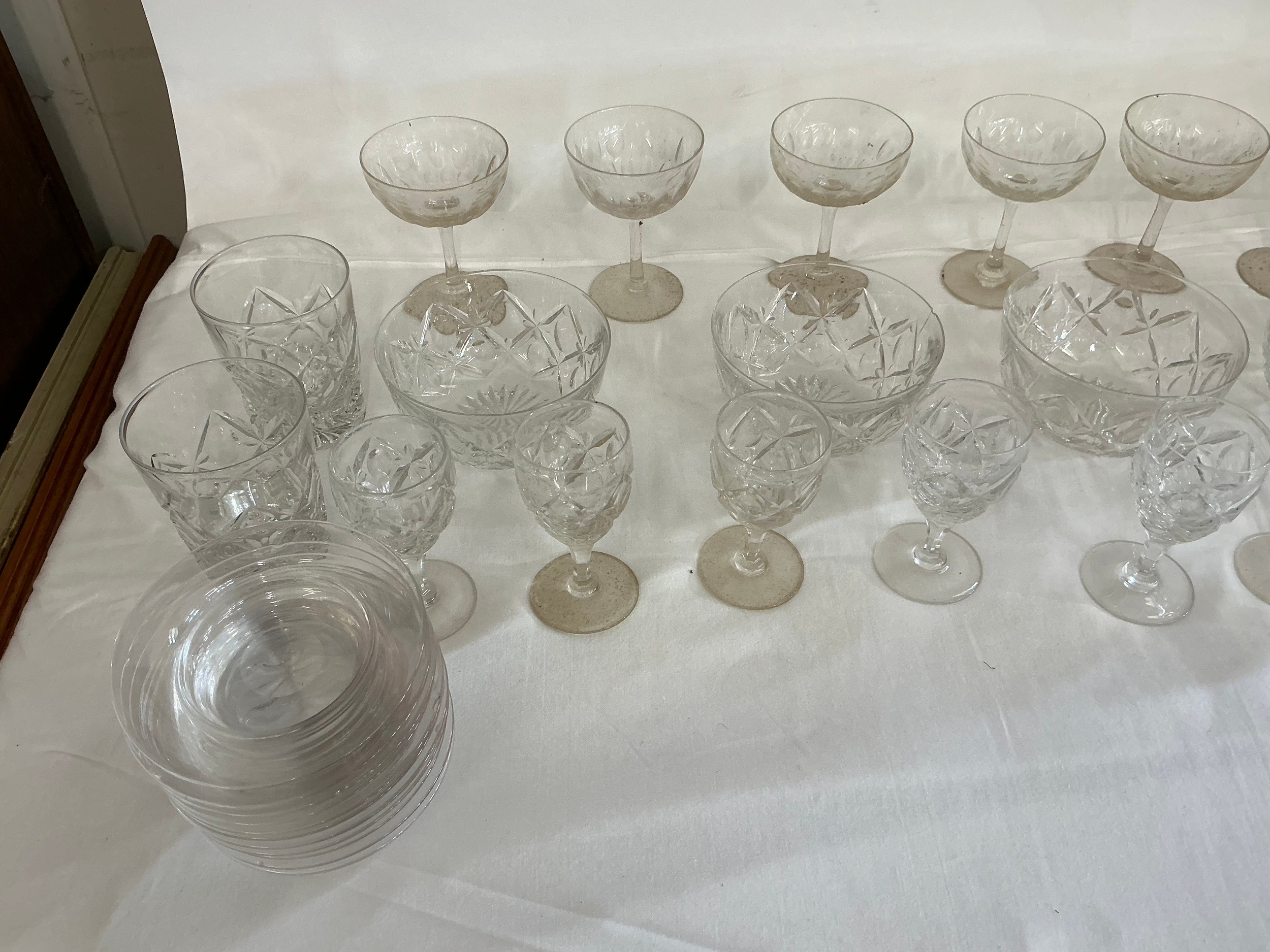 A Collection of Glass to include Thumb Cut White Wines, Finger Bowls, Ice Plates, etc.