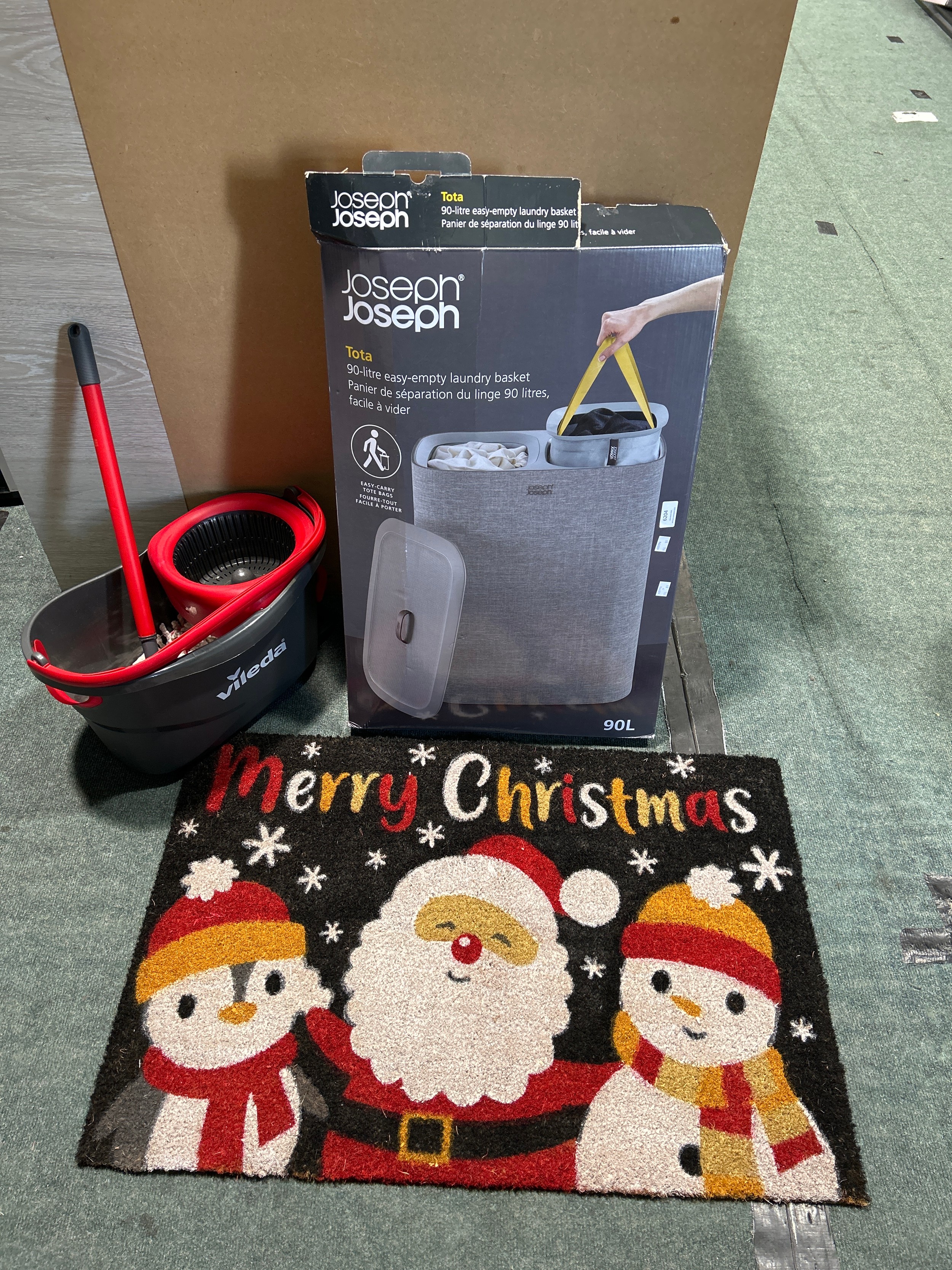 Vileda bucket & mop turbo, Christmas mat and a JosephJoseph laundry basket (354-76,78,81) *This lot is subject to VAT