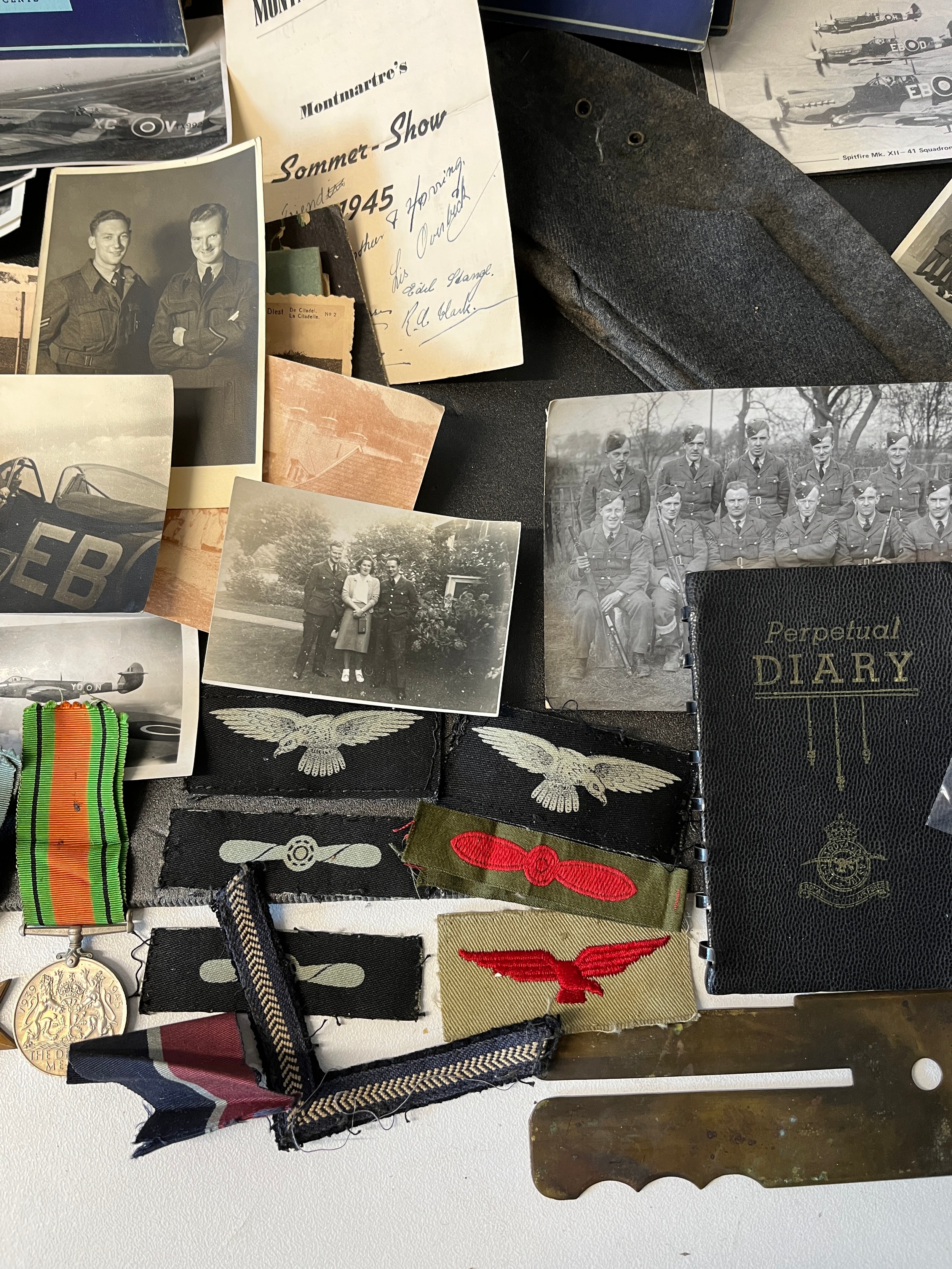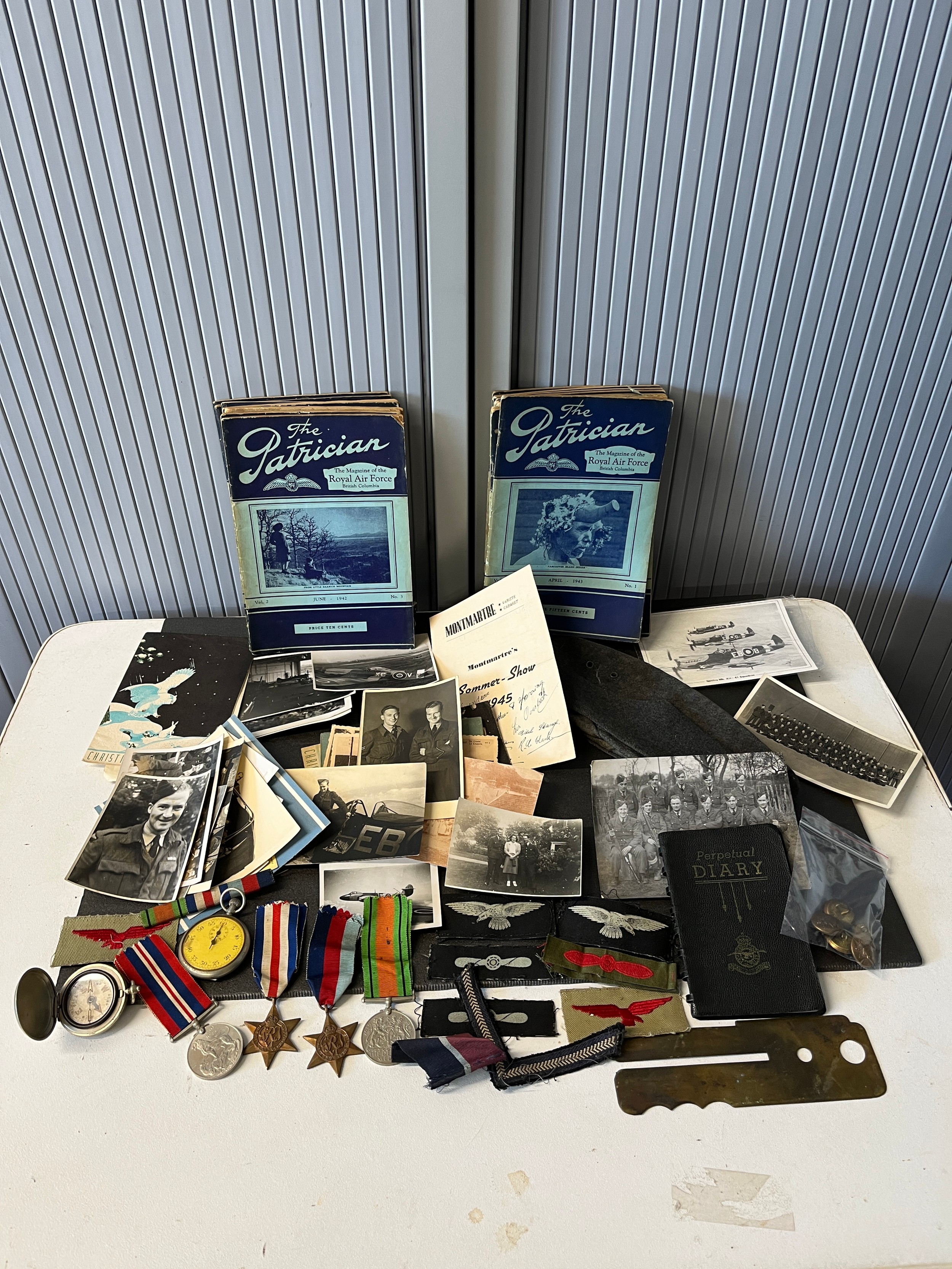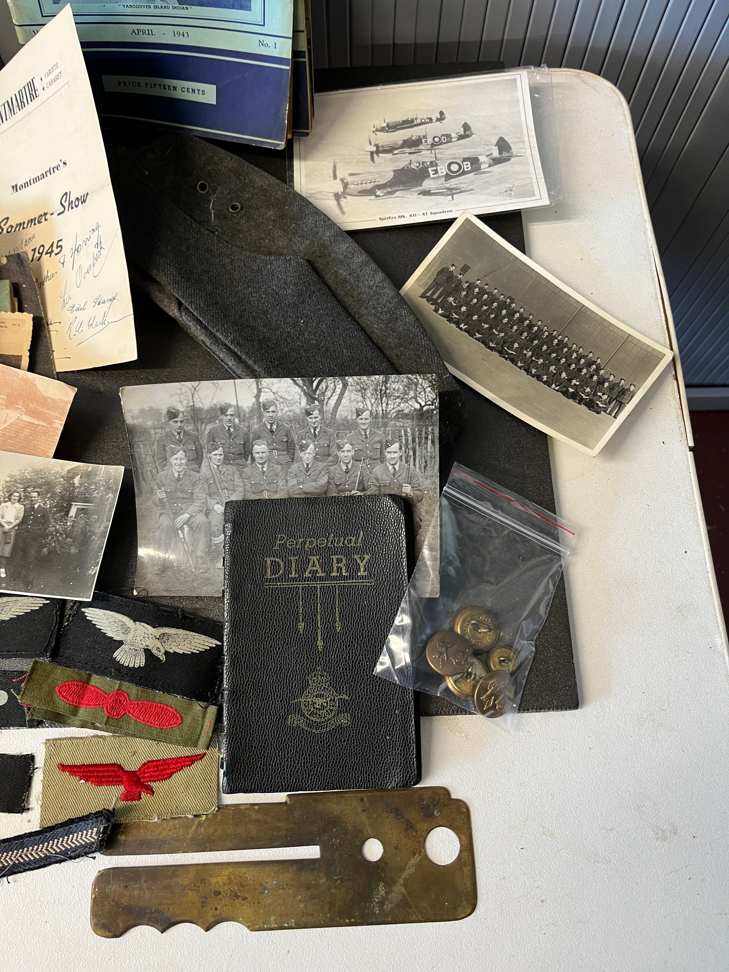 A Large qty of WW2 RAF items relating to a RAF Officer namesd B Roberts (1271859) to inc real photos ,flying cap, uniform buttons and badges WW2 medals stop watch and more see photographs