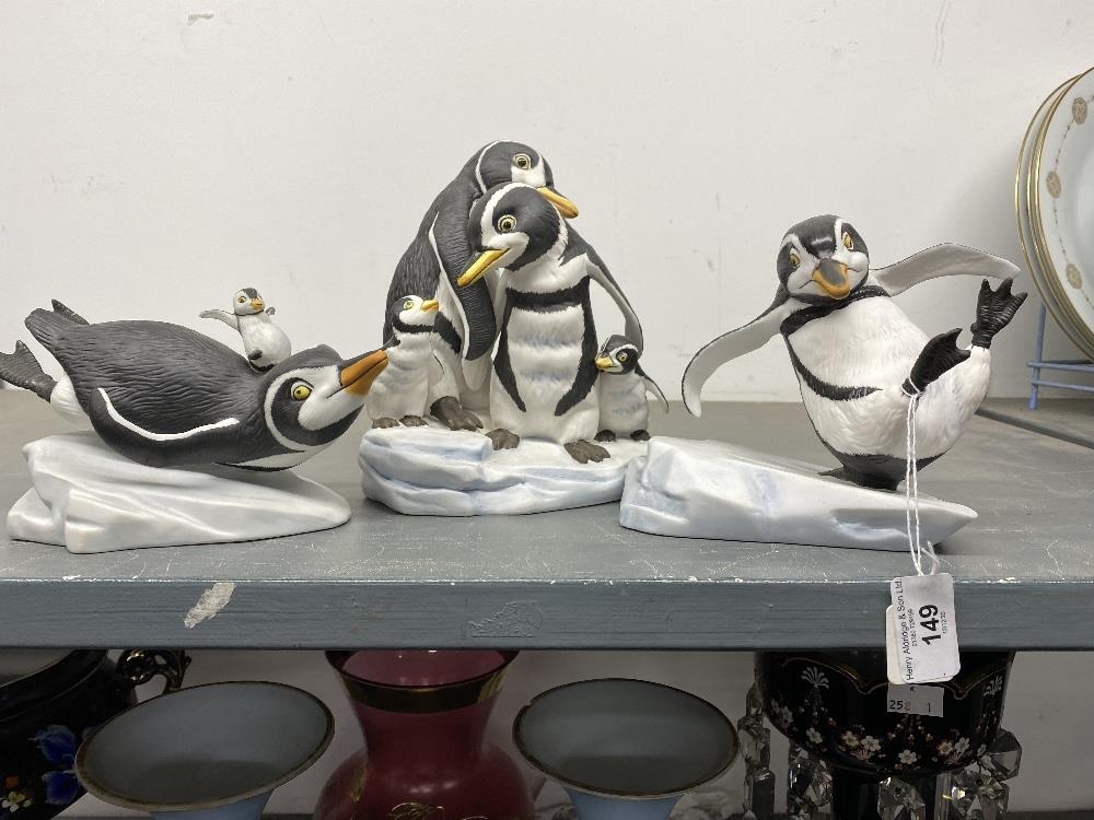 20th cent. Ceramics: Franklin Mint penguin and baby 'Whee!', 'We Four', and 'Whoops!'. (3 penguin groups)
