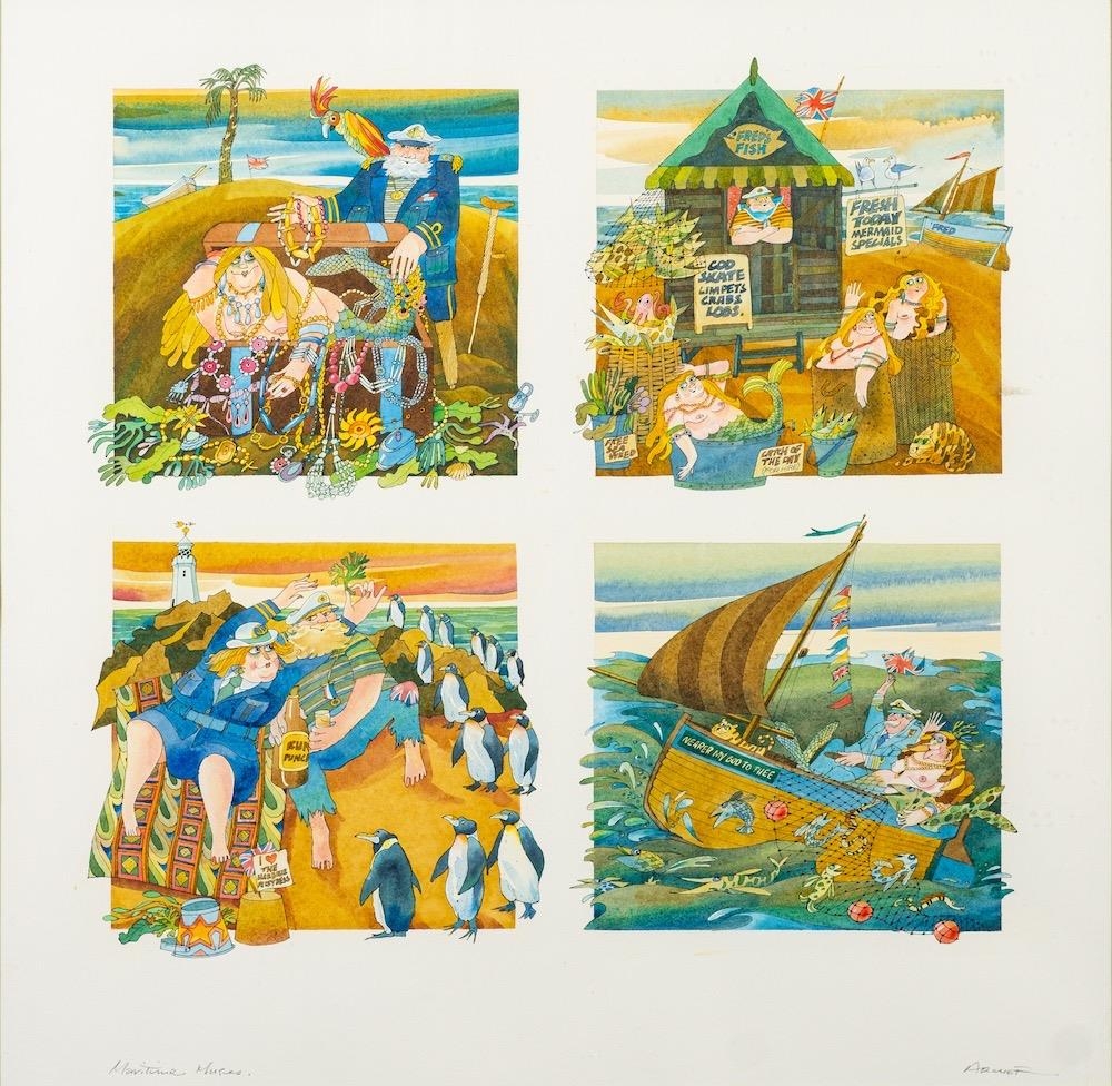 *C J Archer [British, contemporary school] Maritime Muses signed and inscribed lower border watercolour and ink on laid paper 50 x 50.5cm Provenance: Private Collection With the Mall Galleries, London, 1997 (label to reverse)