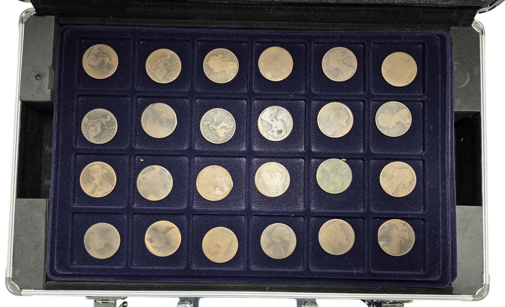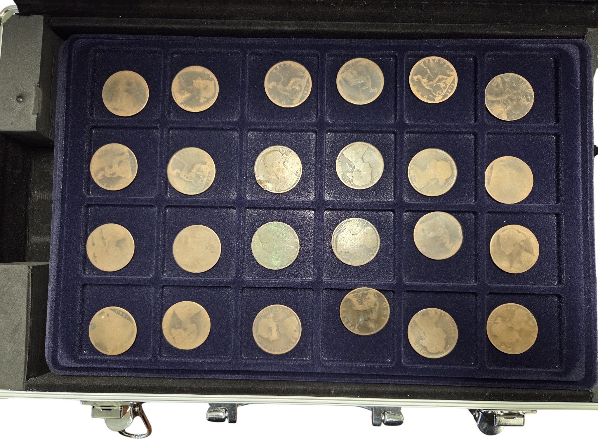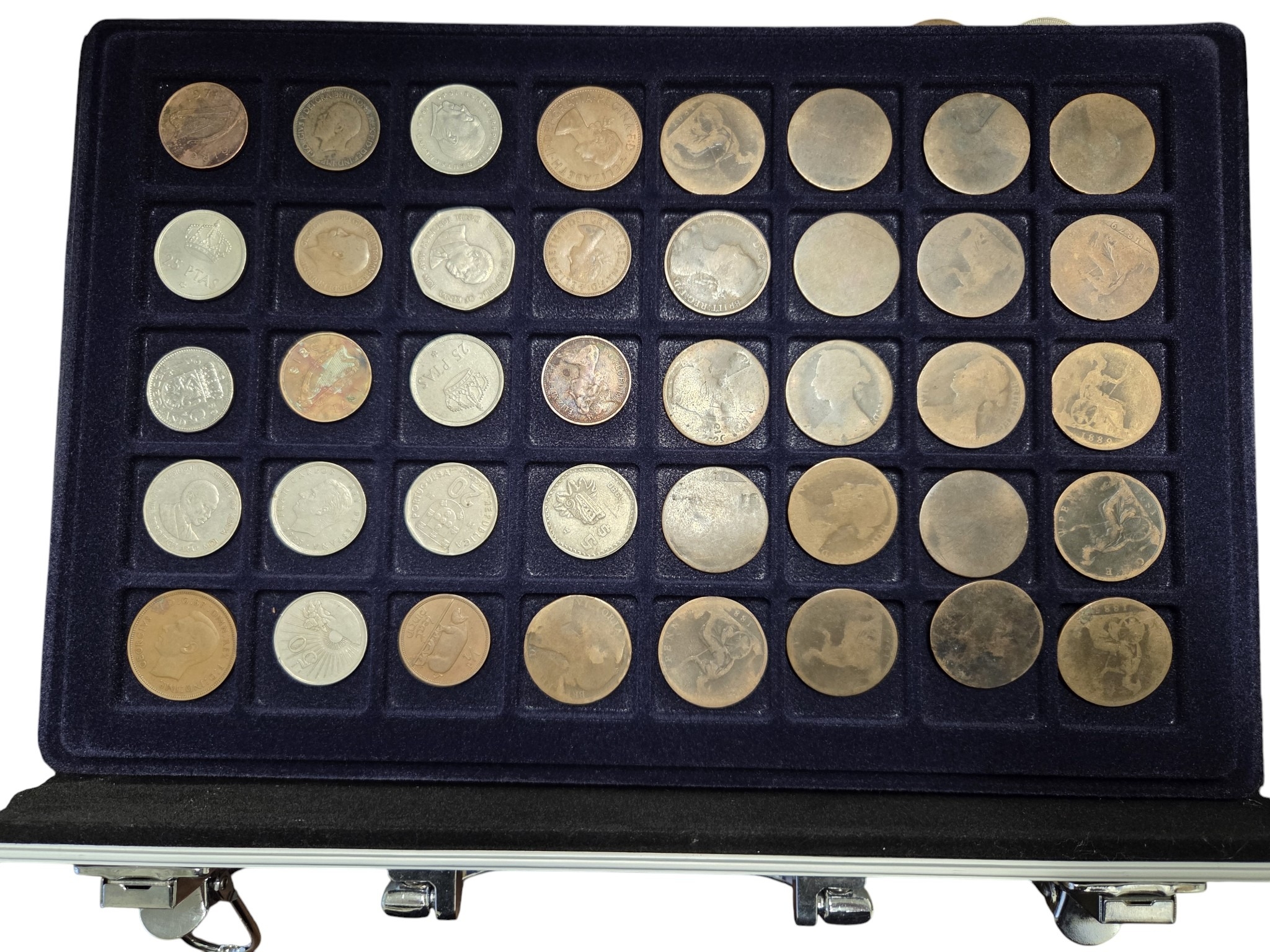 An extremely large quantity of Irish Pennies and other coins. In a metal coin case.