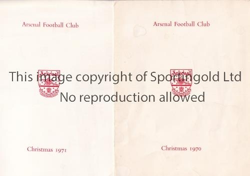 ARSENAL Two Official Board of Directors Christmas cards from 1970 and 1971, minor creases. Generally good