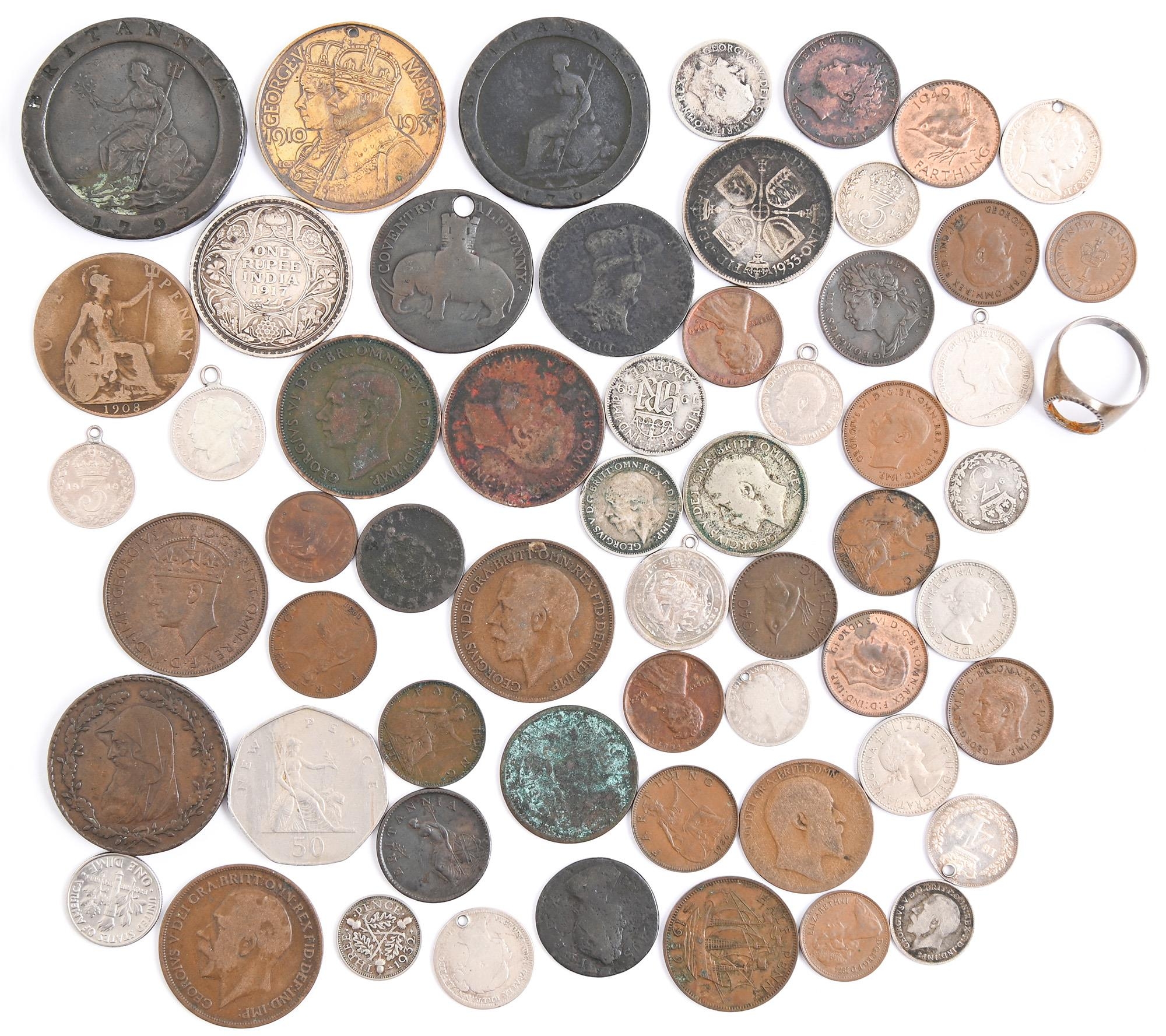 Miscellaneous United Kingdom and foreign coins, including silver and cartwheel penny and 2p, etc