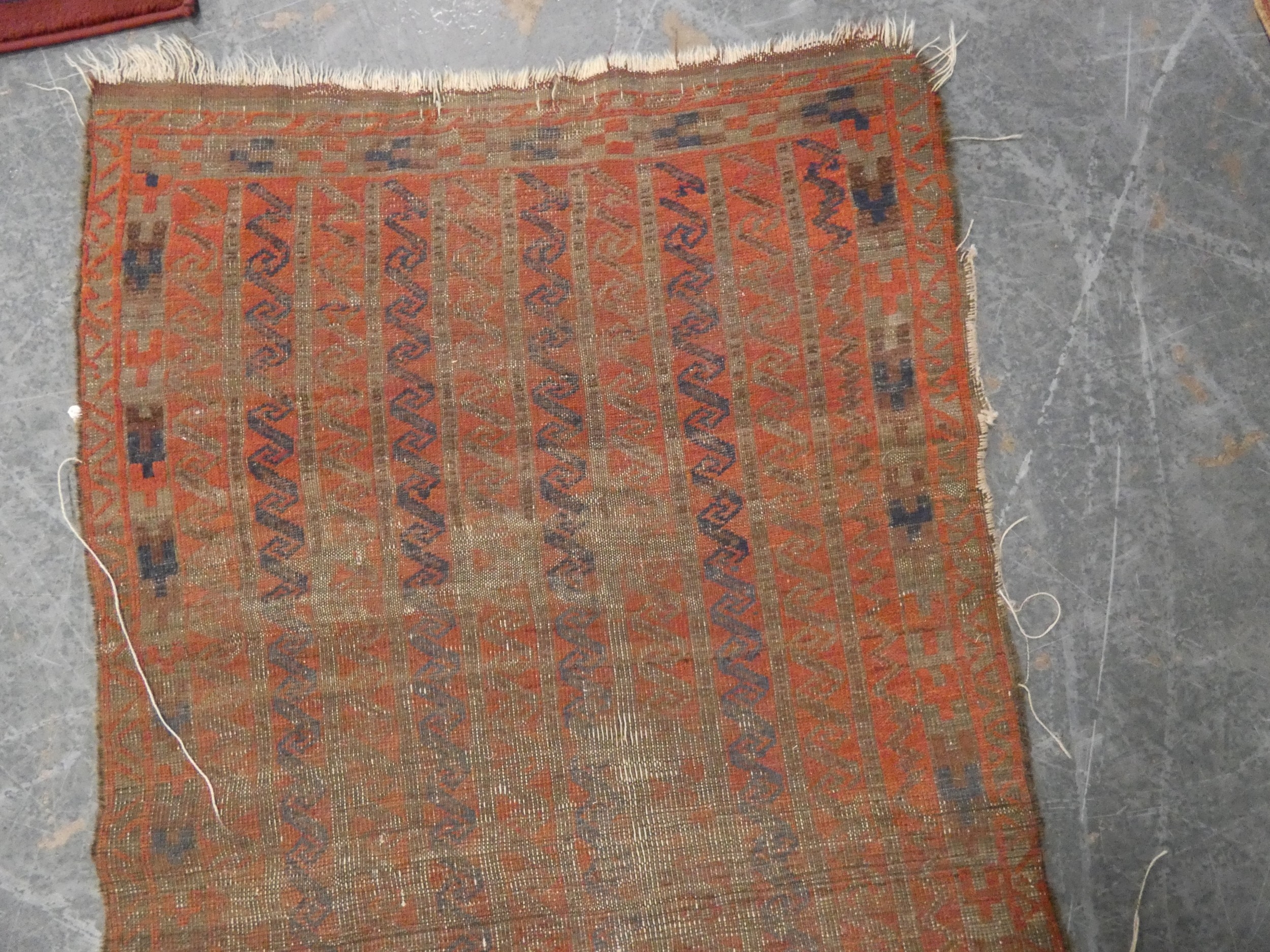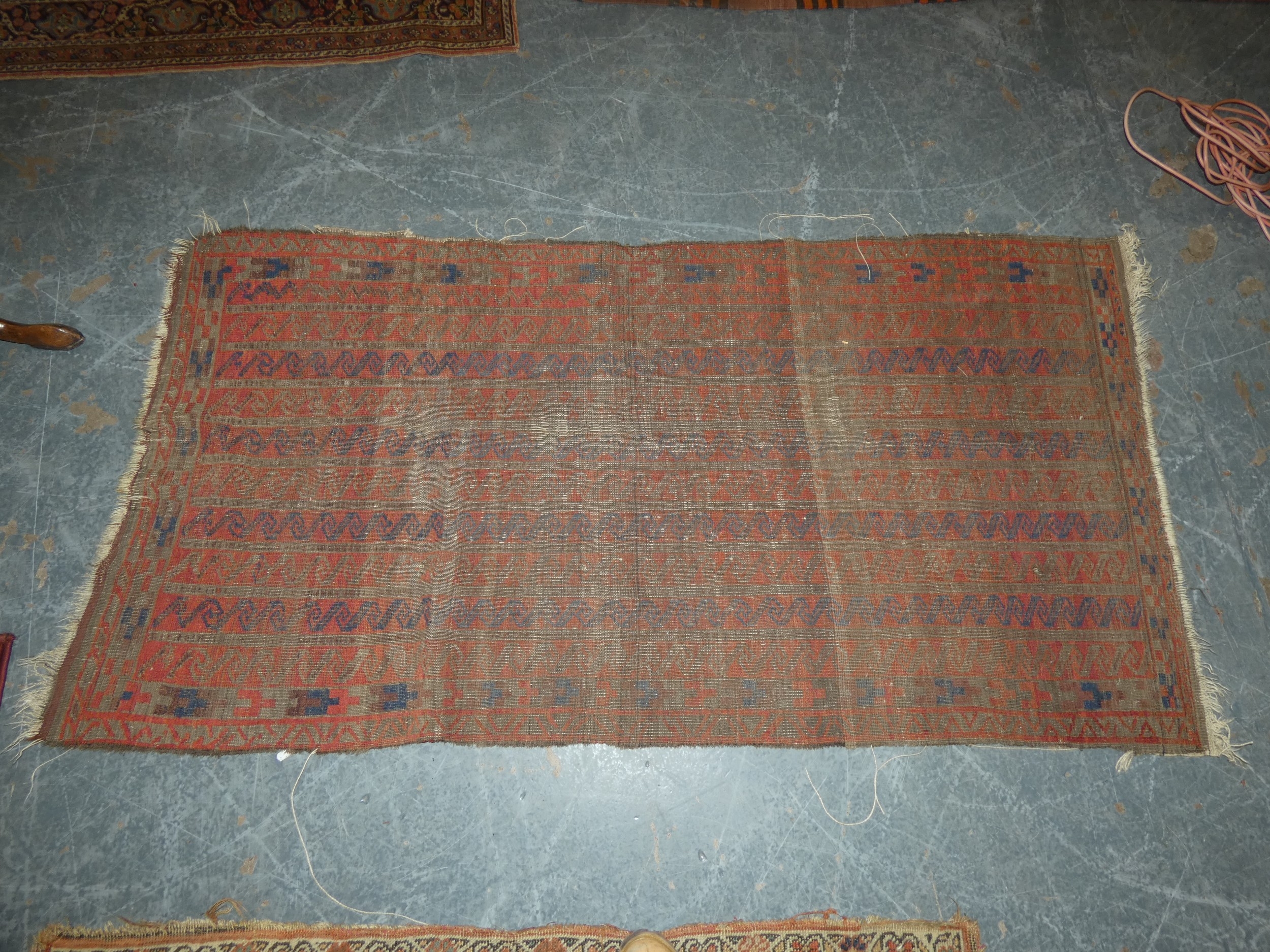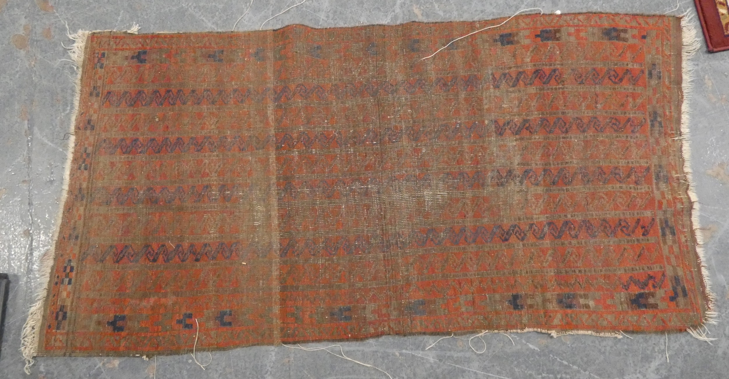 North West Persian Kurdish rug and a Belouch rug (both with wear and tears). (2)