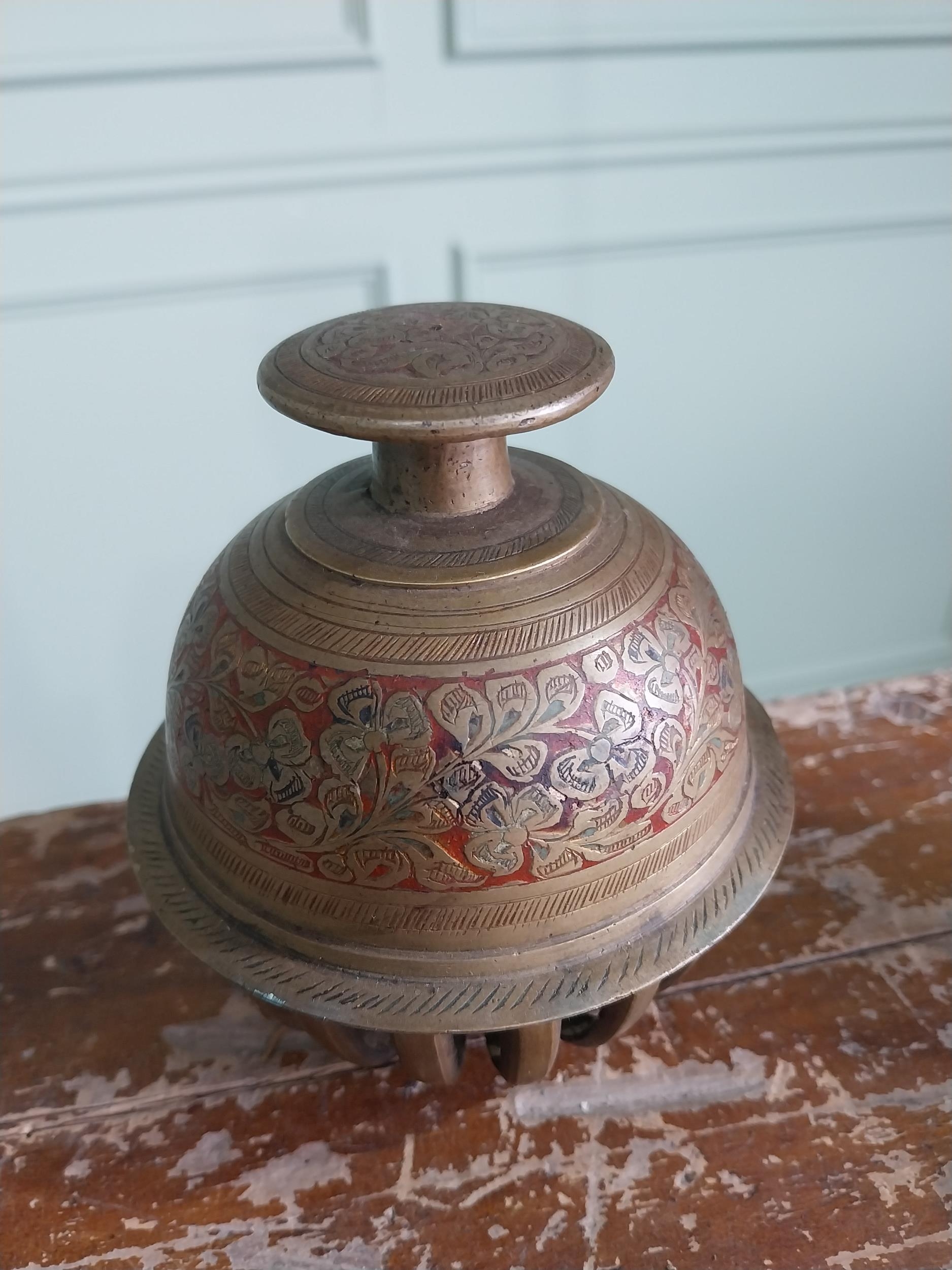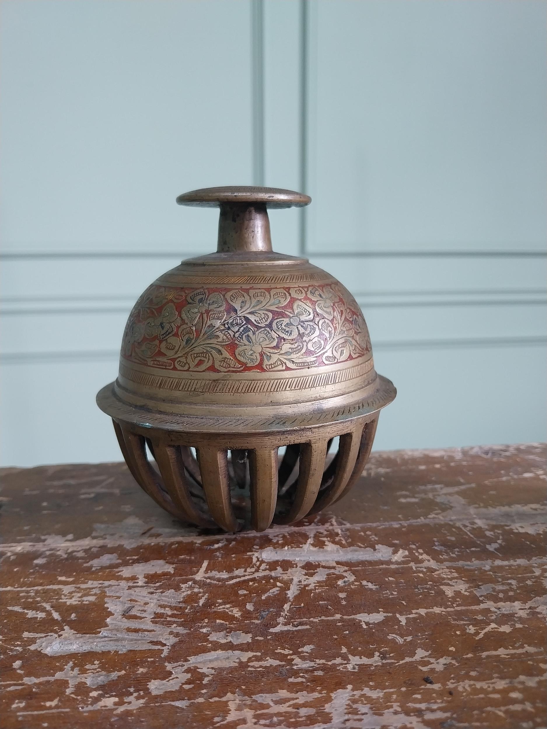 Decorative brass prayer bell {12 cm H x 10 cm Dia.}.