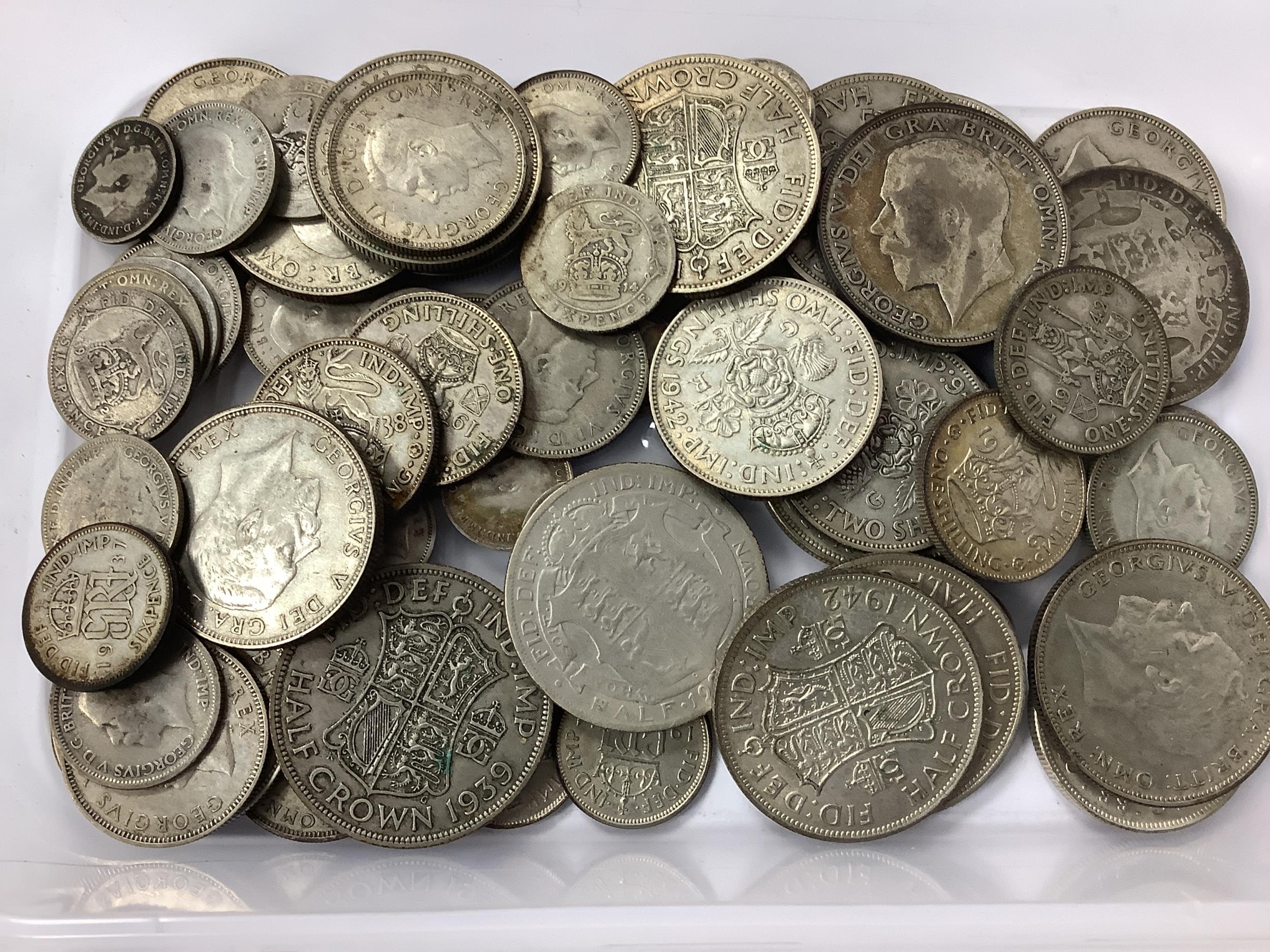 Collection Of GB Pre 1947 Silver Coins, including Half Crowns, Shillings etc, total weight 400g.