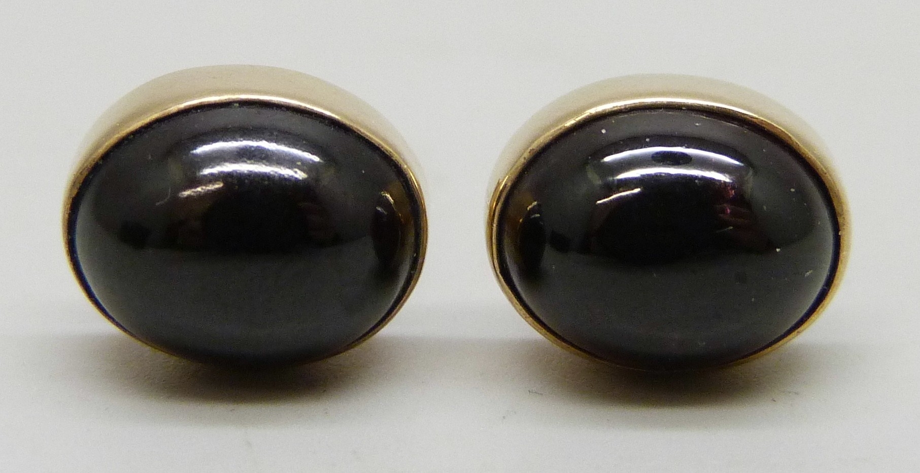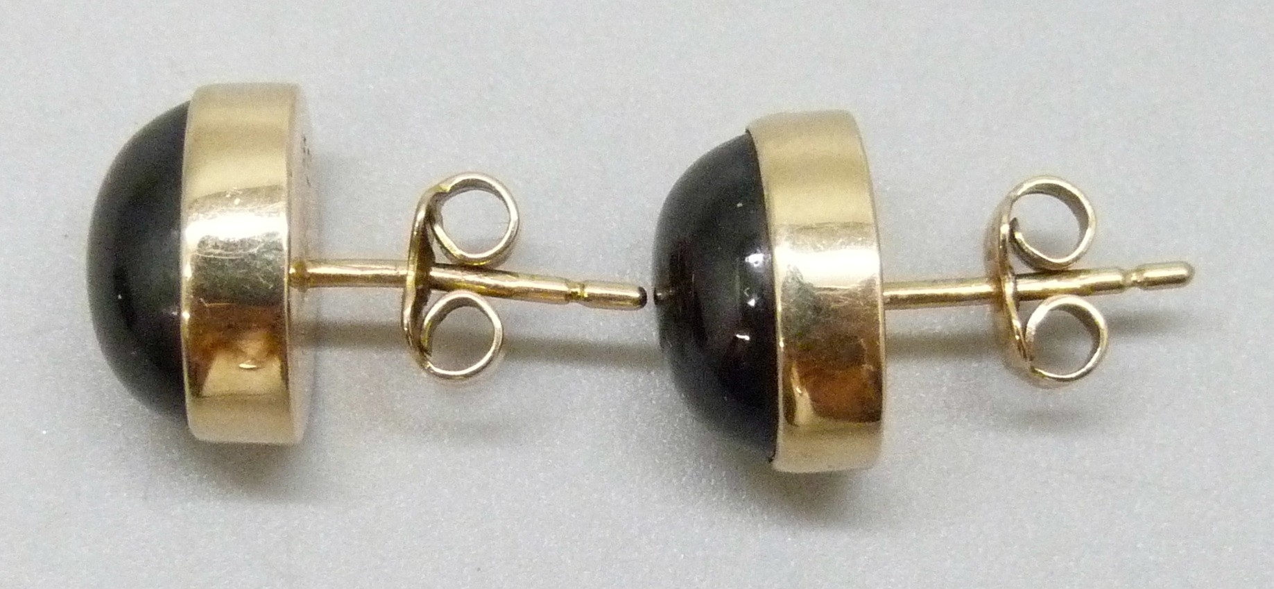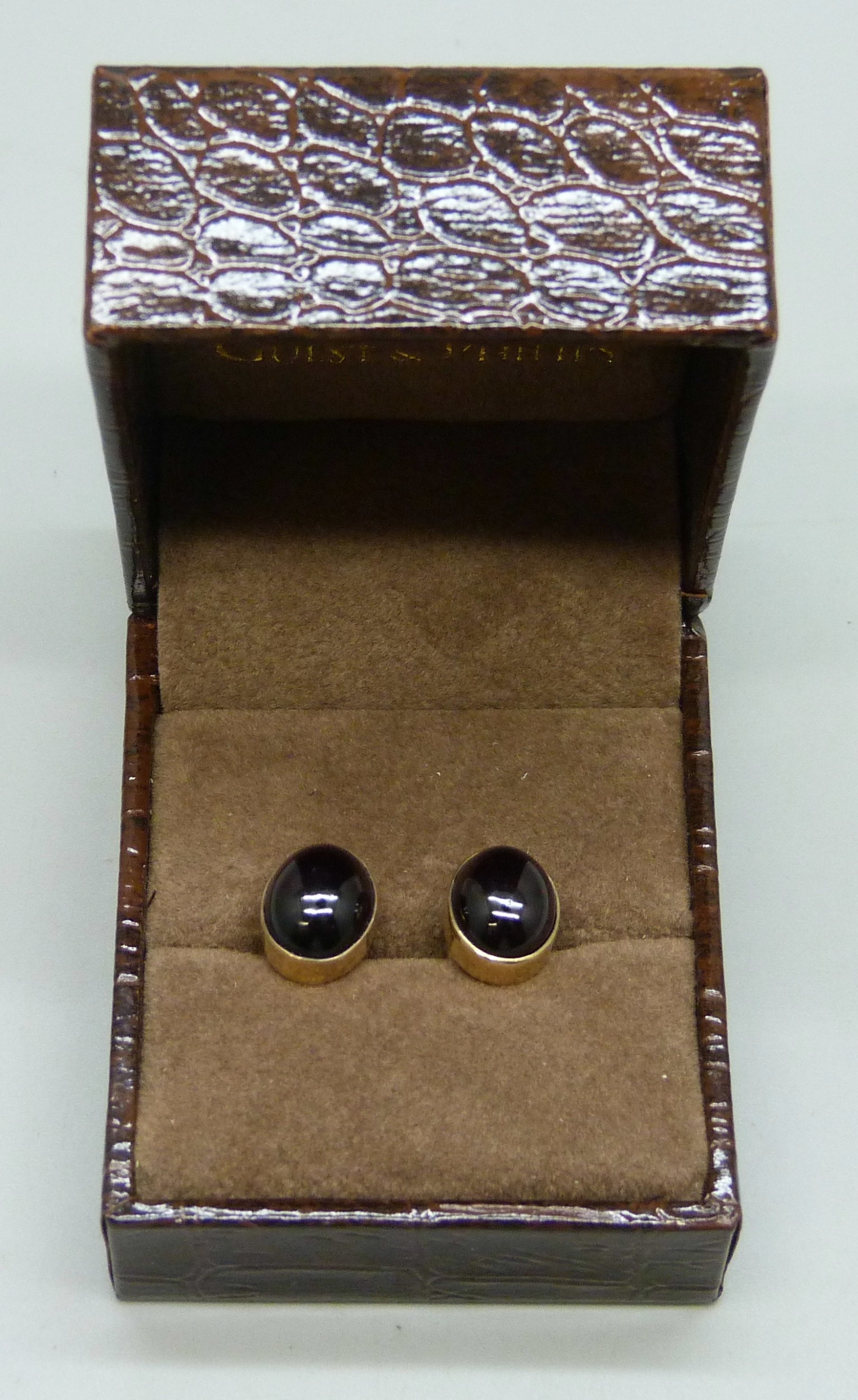 A pair of early 20th century 15ct gold and cabochon garnet earrings, with 9ct gold butterflies, 3.9g