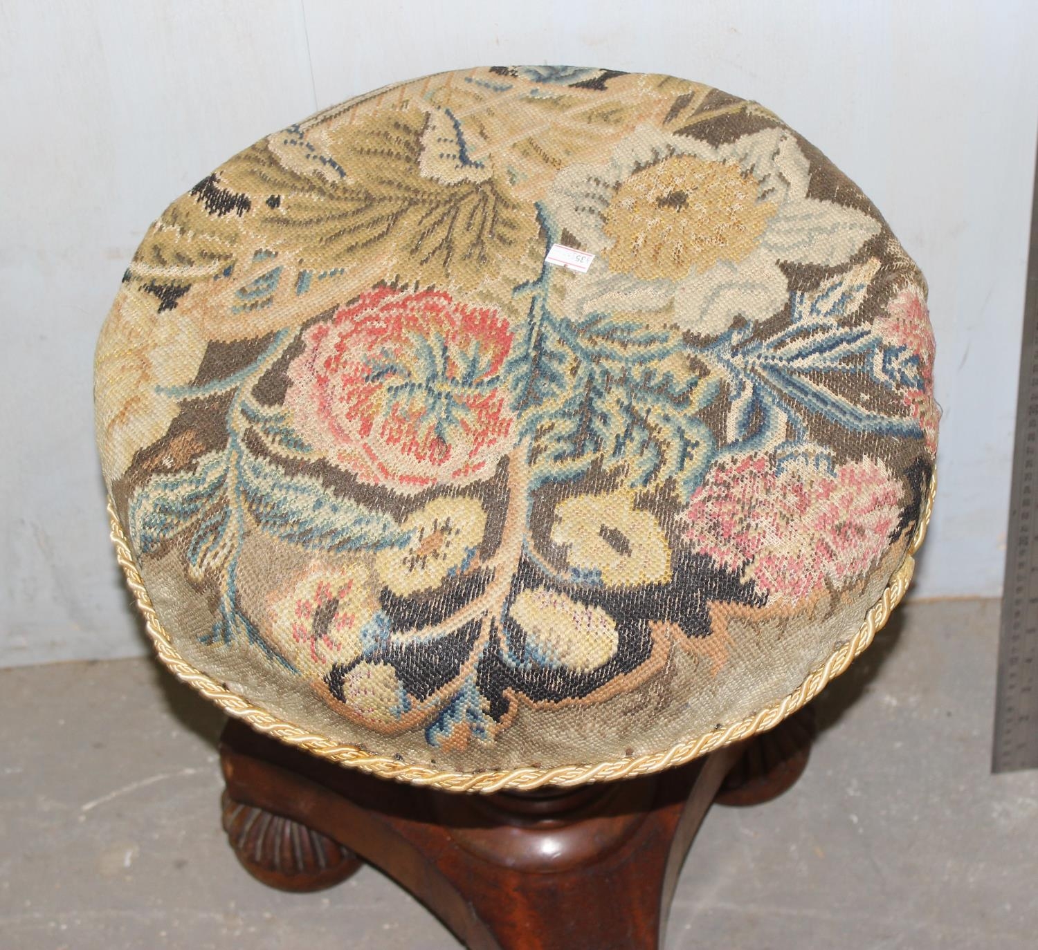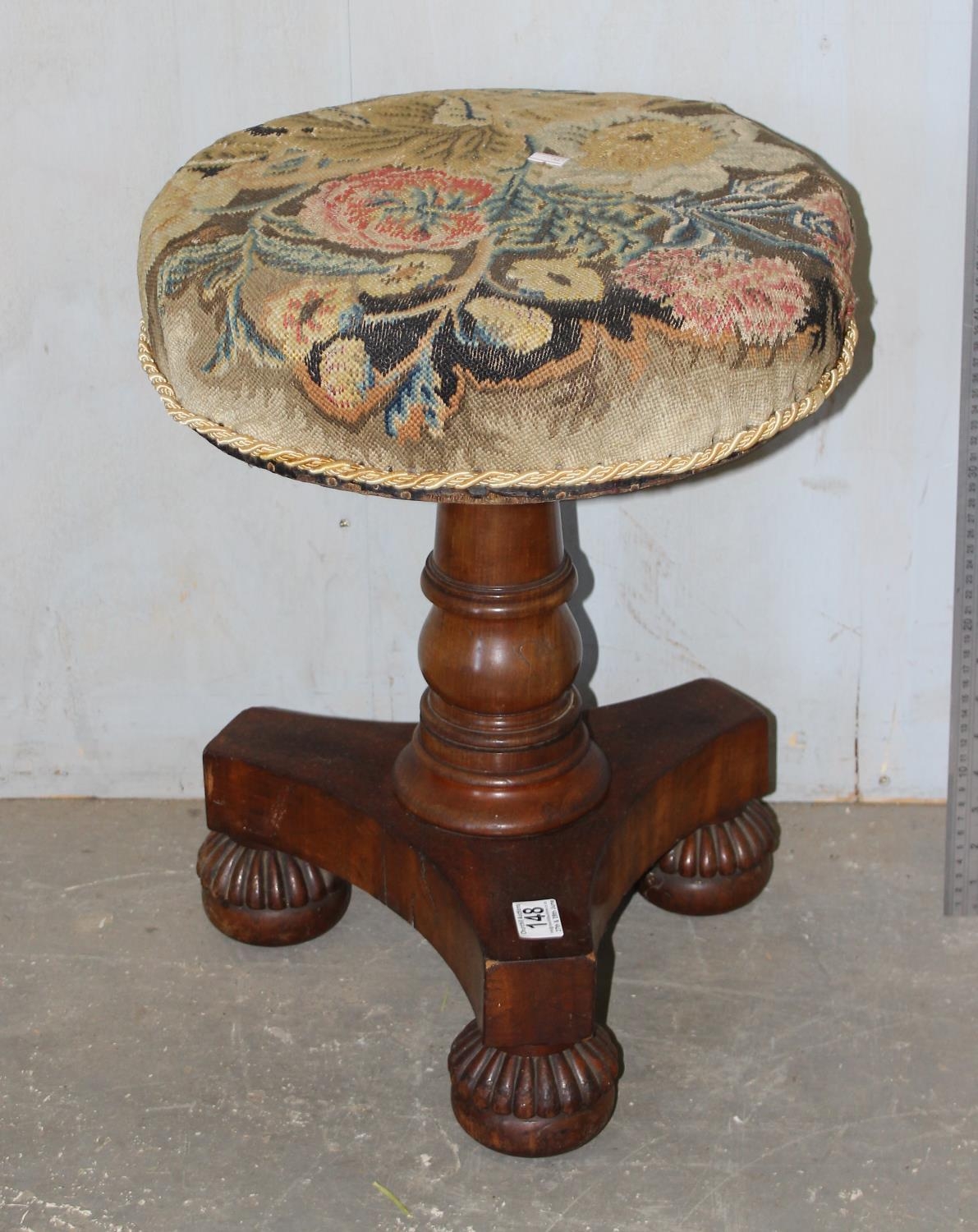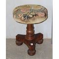 Antique mahogany piano stool with tapestry top