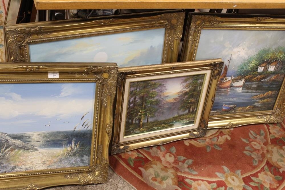 FOUR ASSORTED GILT FRAMED OIL ON CANVASES TO INCLUDE SEASCAPES