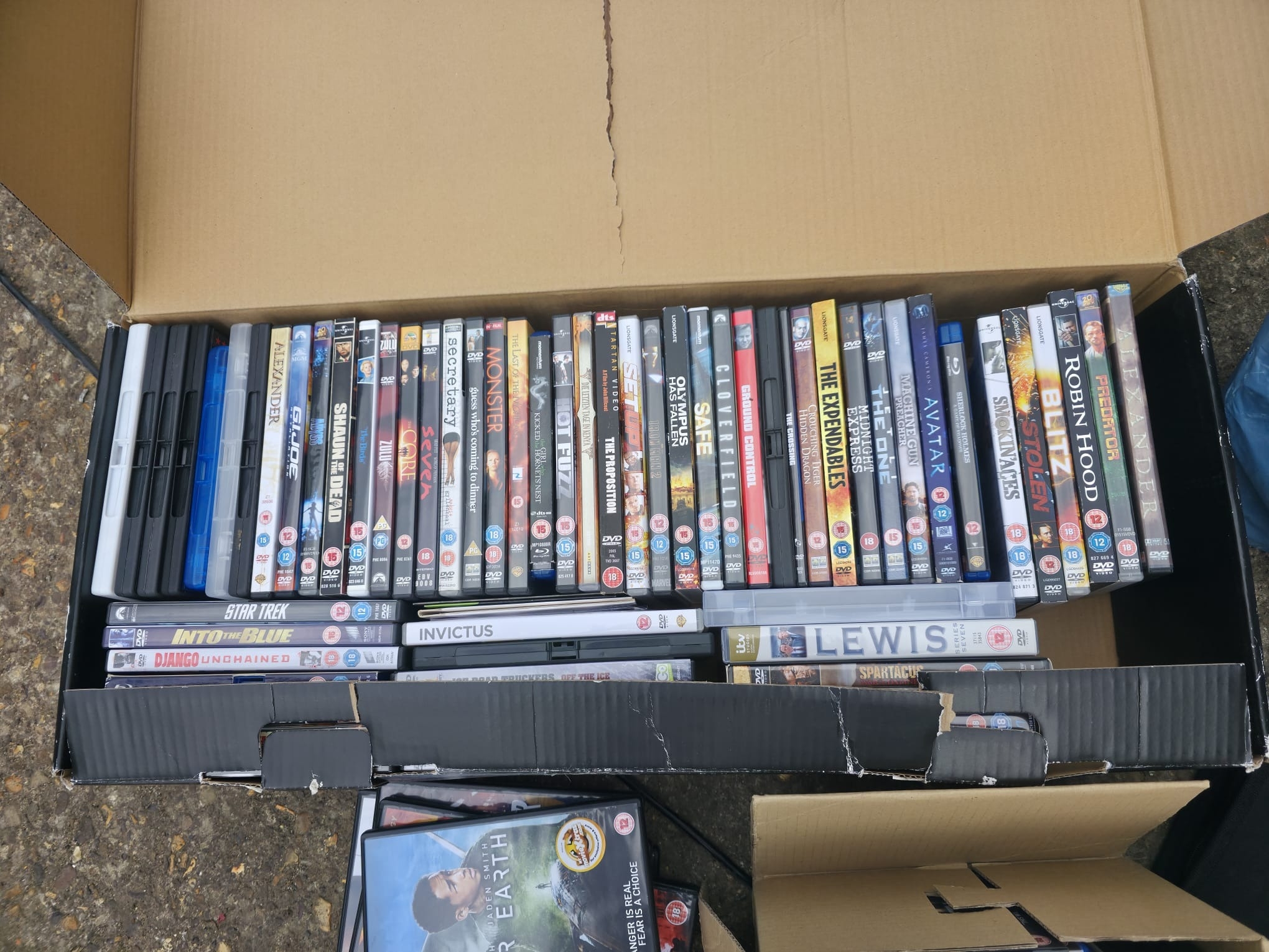 A sizeable collection of DVDs across various genres, along with additional empty or spare cases. Condition varies. Great for resale, collectors or bulk media buyers.