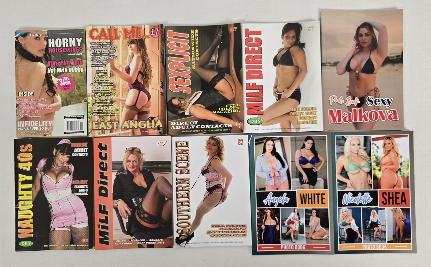 10 assorted modern smaller sized colour photographic adult erotic magazines, 7 assorted contacts magazines together with 3 photo books for Angela White, Mia Malkova and Nicolette Shea.