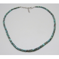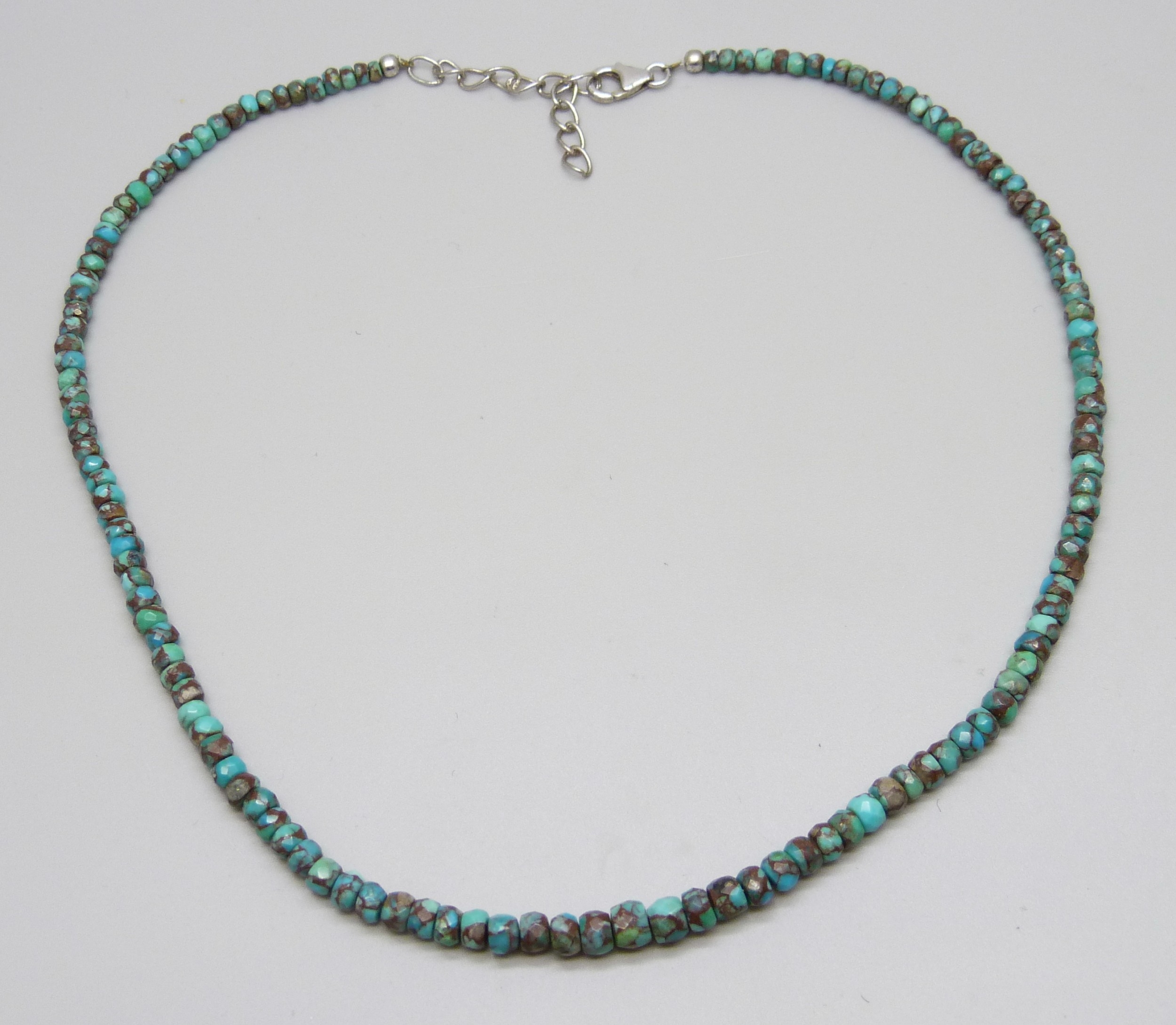 A faceted turquoise necklace with a silver clasp, 46cm full extension