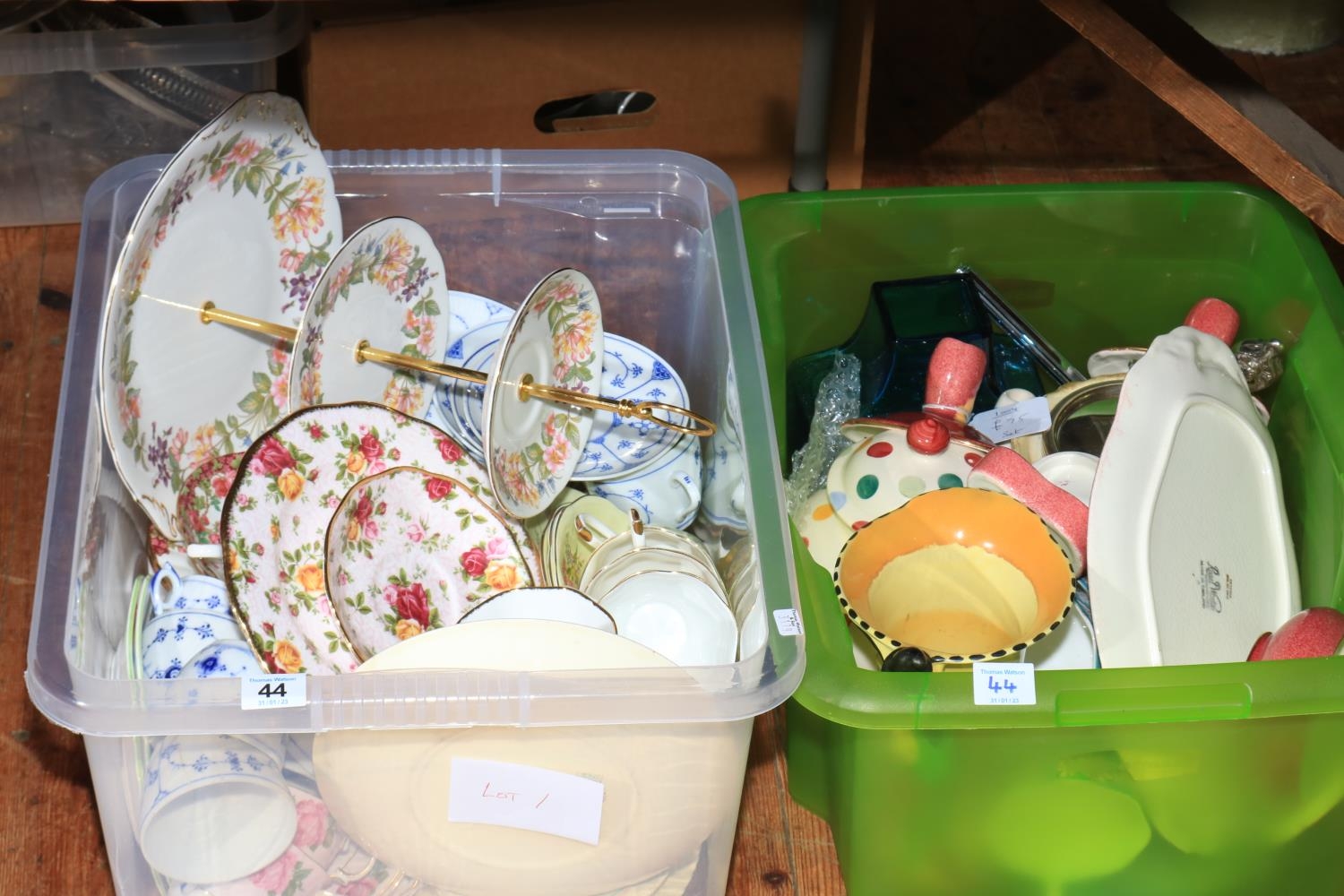 Two boxes of decorative porcelain.