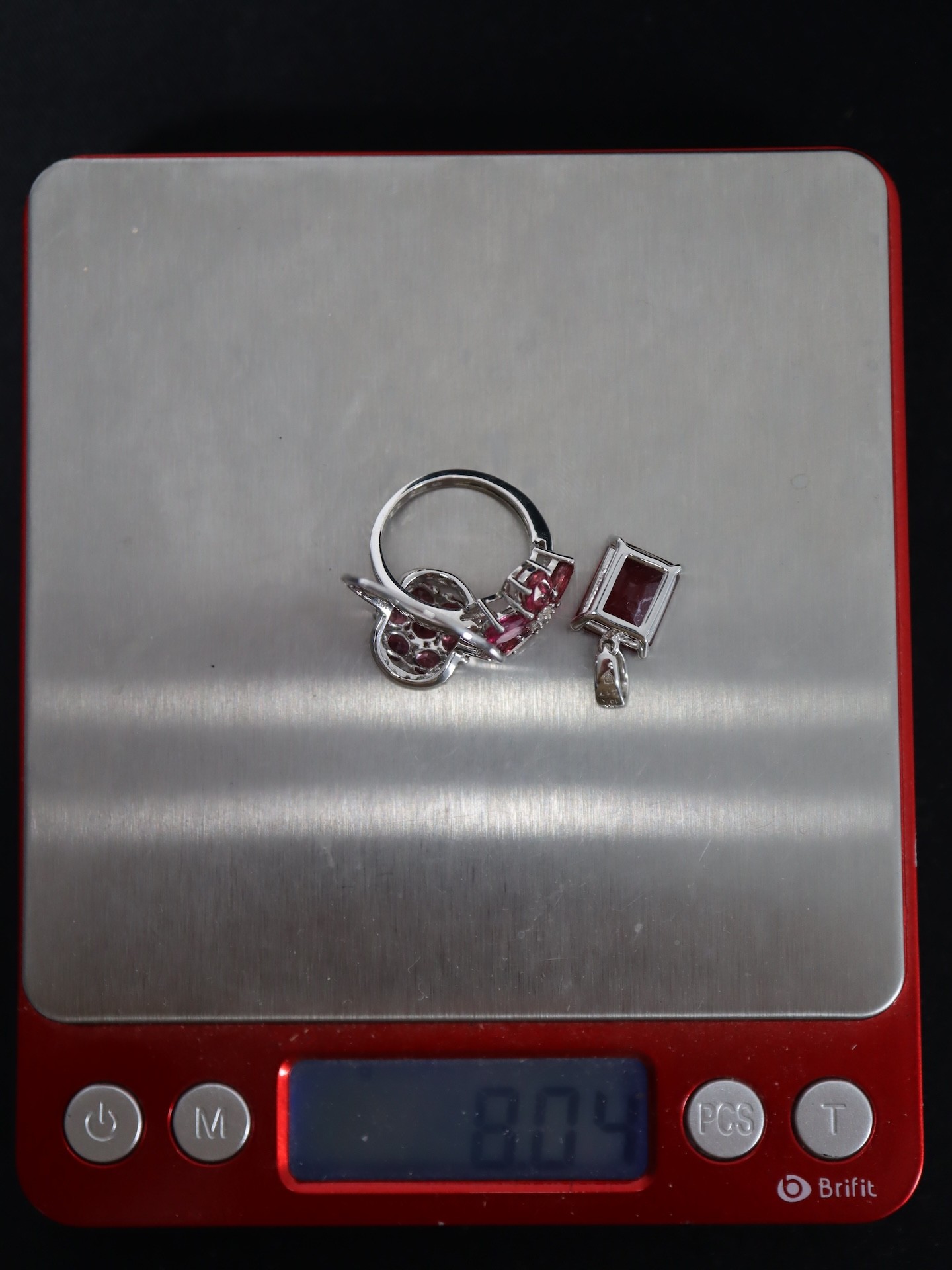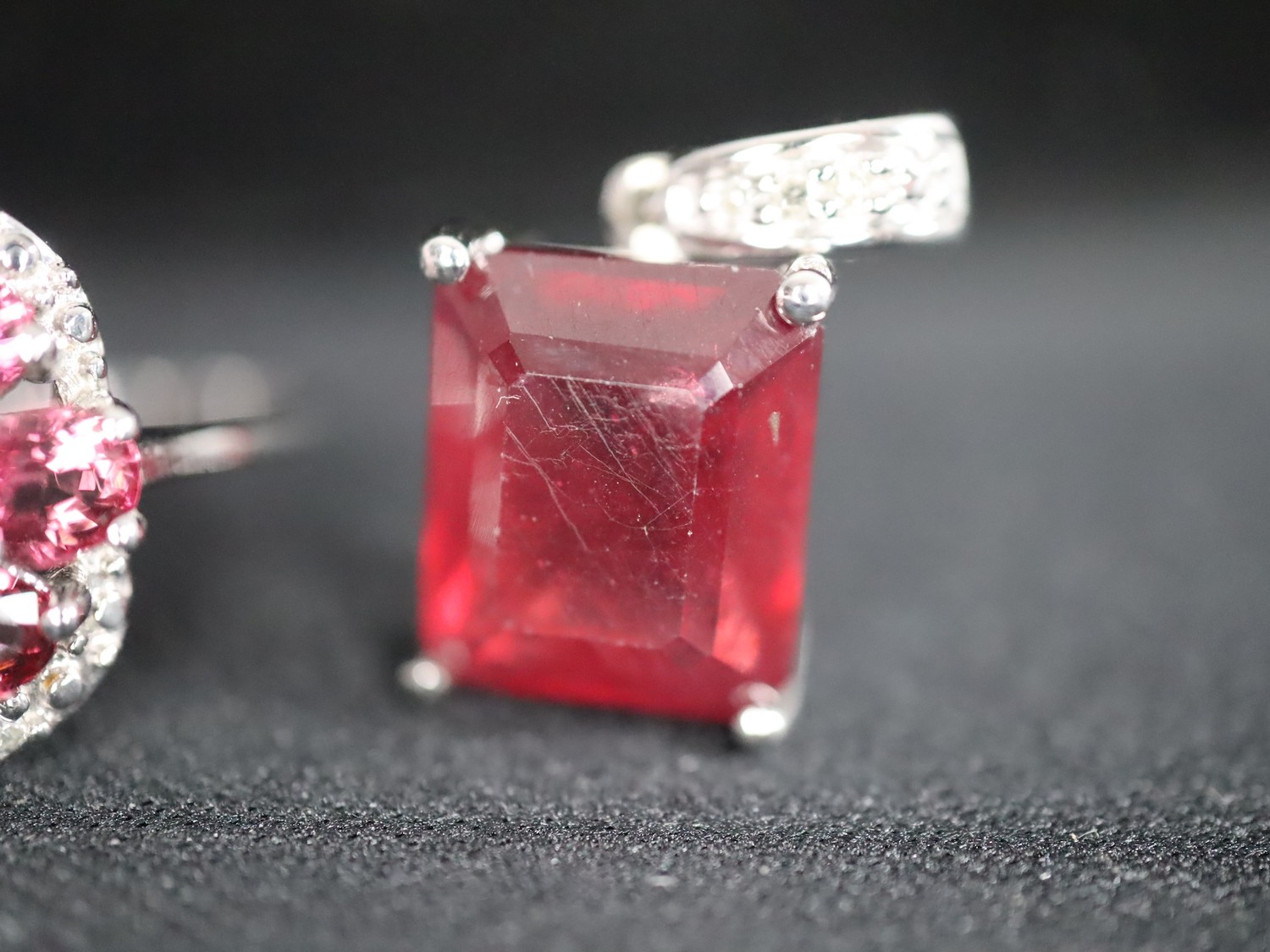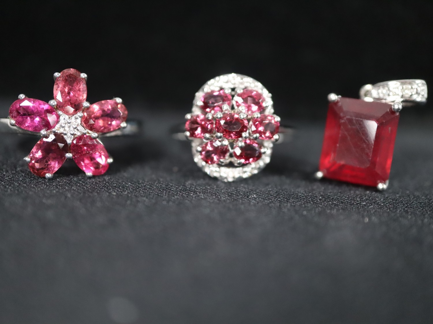 Red Spinel & Diamond 9 White Gold Ring Atgw 1.47cts Size N to O , Malagasy Ruby & Diamond 9K White Gold Pendant 7.26cts & Burmese Ruby & Diamond 9K White Gold Ring Atgw 1.20cts Size P to Q-8g