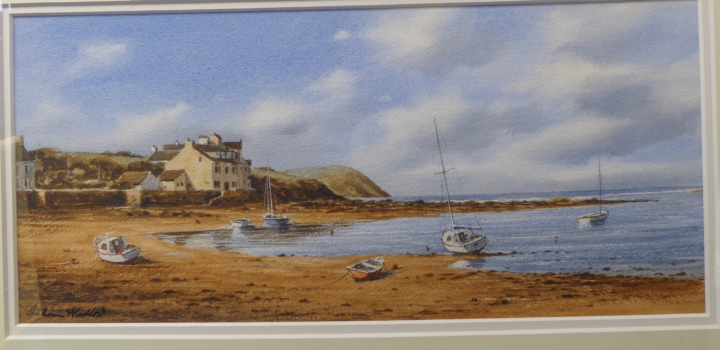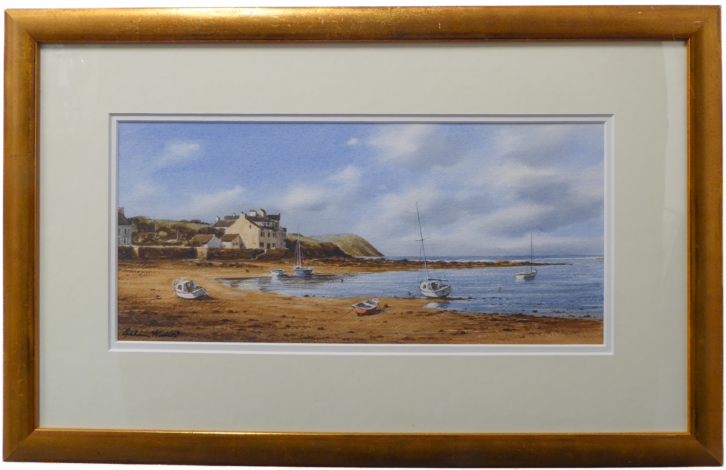 GRAHAM HADLOW (Contemporary) - 'Turning Tide', Parrog Beach, Pembs, watercolour, signed lower left (6 x 13½in; 15.5 x 34.5cm). Good condition