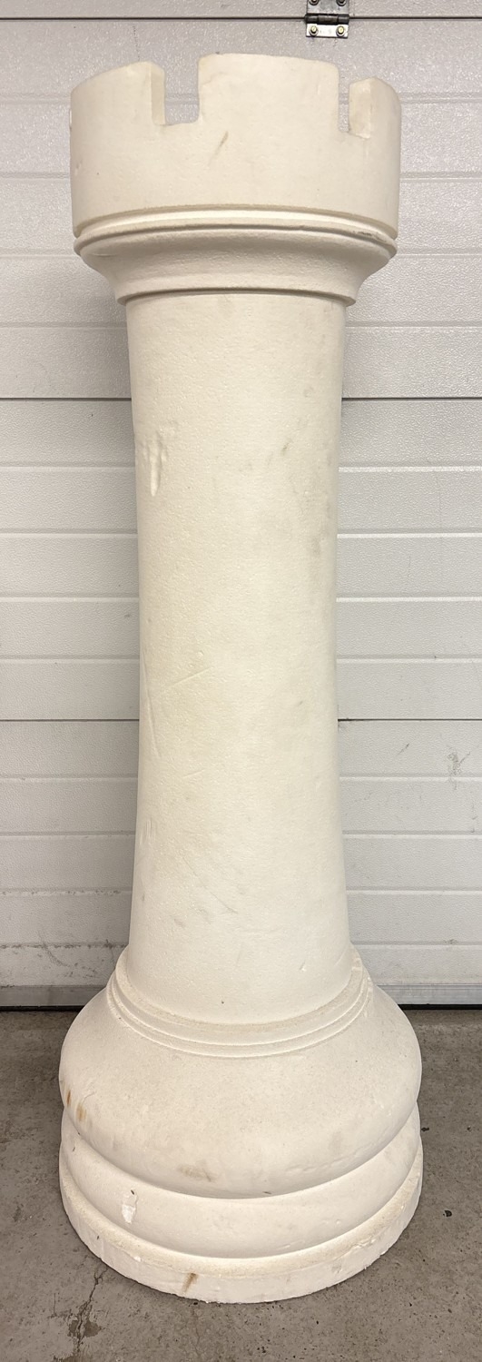 A very large polystyrene castle chess piece, suitable for interior design. Approx. 1.6m tall.