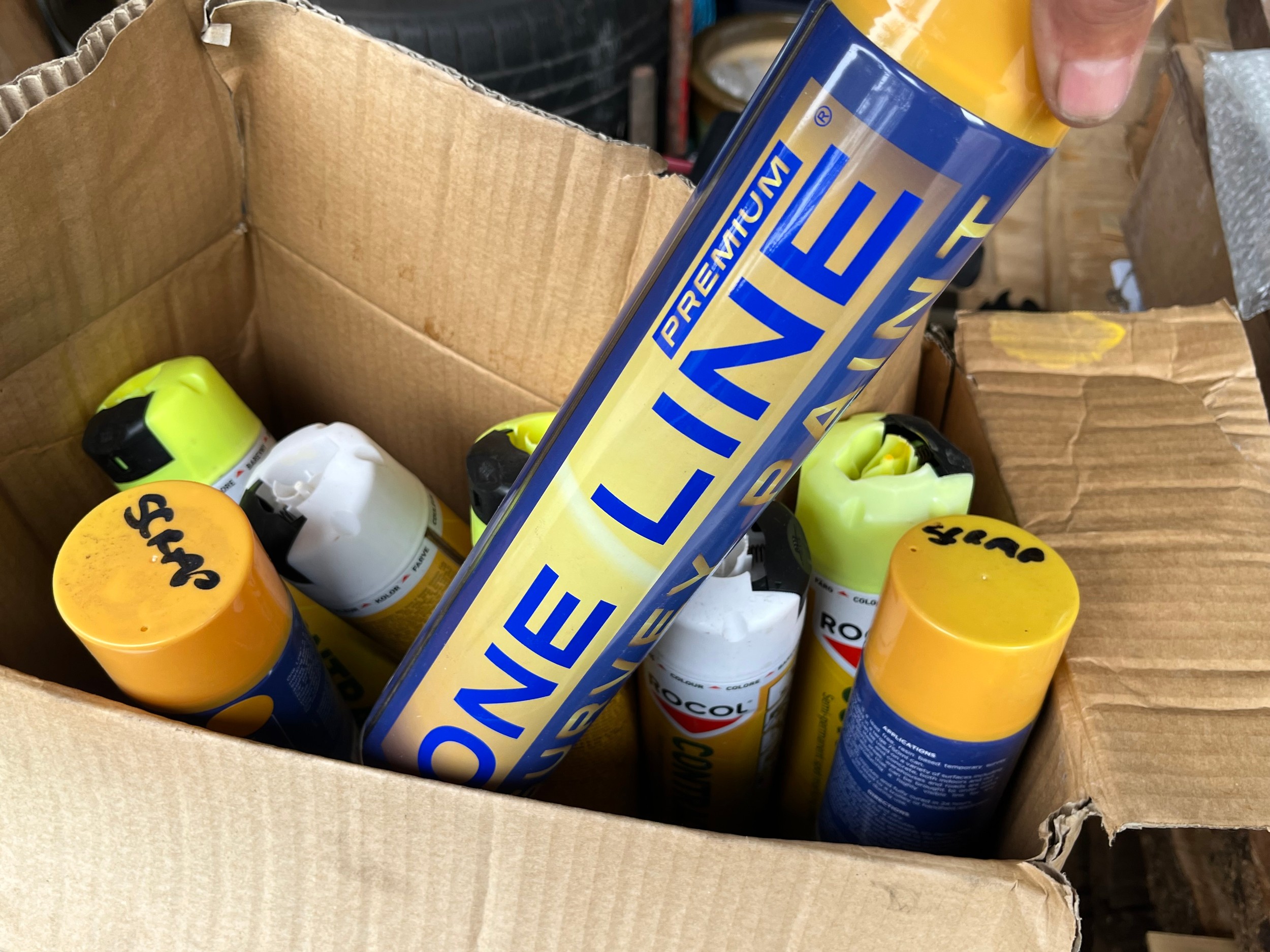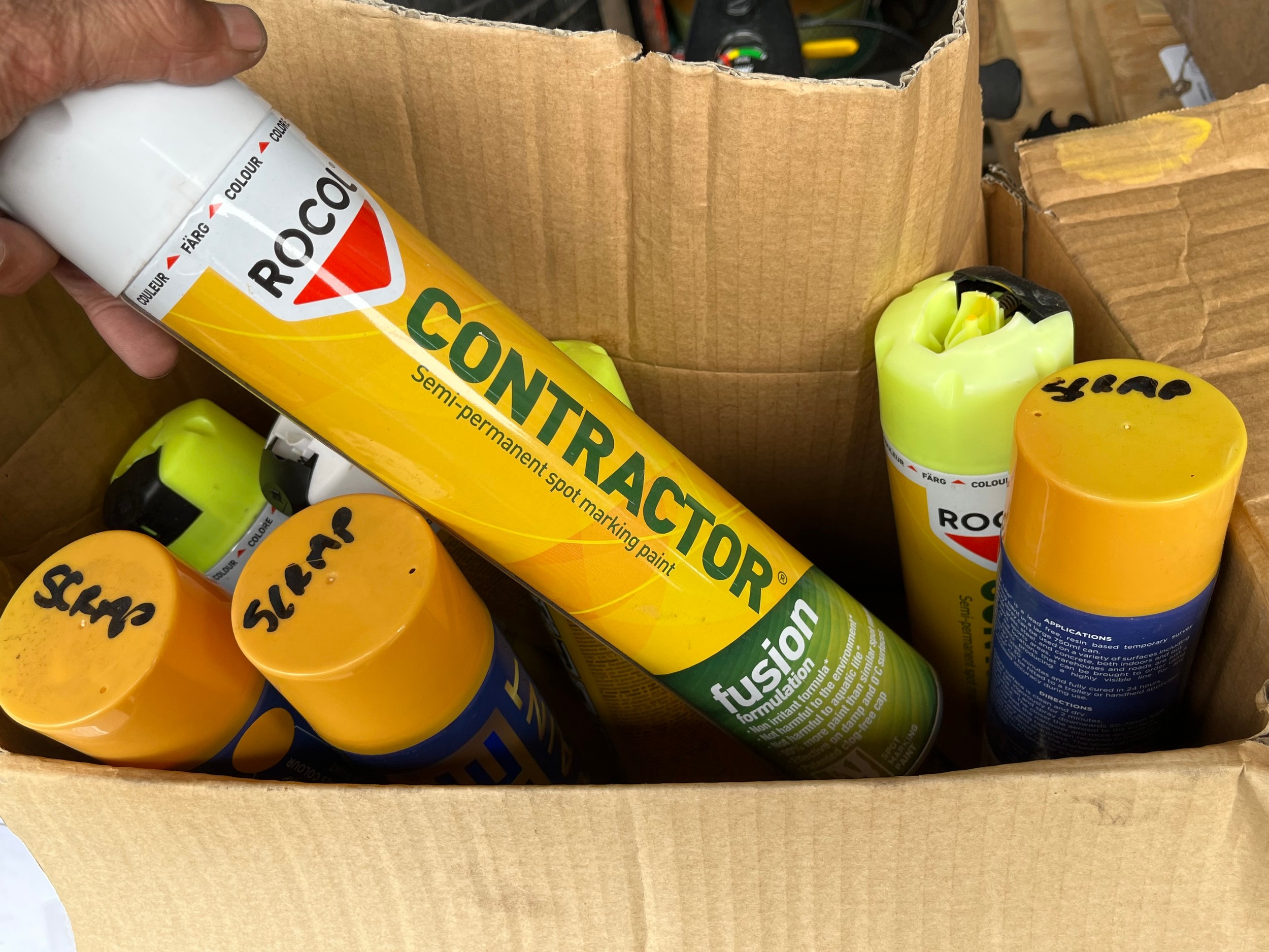 8 tins of Rocol Road marker spray paint all new and full up in various colours