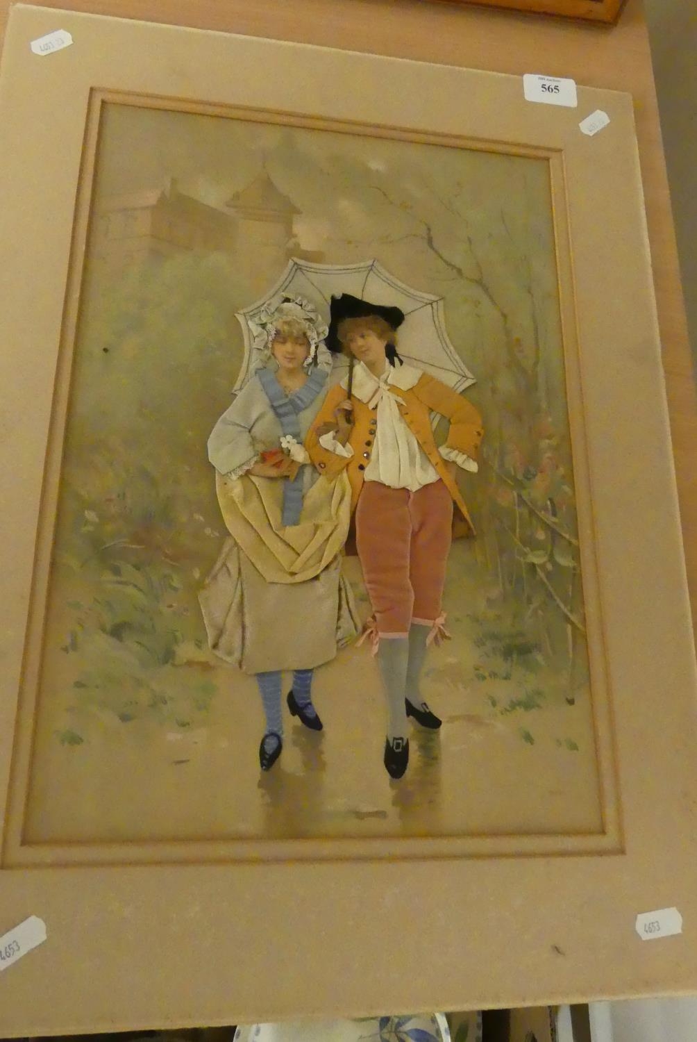 Mounted Collage, Girl & Boy in Landscape, measuring 29 x 41cm (Plus Mount).