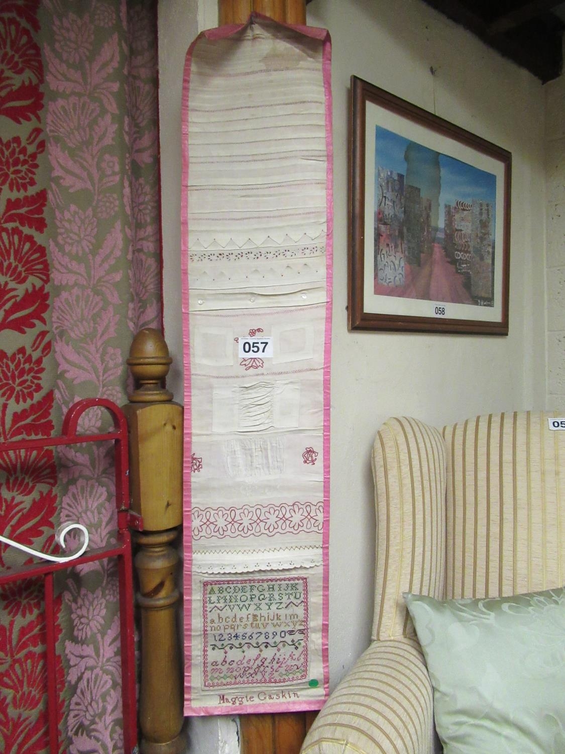 Wall hanging sampler - Maggie Gaskin. L:130cm x 28cm.