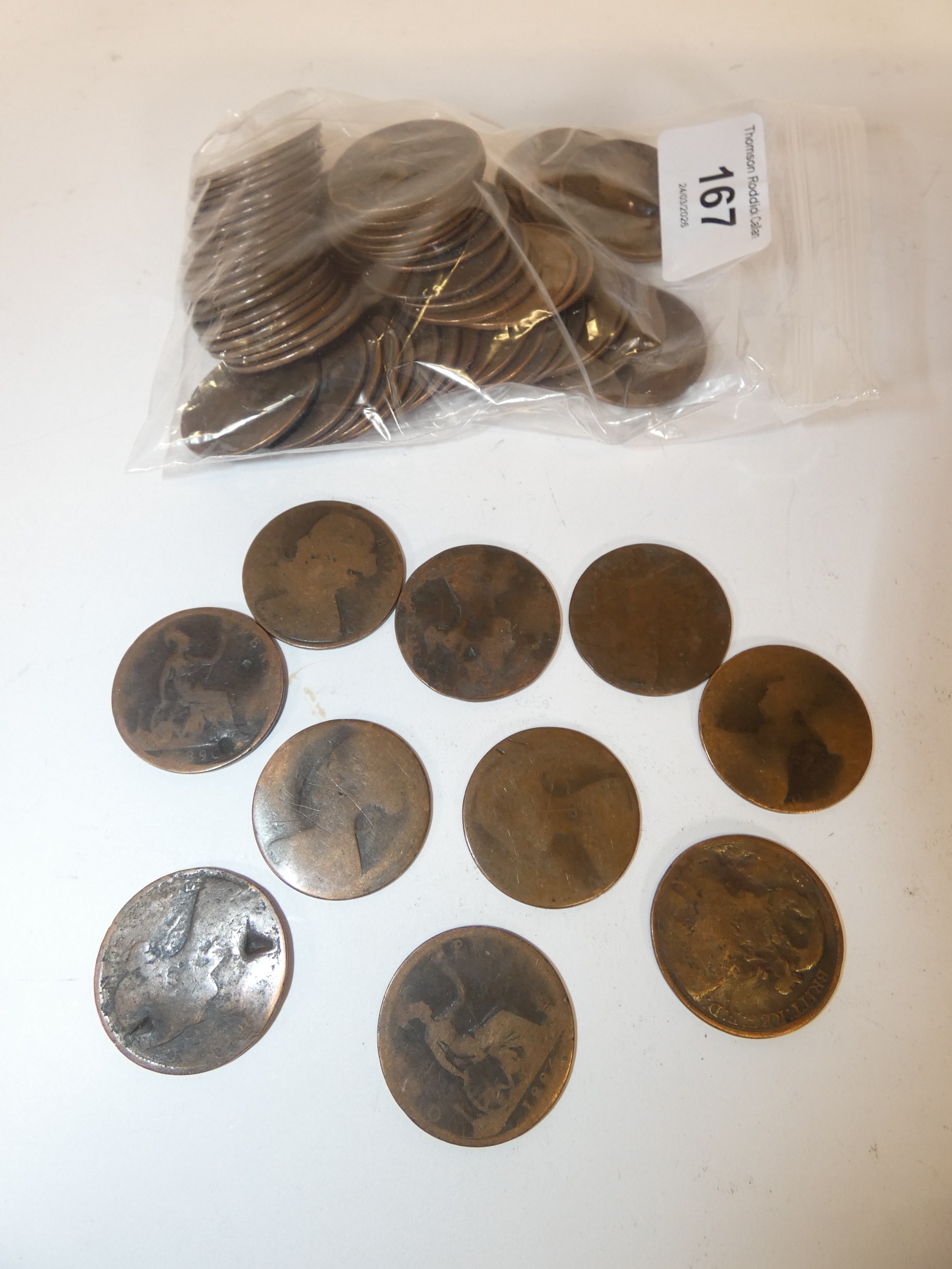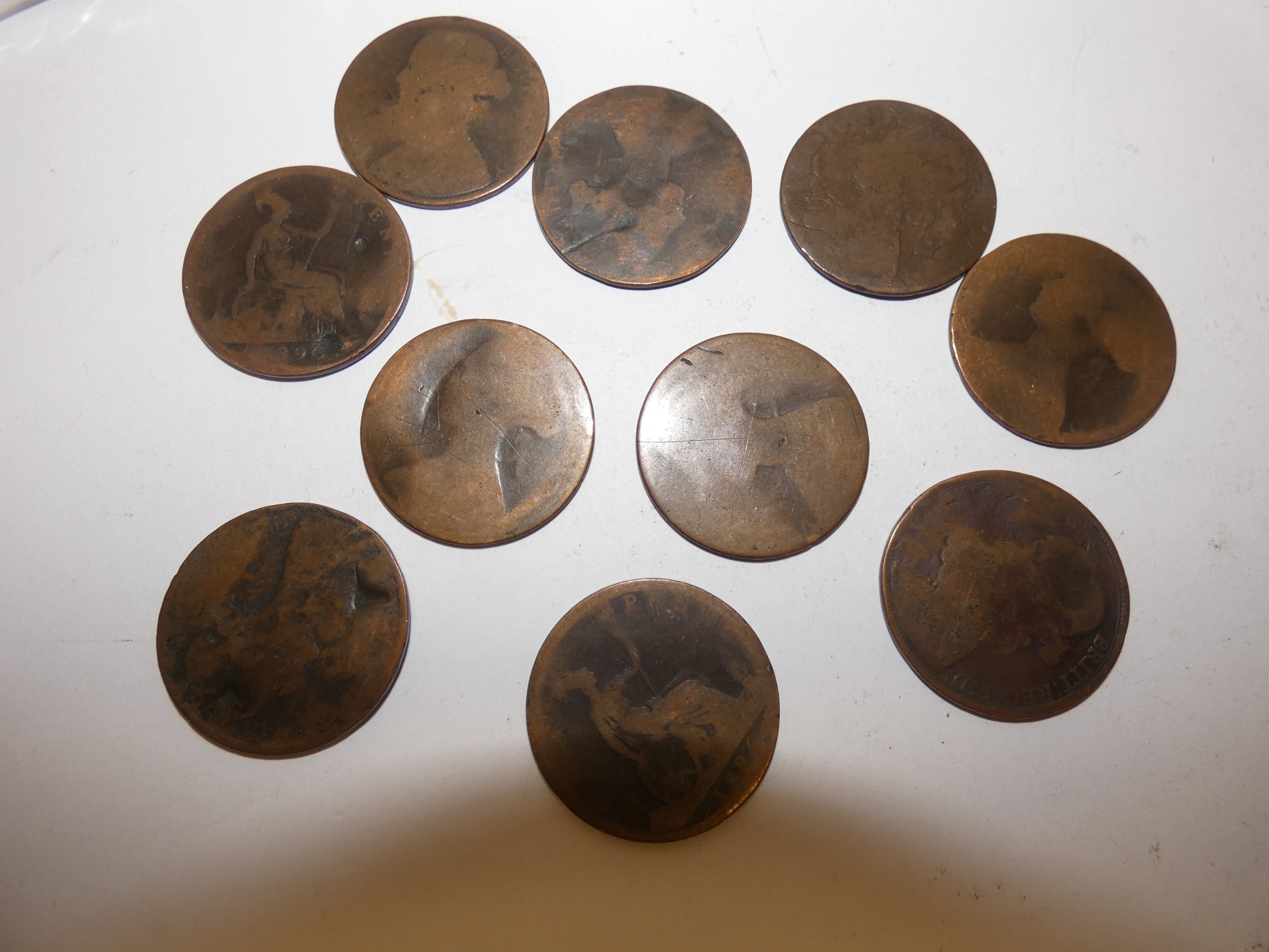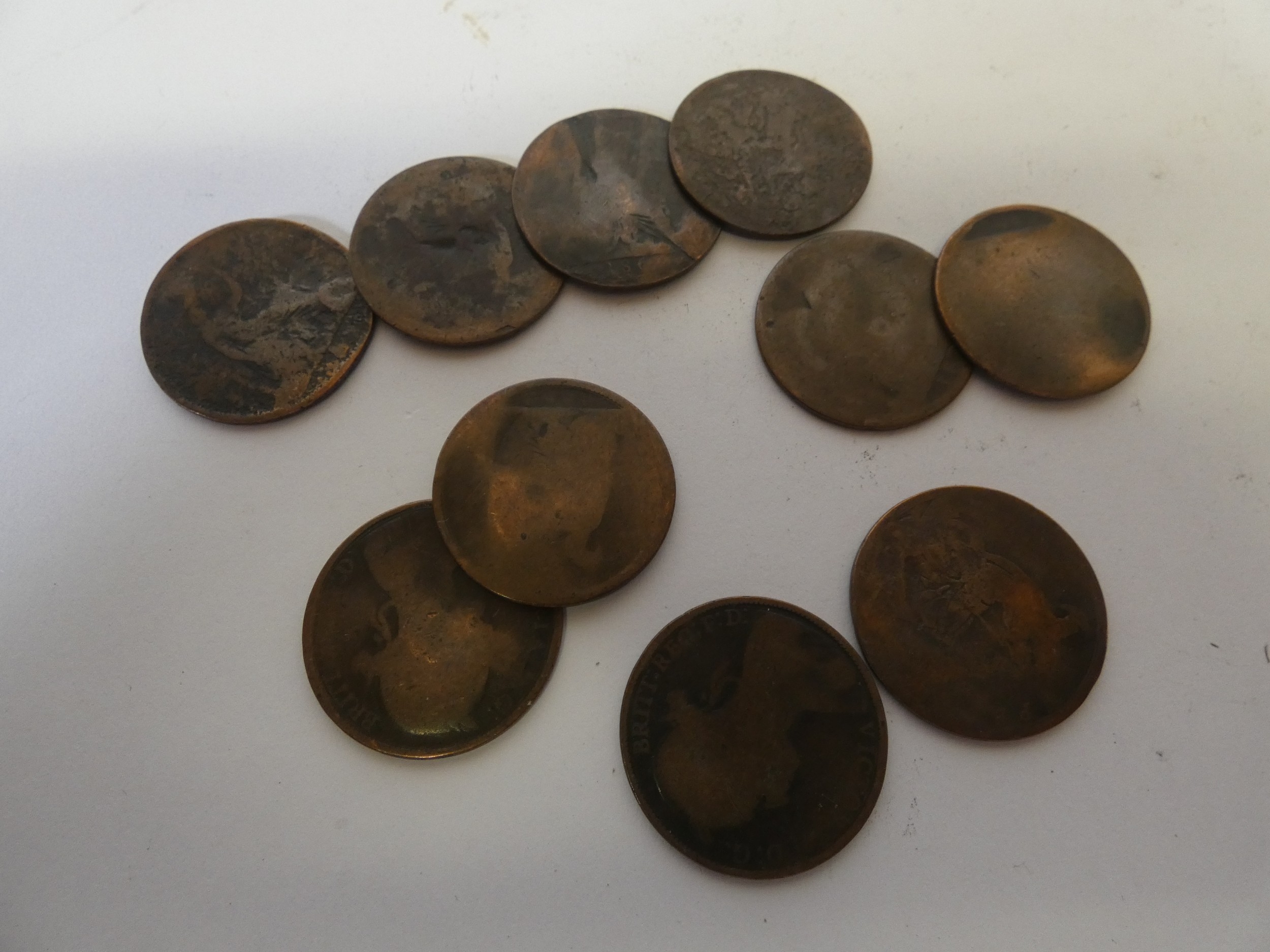Collection of Queen Victoria (young head) copper pennies, various years.