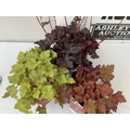 THREE MIXED COLOUR HEUCHERA - ONE 'STARRY NIGHT', ONE 'MARMALADE' AND ONE 'CHATEAU ROUGE' .IN 2 LTR POTS. APPROX 30-50CM TALL, TO BE SOLD FOR THE THREE