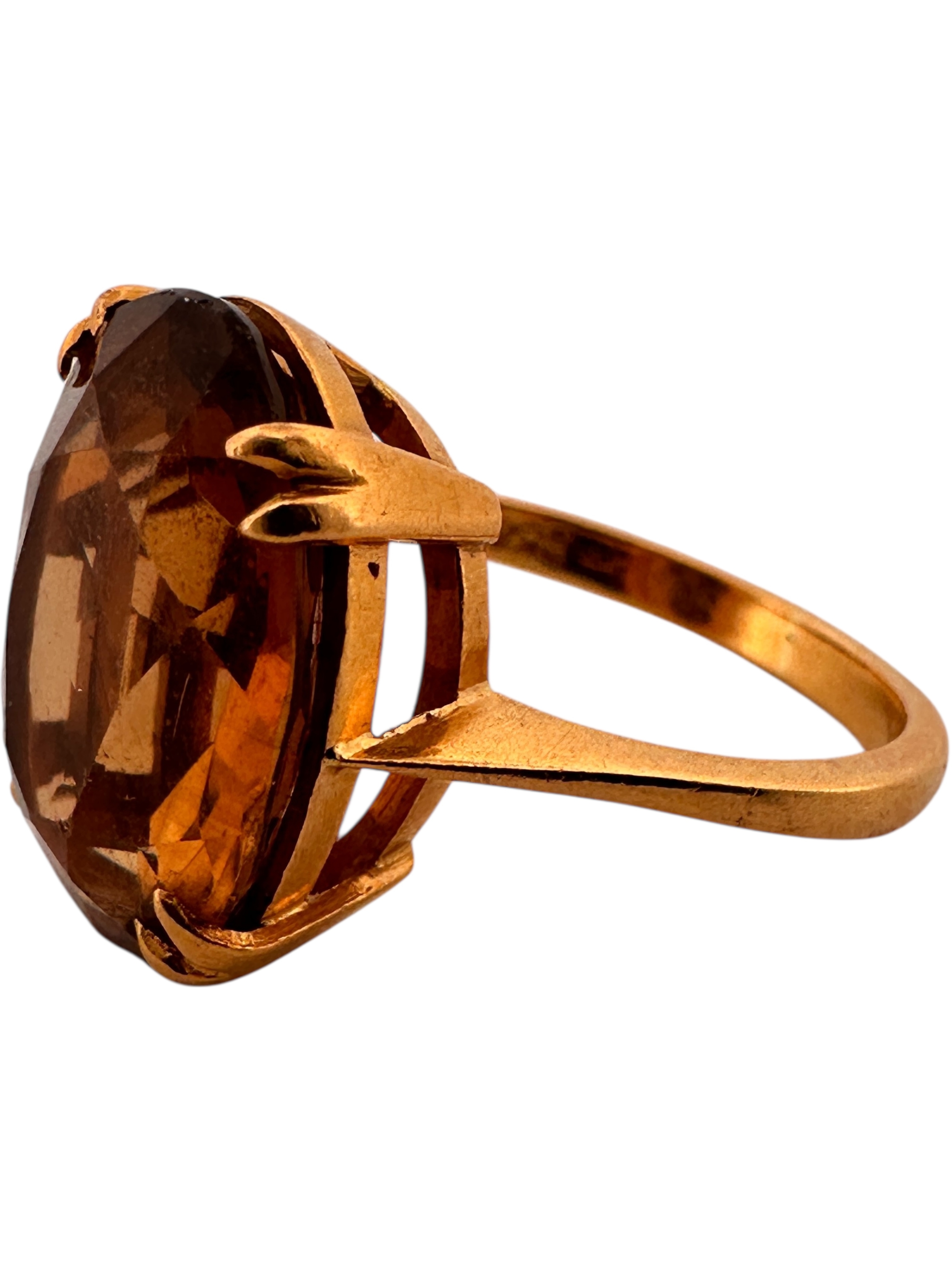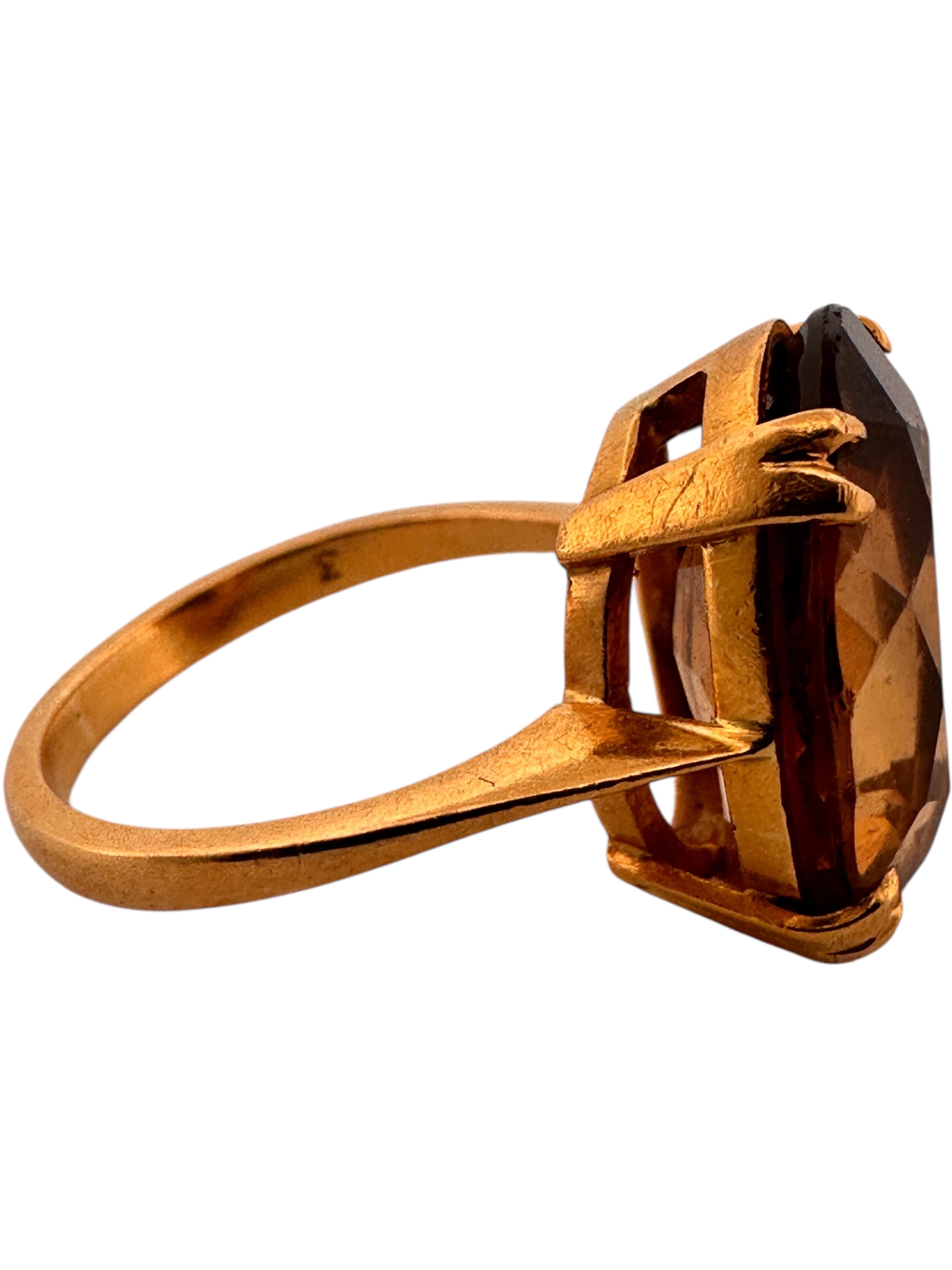 Twenty Two Carat Gold Ring with Faceted Citrine Cabochon. Size M. 5.9g