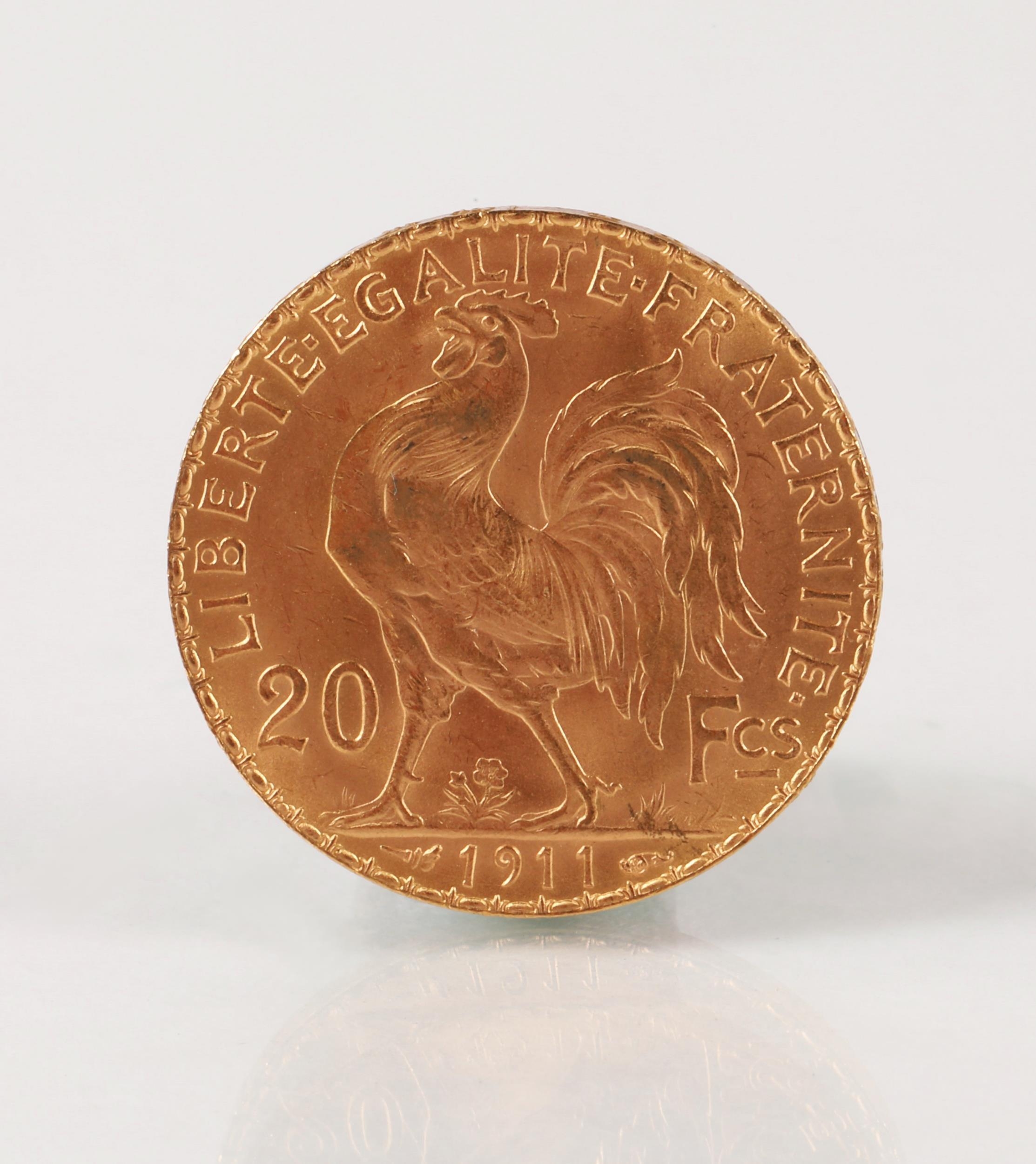 French Republique 20 Francs gold coin 1911, weight 6.4 grams