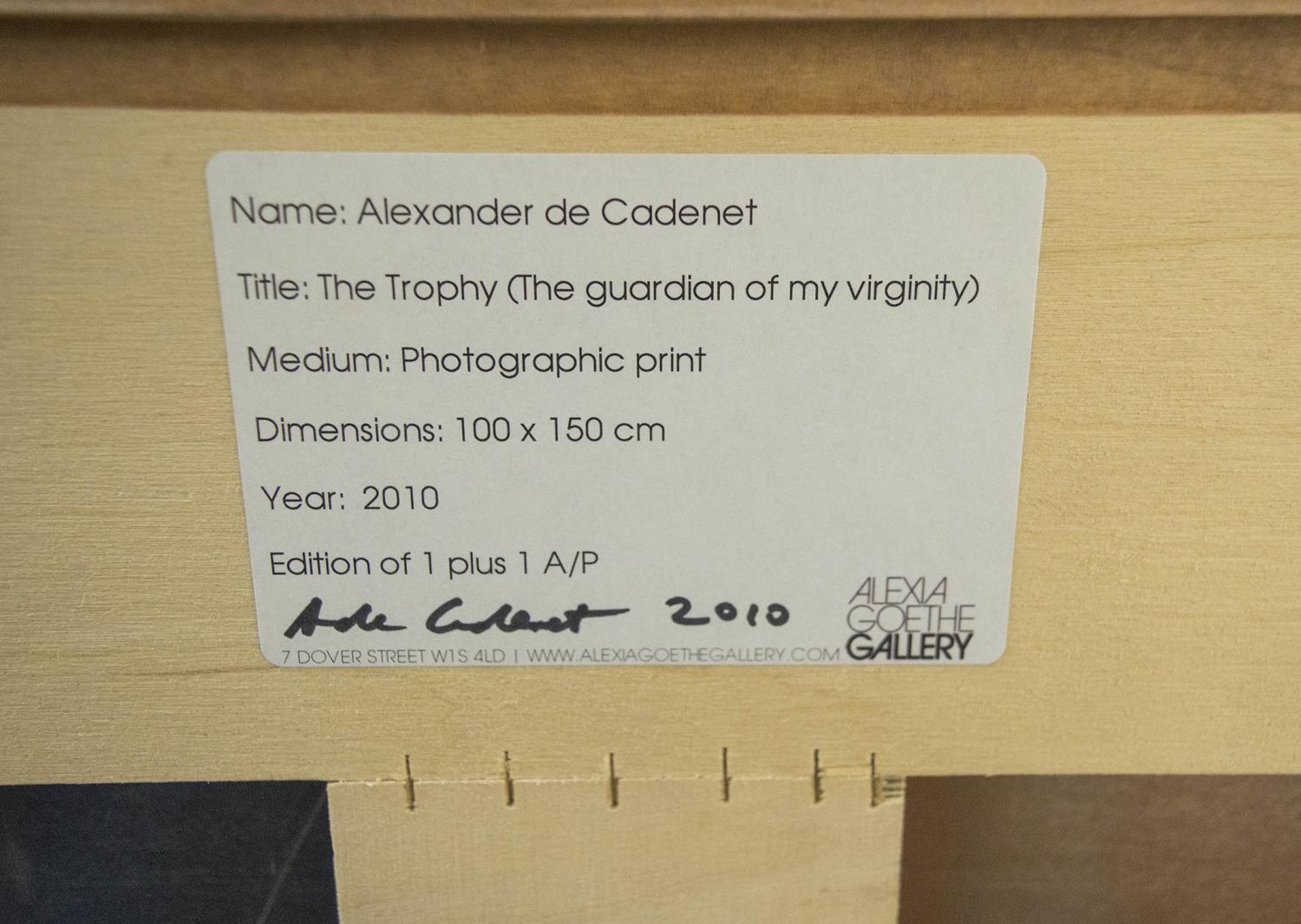 ALEXANDER DE CADENET (British b. 1974) 'The Trophy (The Guardian of my Virginity)', 2010, photographic print, mounted on aluminium, edition of 1 plus 1 A/P, signed on label verso, provenance: Alexia Goethe Gallery, 100cm x 150cm, framed with conservation materials. (Subject to ARR - see Buyers Conditions)