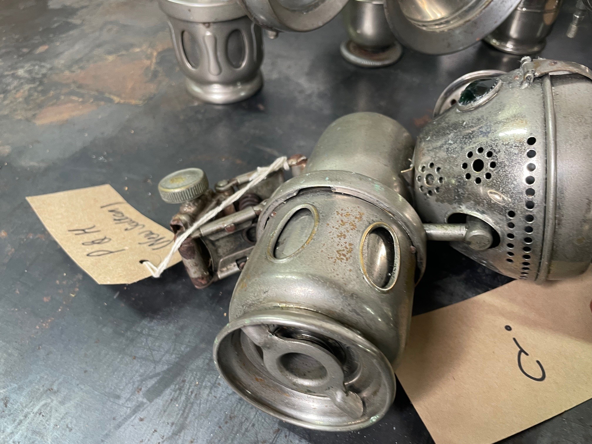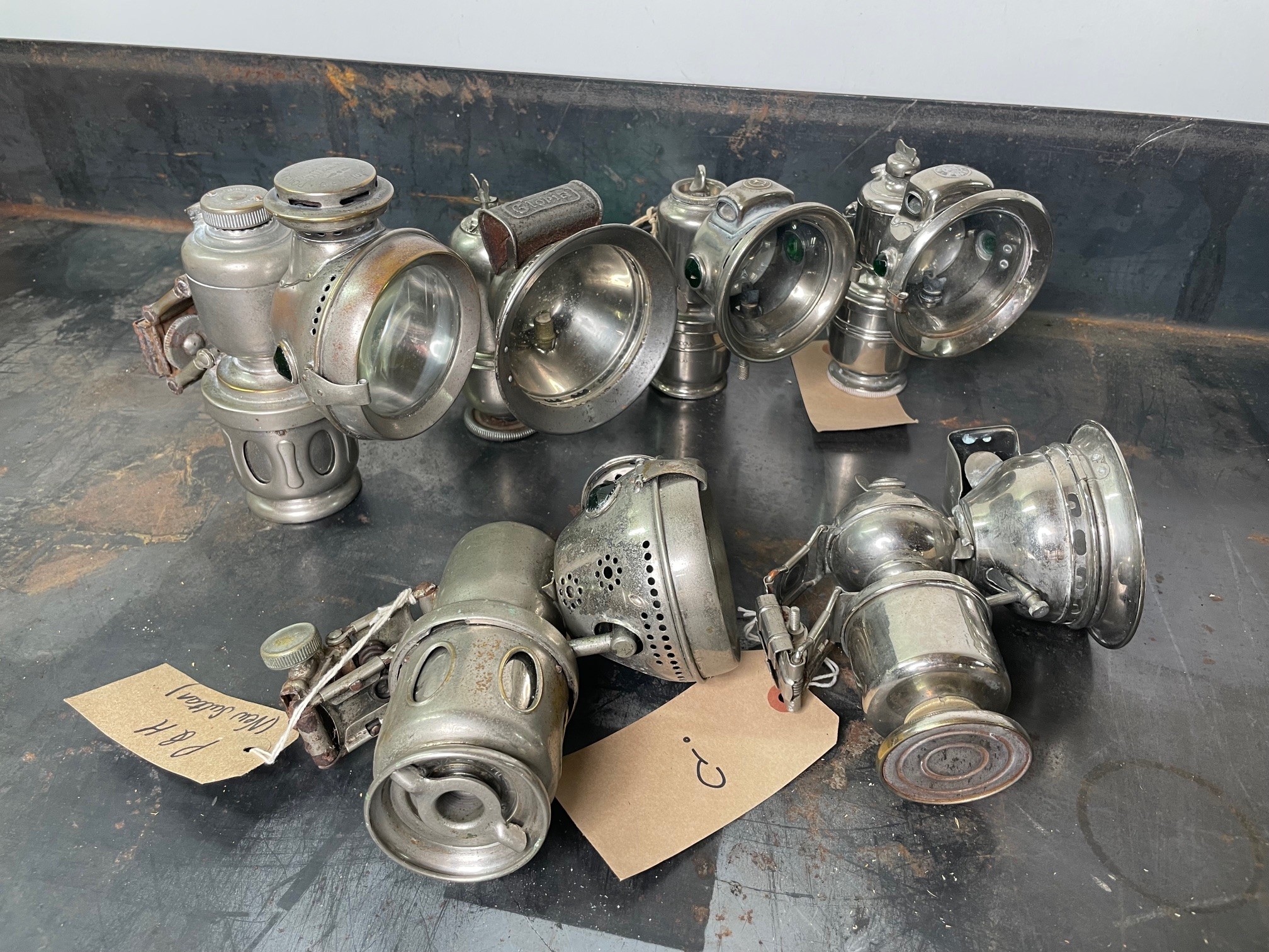 6no Acetylene Bicycle Front Lamps, Lucas, Powell, etcShipping Rate C