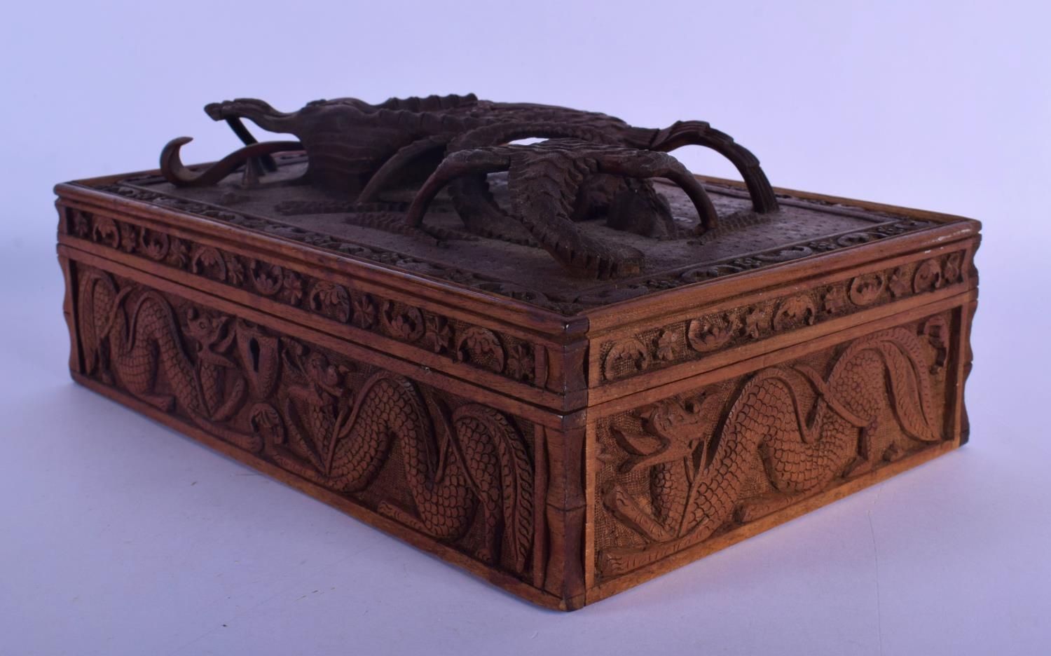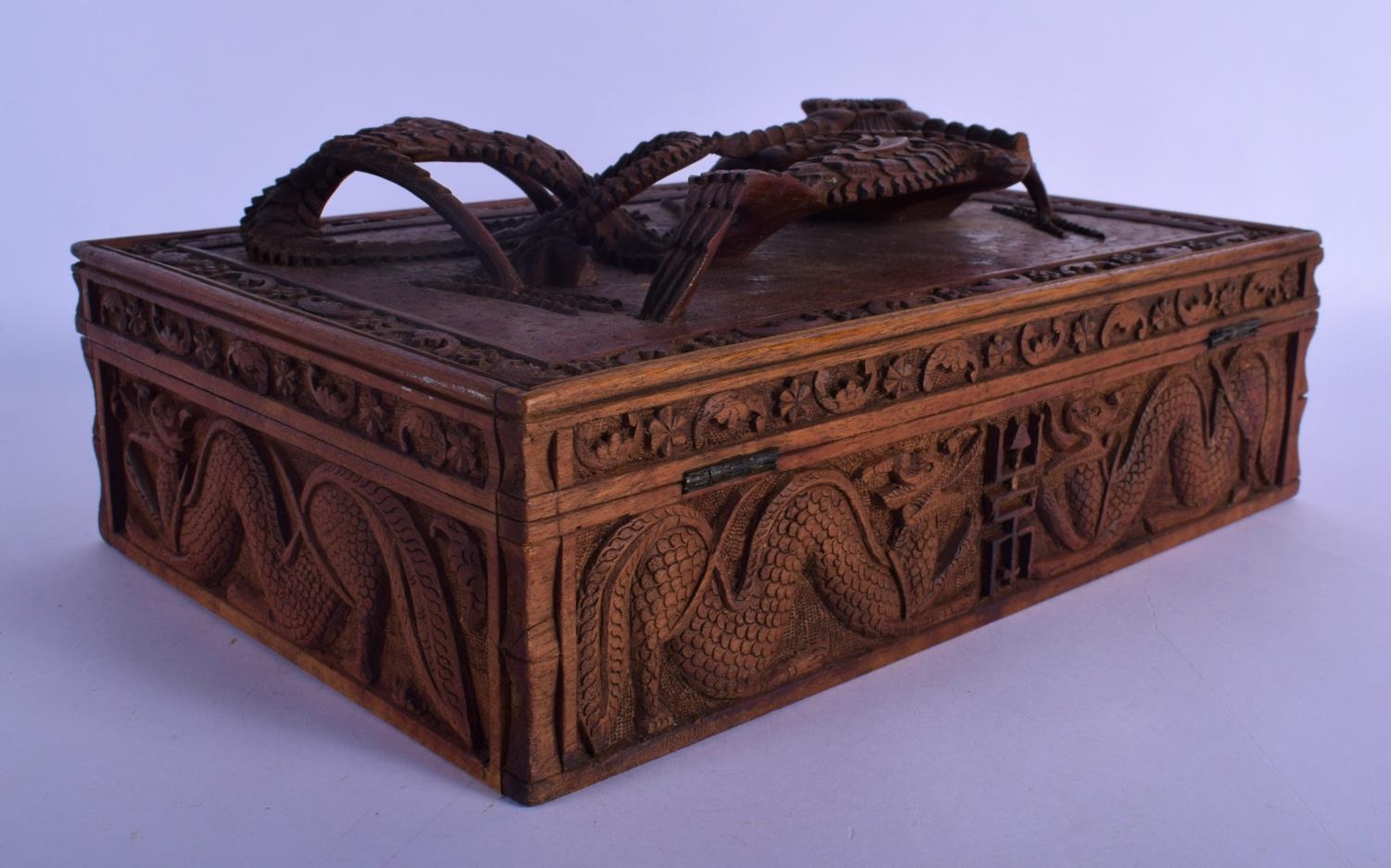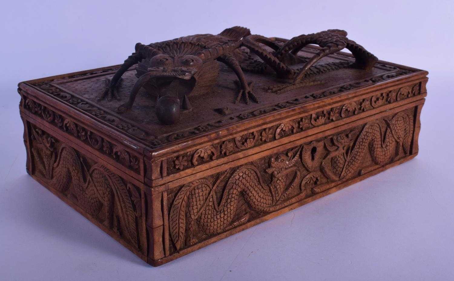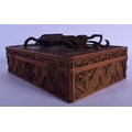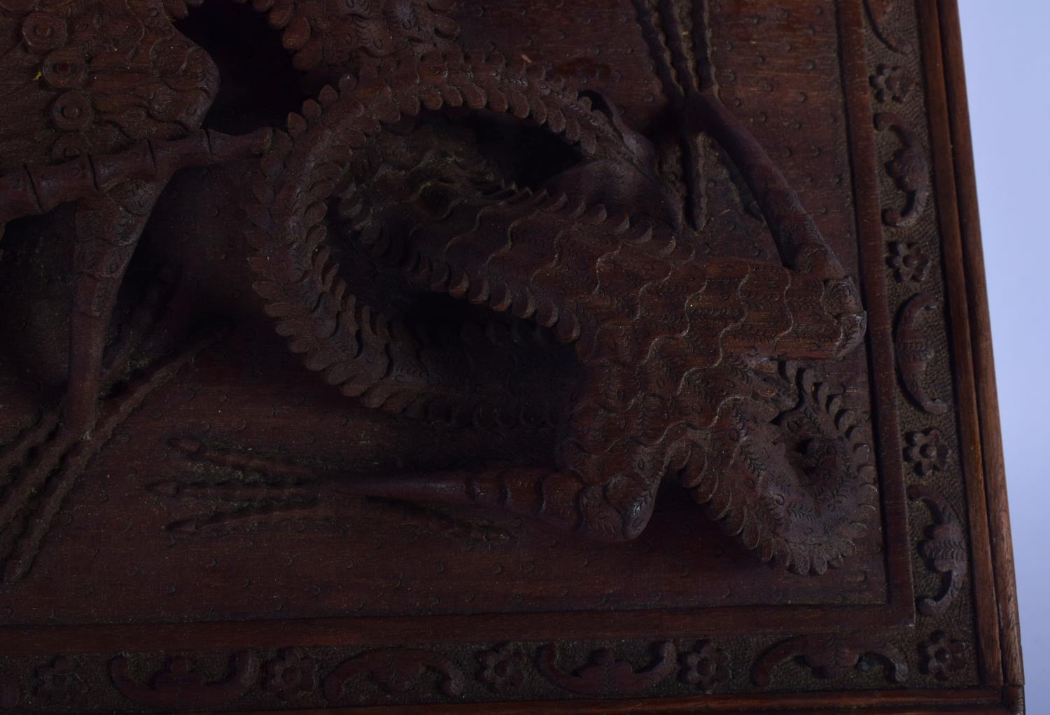 AN UNUSUALLY FINE 19TH CENTURY BURMESE CARVED WOOD BASKET wonderfully formed with a three dimensional dragon. 28 cm x 19 cm.