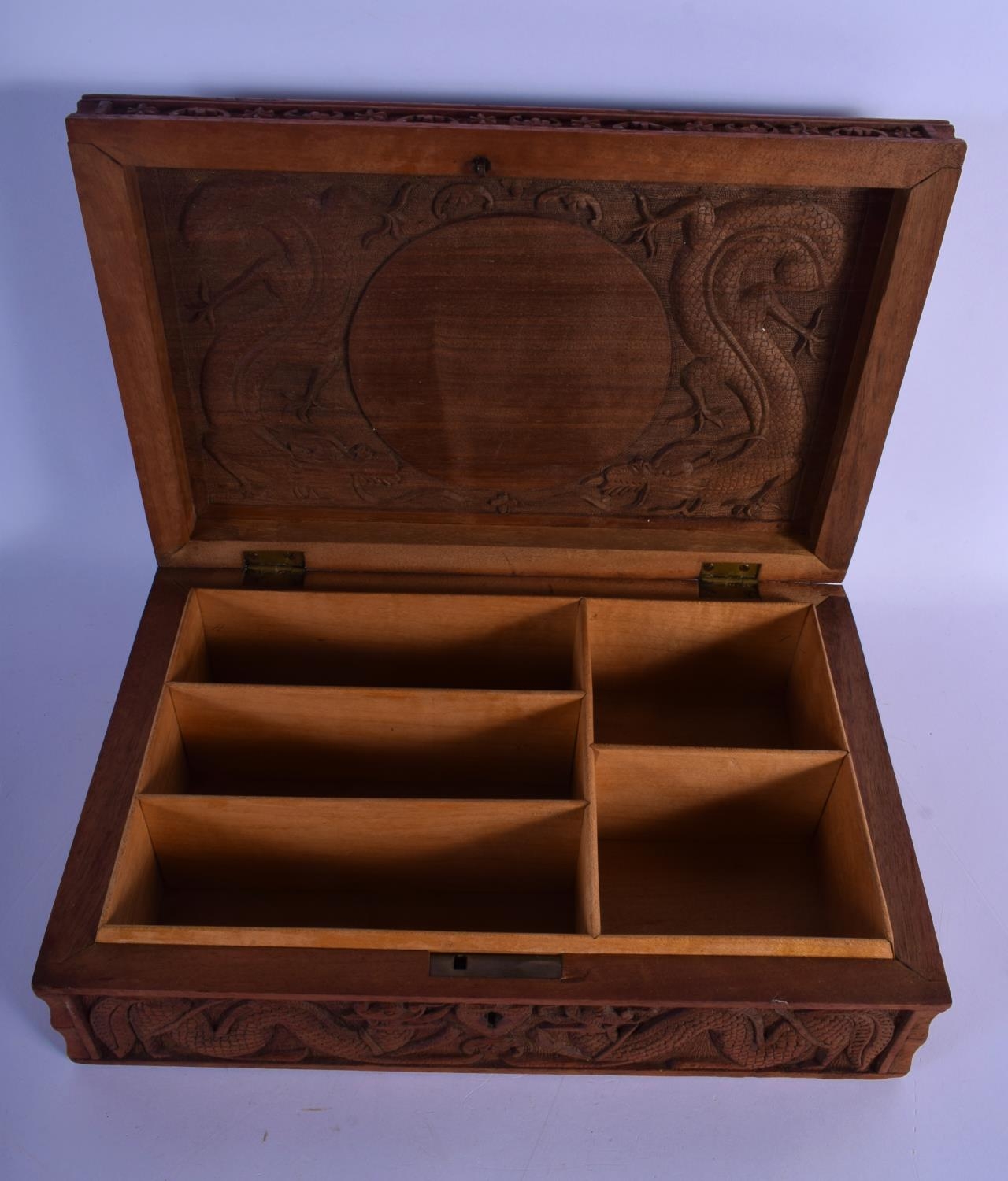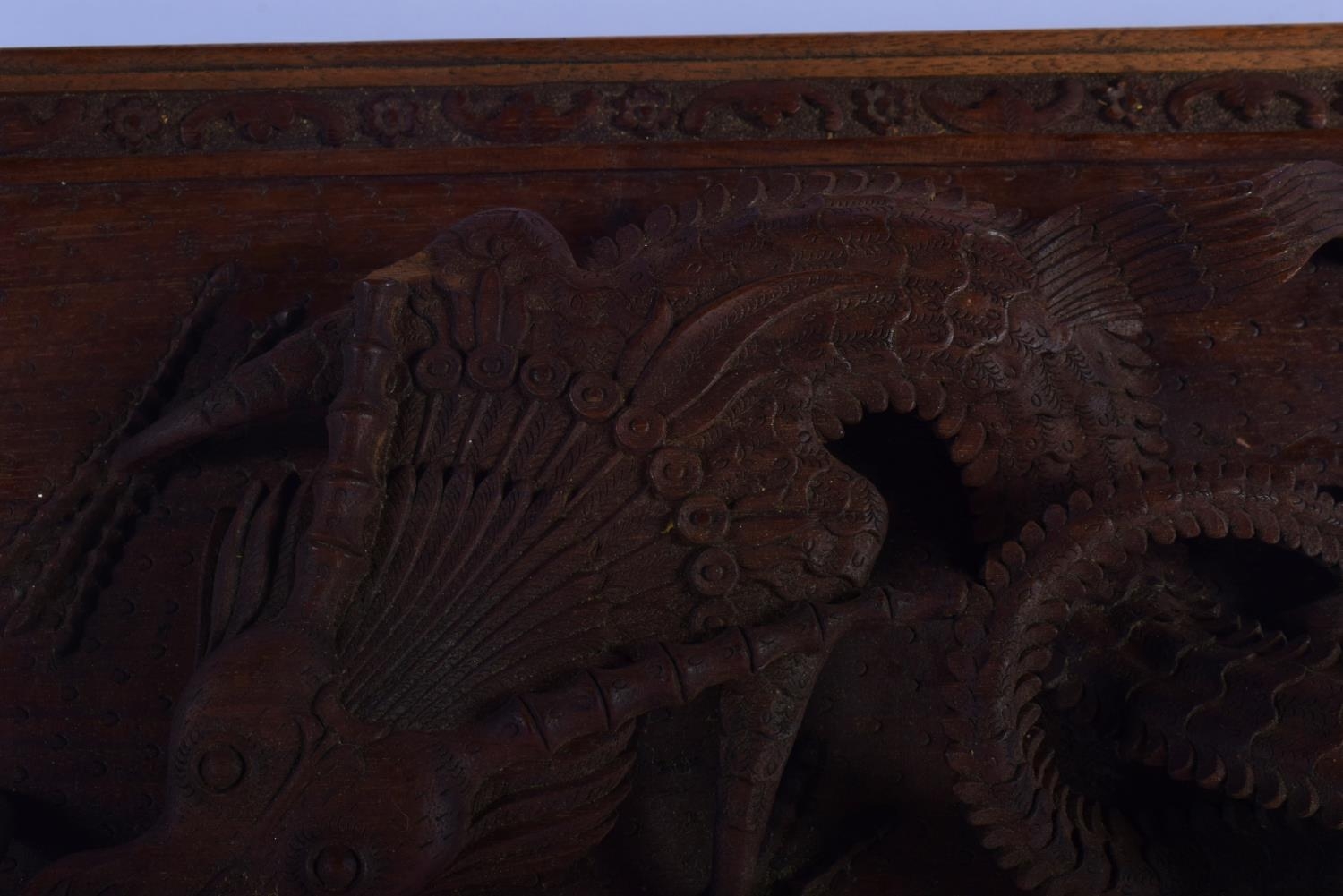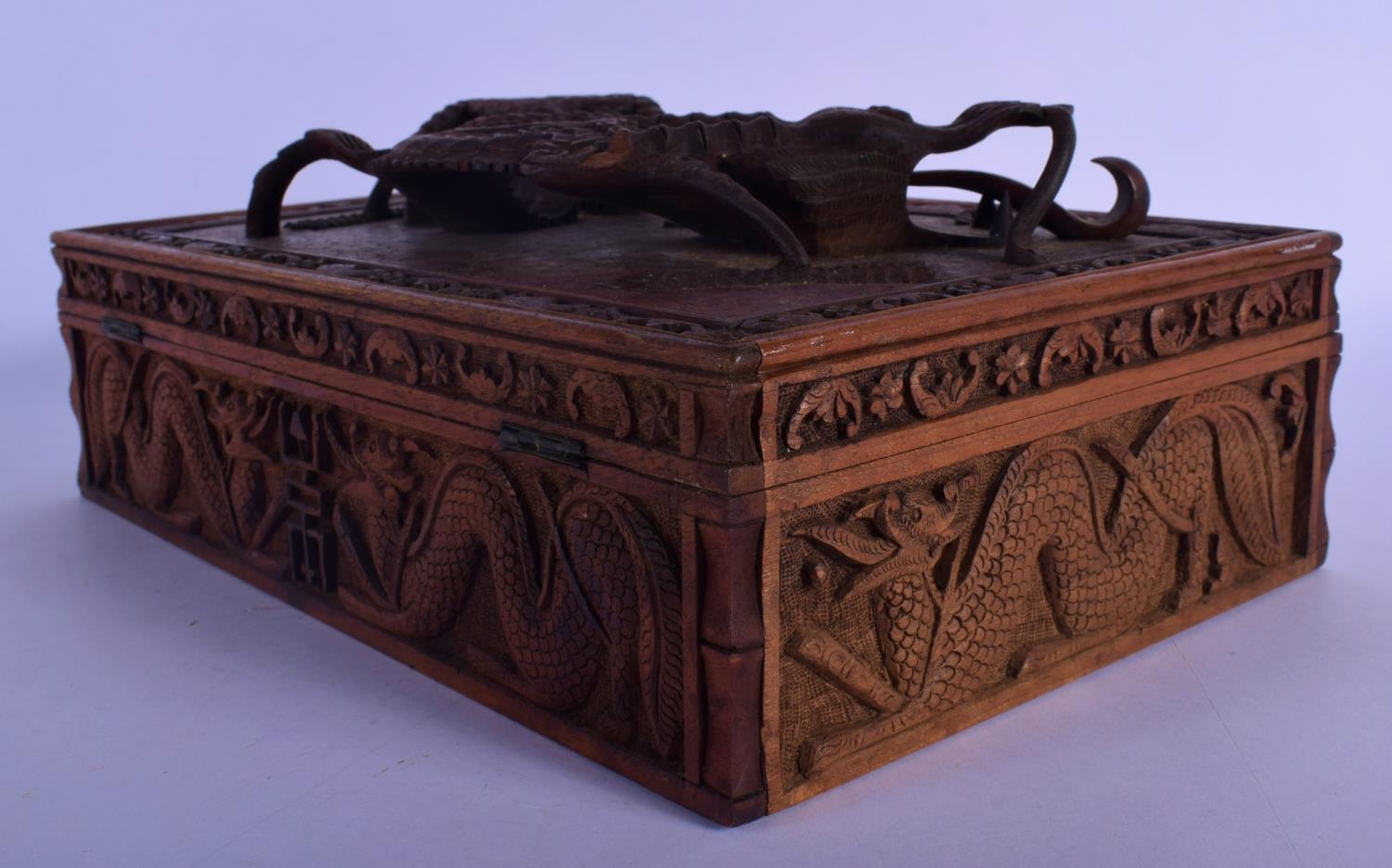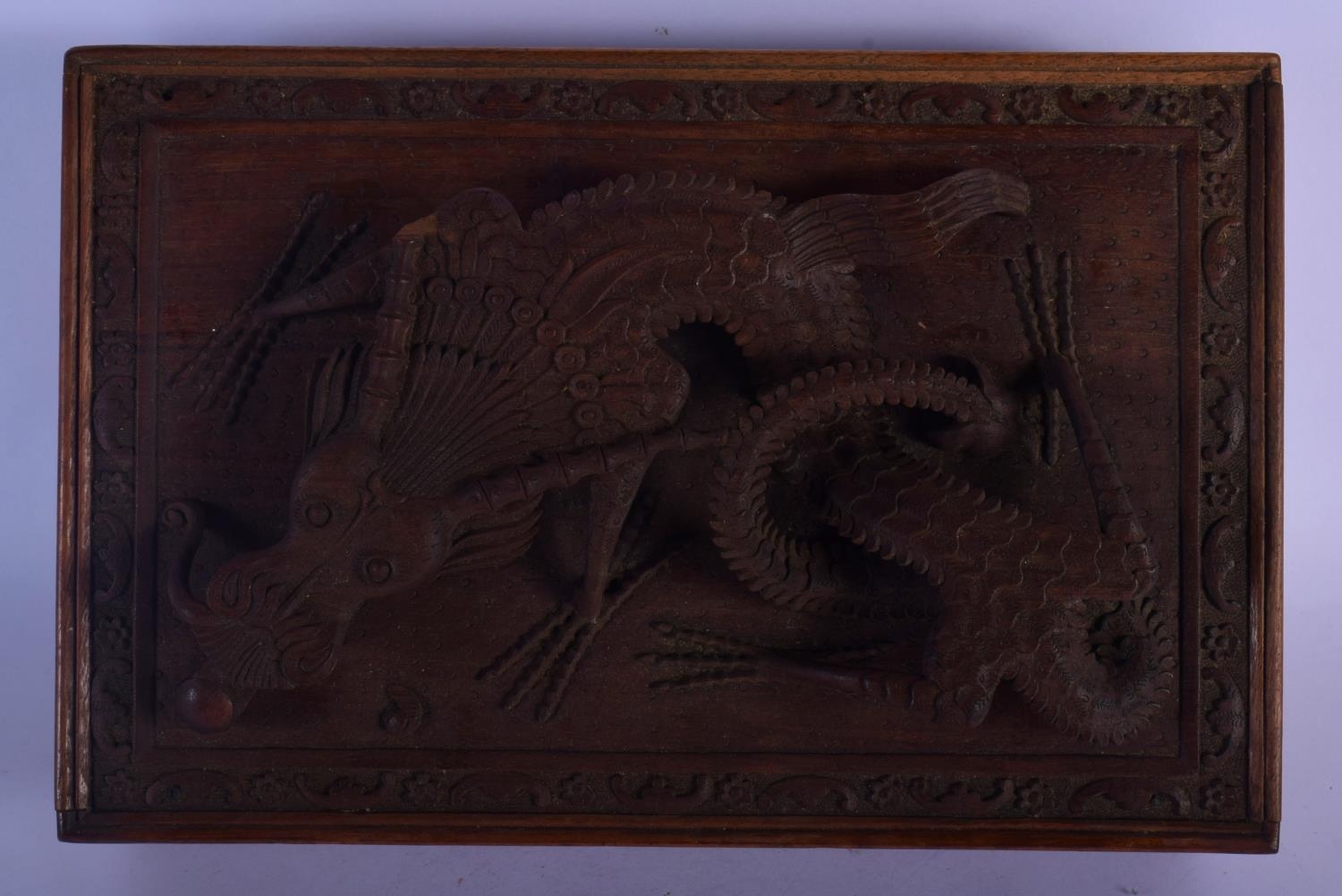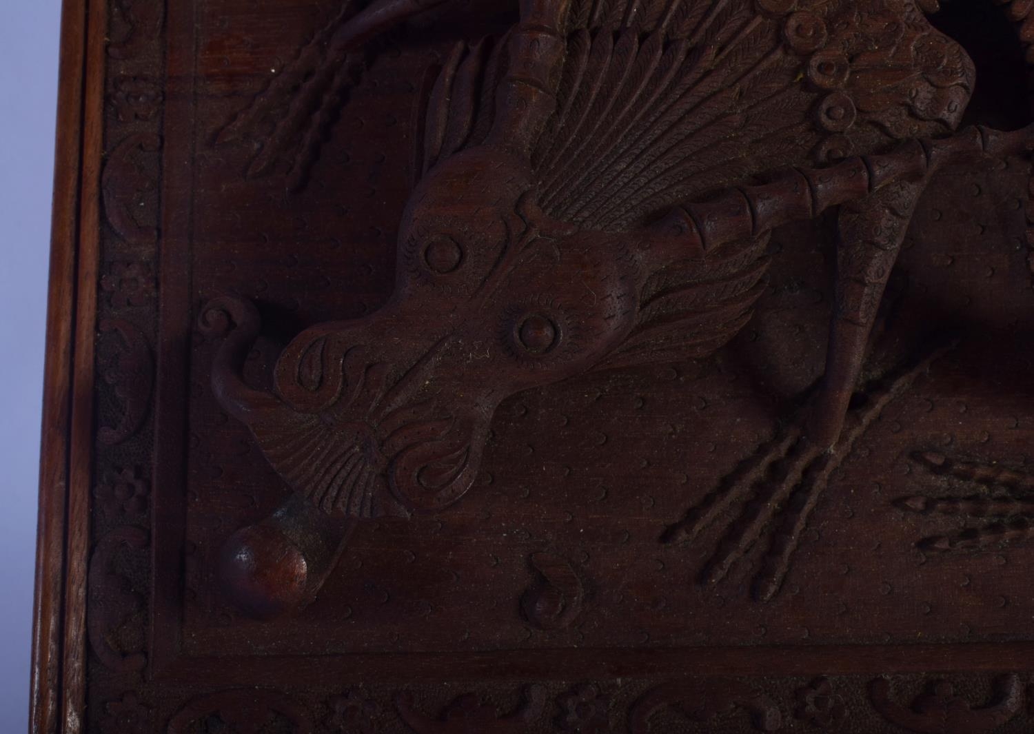 AN UNUSUALLY FINE 19TH CENTURY BURMESE CARVED WOOD BASKET wonderfully formed with a three dimensional dragon. 28 cm x 19 cm.