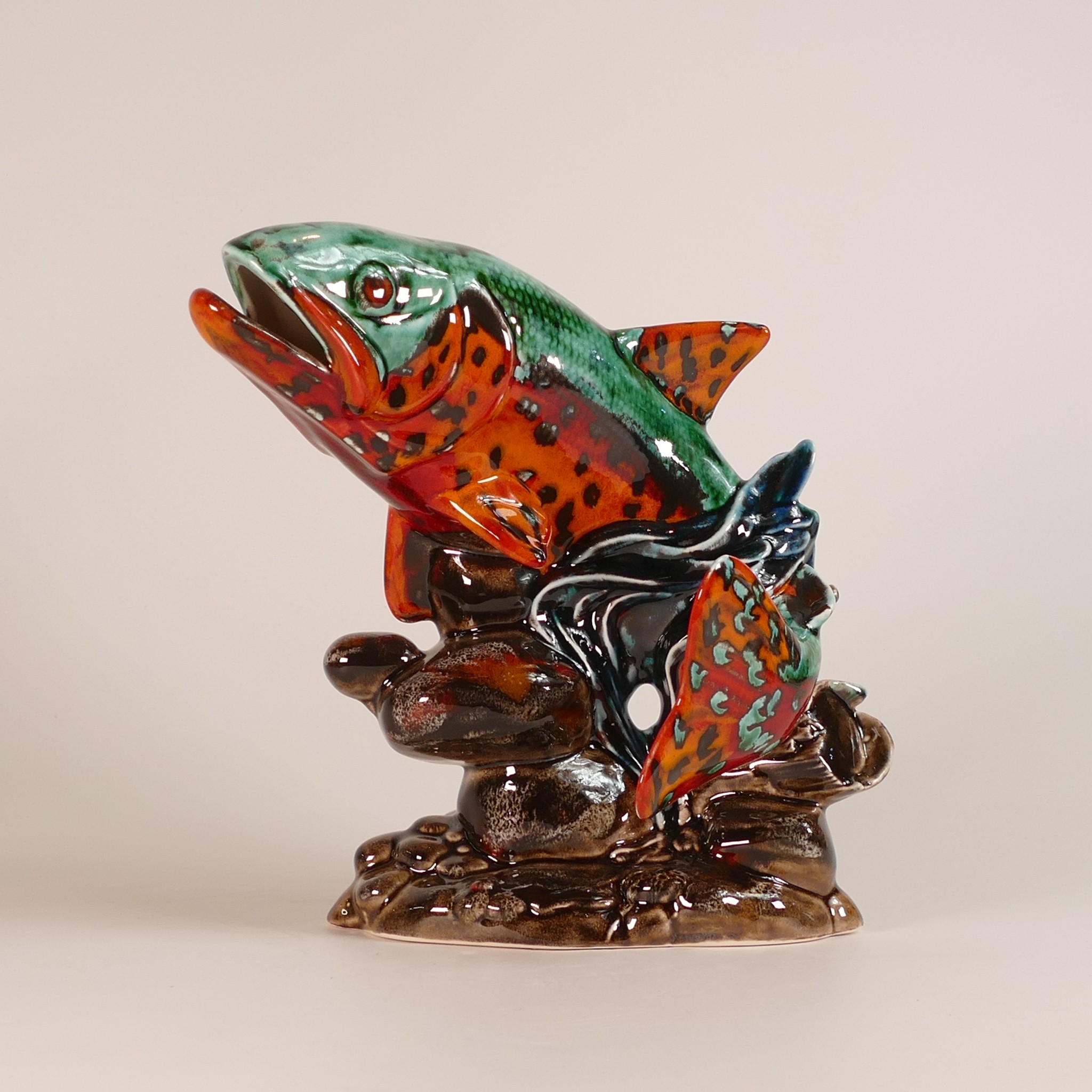 Anita Harris model of a Leaping Salmon, multi coloured H. 24cm gold signed.