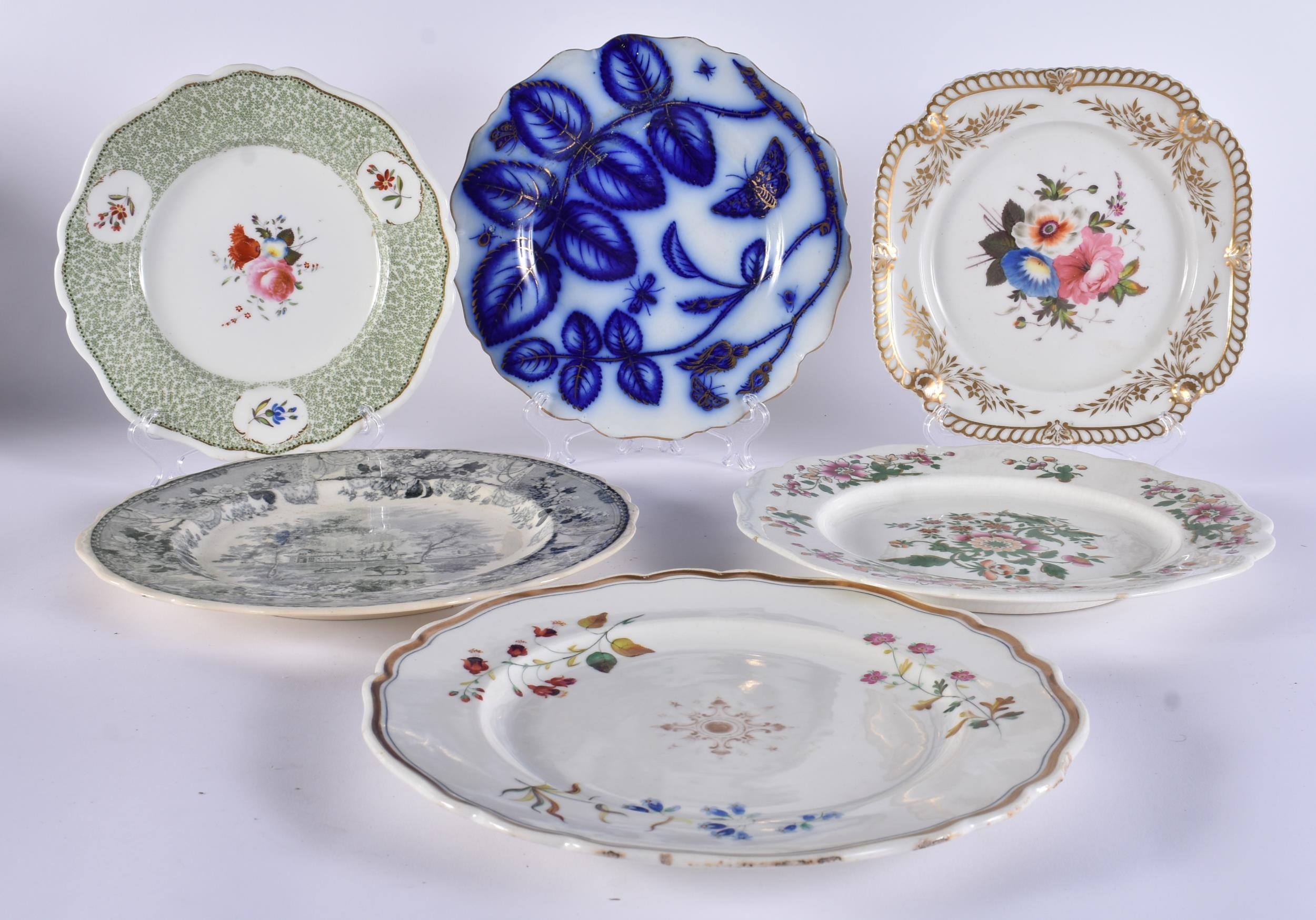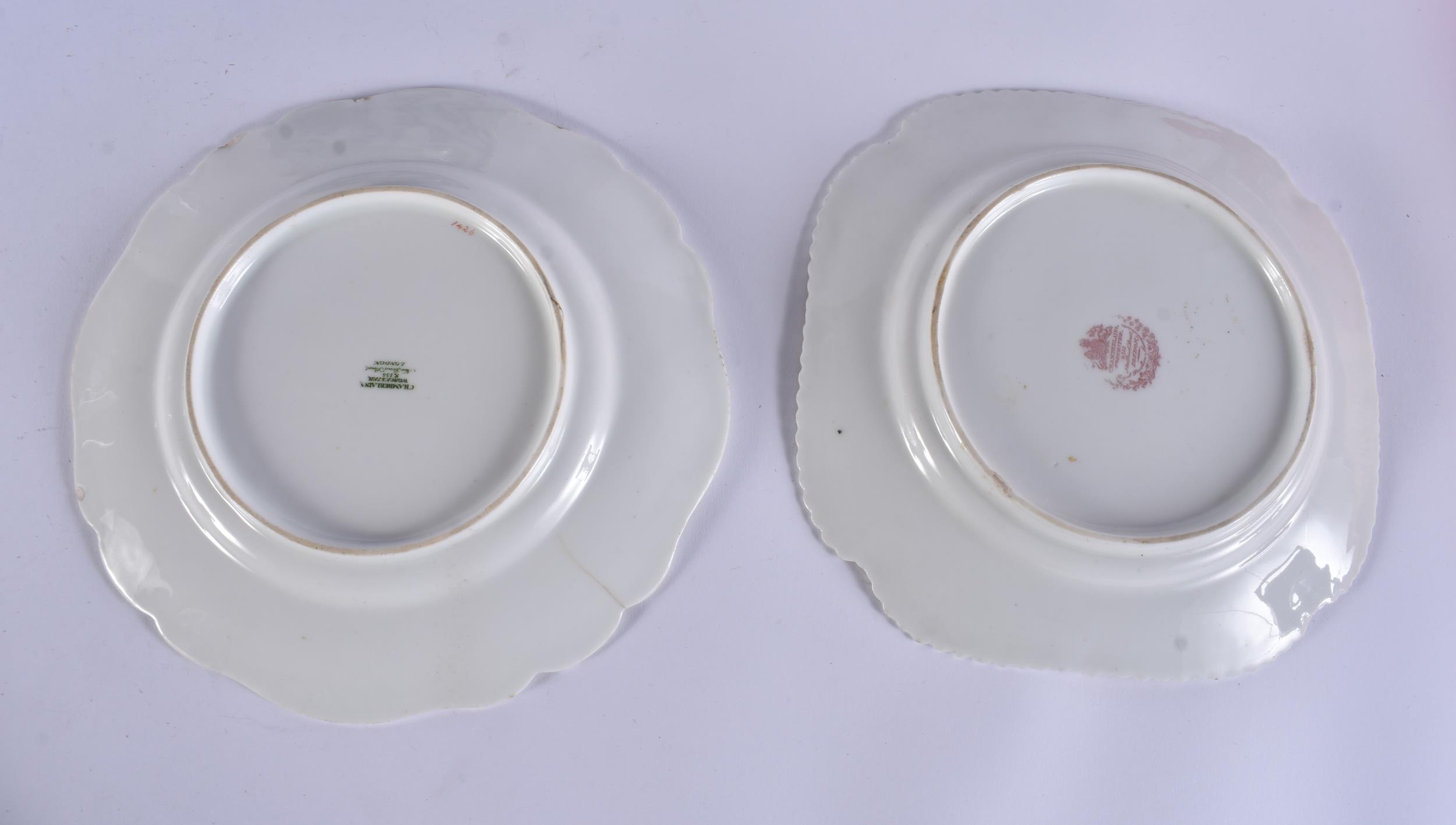 SIX 19TH CENTURY CHAMBERLAINS AND GRAINGERS WORCESTER PLATES AND DISHES. (6)