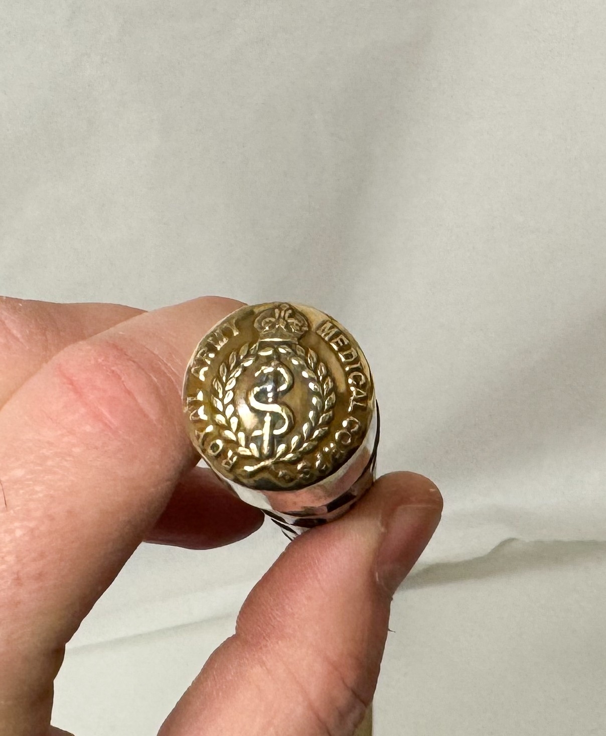 A RAMC swagger stick with gilt metal finial
