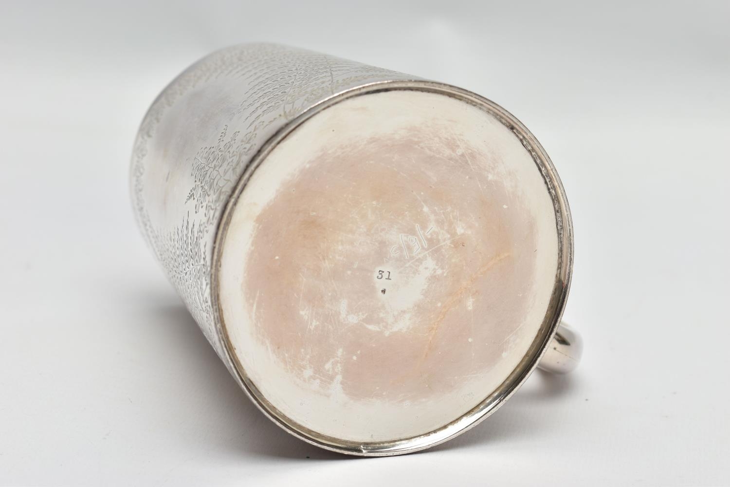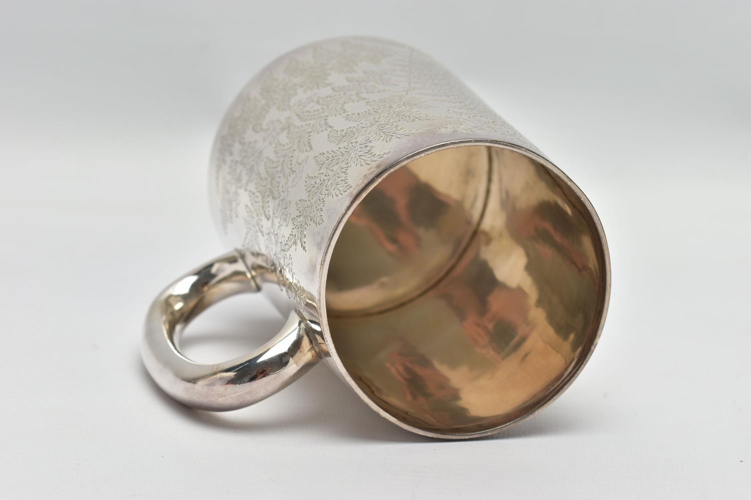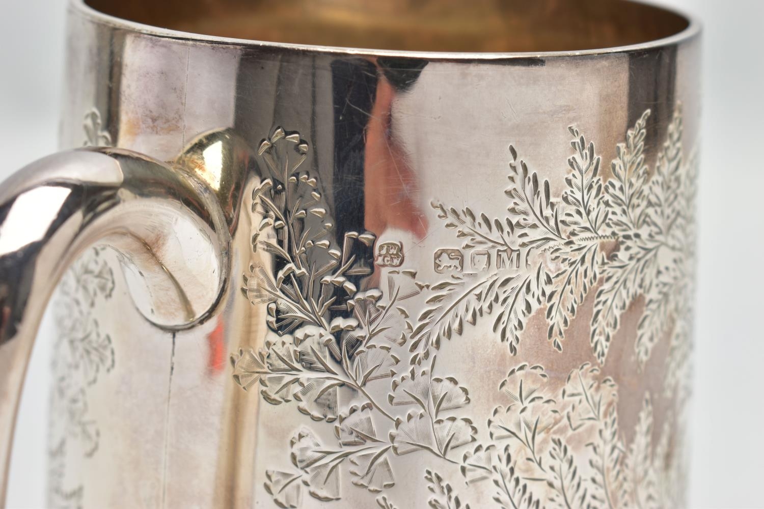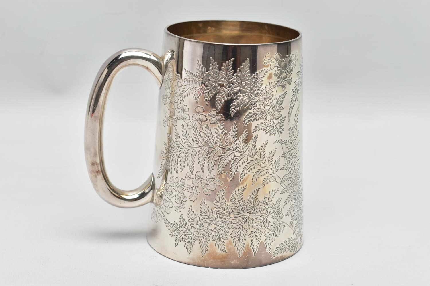A VICTORIAN SILVER TANKARD OF CONICAL FORM, C scroll handle, the body engraved with ferns surrounding a vacant cartouche, makers Wakely & Wheeler (James Wakely & Frank Clarke Wheeler), London 1887, 9.22ozt, 286.9 grams, height 11.8cm (Condition report: heavily worn gilt interior, marks are partially rubbed, otherwise in reasonable and usable condition)