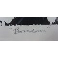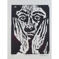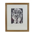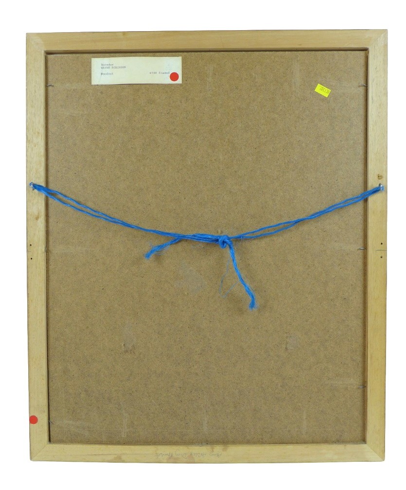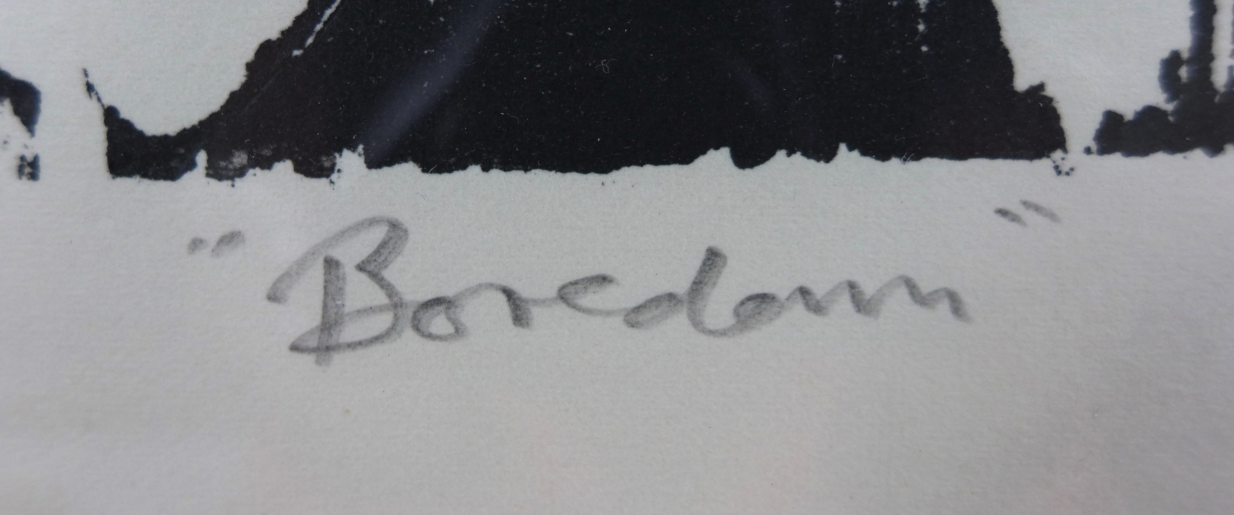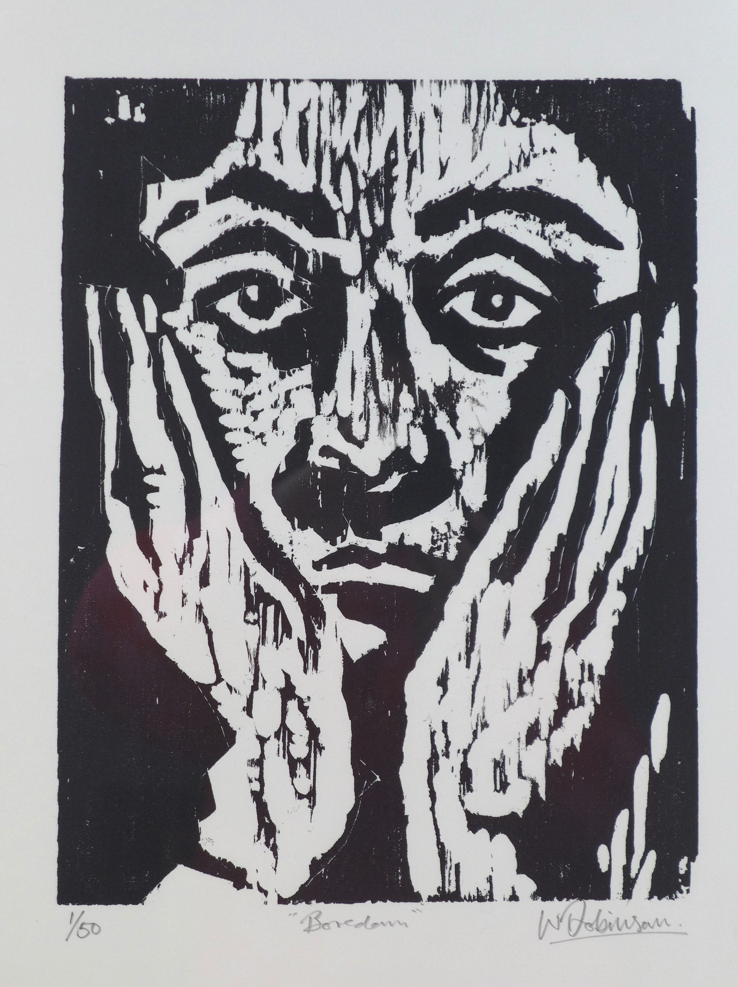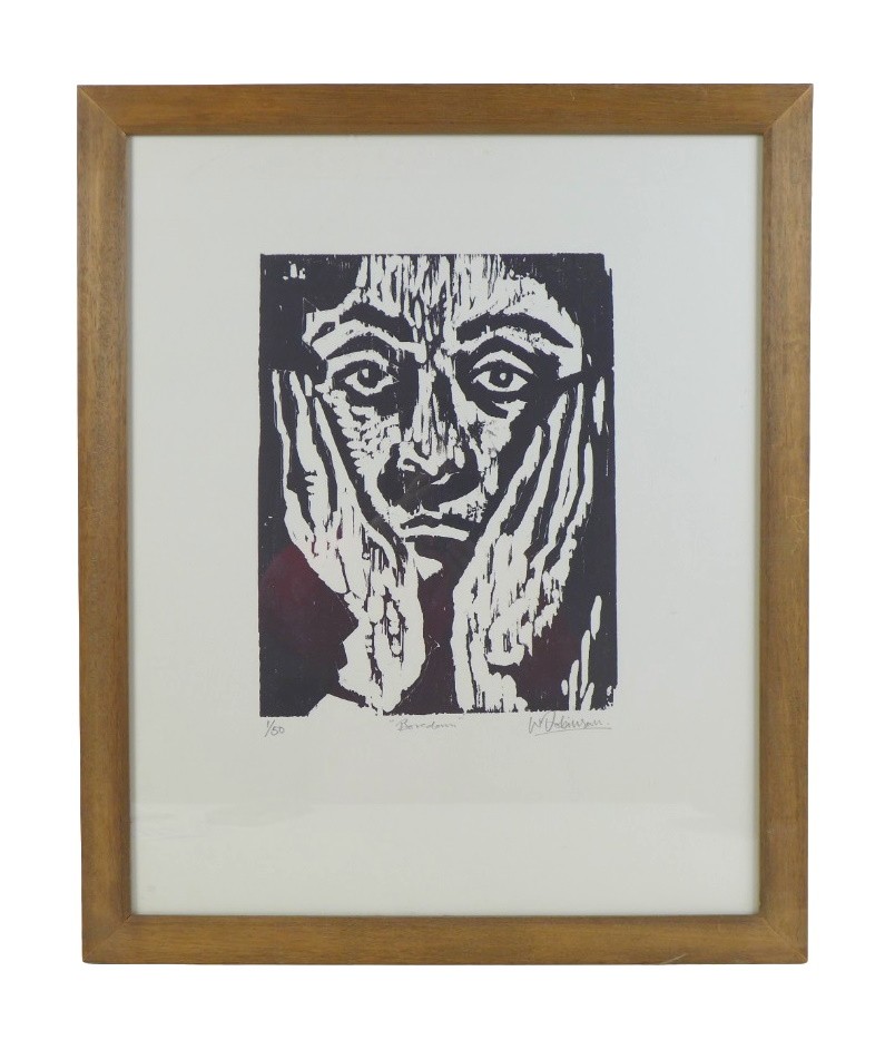 Wayne Robinson (20th century): 'Boredom', a limited edition wood cut print, 1/50, pencil signed lower right corner, 31 by 25cm, framed and glazed, 60.7 by 50.5cm.