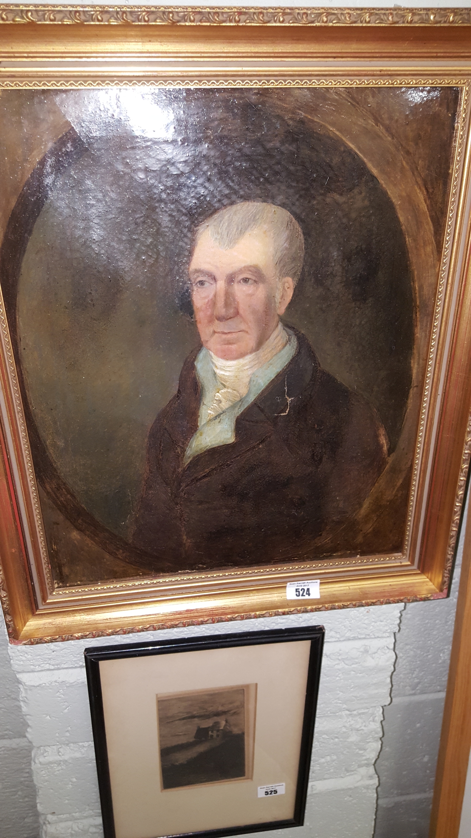 19th Century Oil on Canvas of a Gentleman, indistinct script verso 'John Barnes, likeness taken 1883 by Mr Coutts by hand'. 43 x 35cm. (AF)., along with quantity of decrotive pictures.